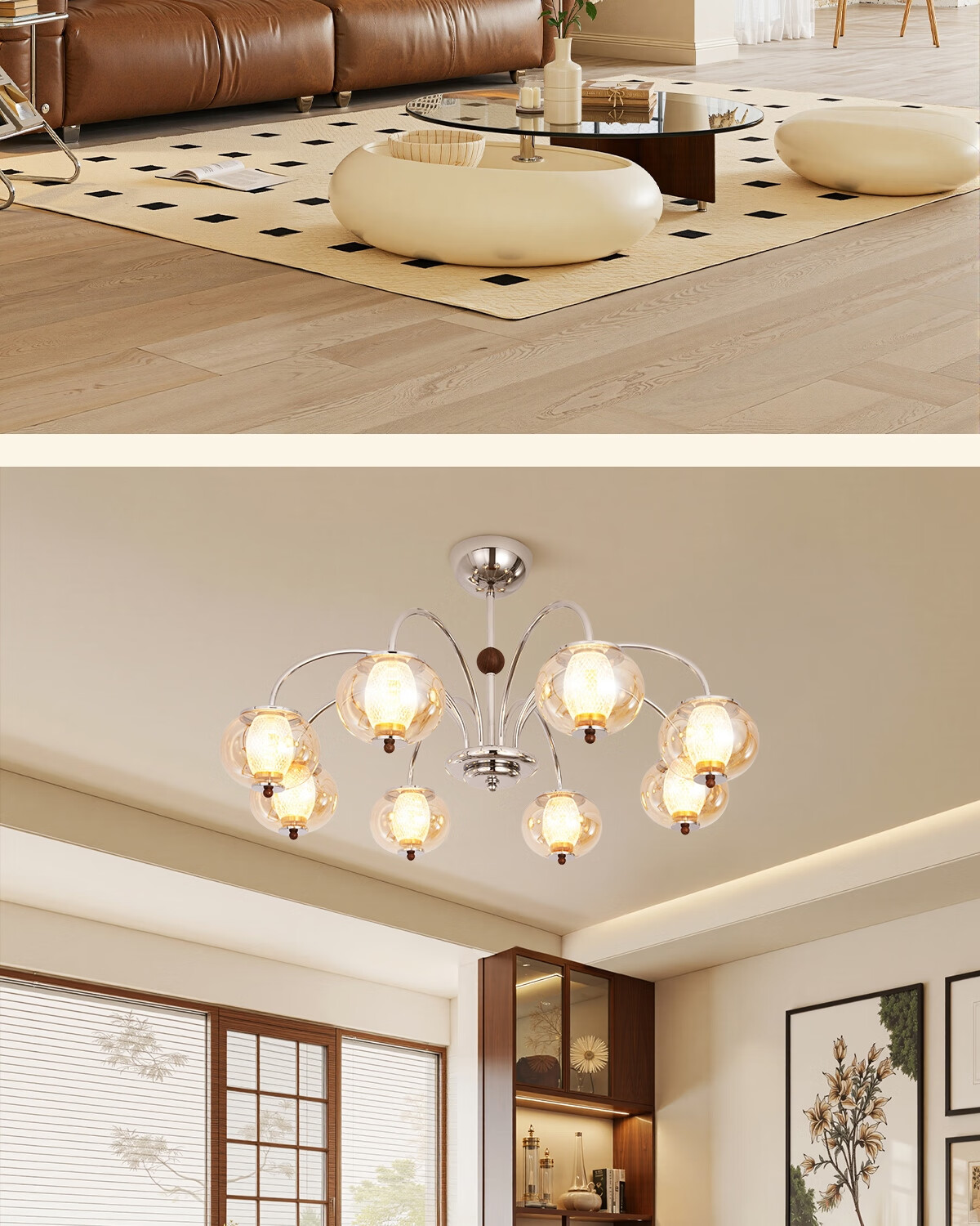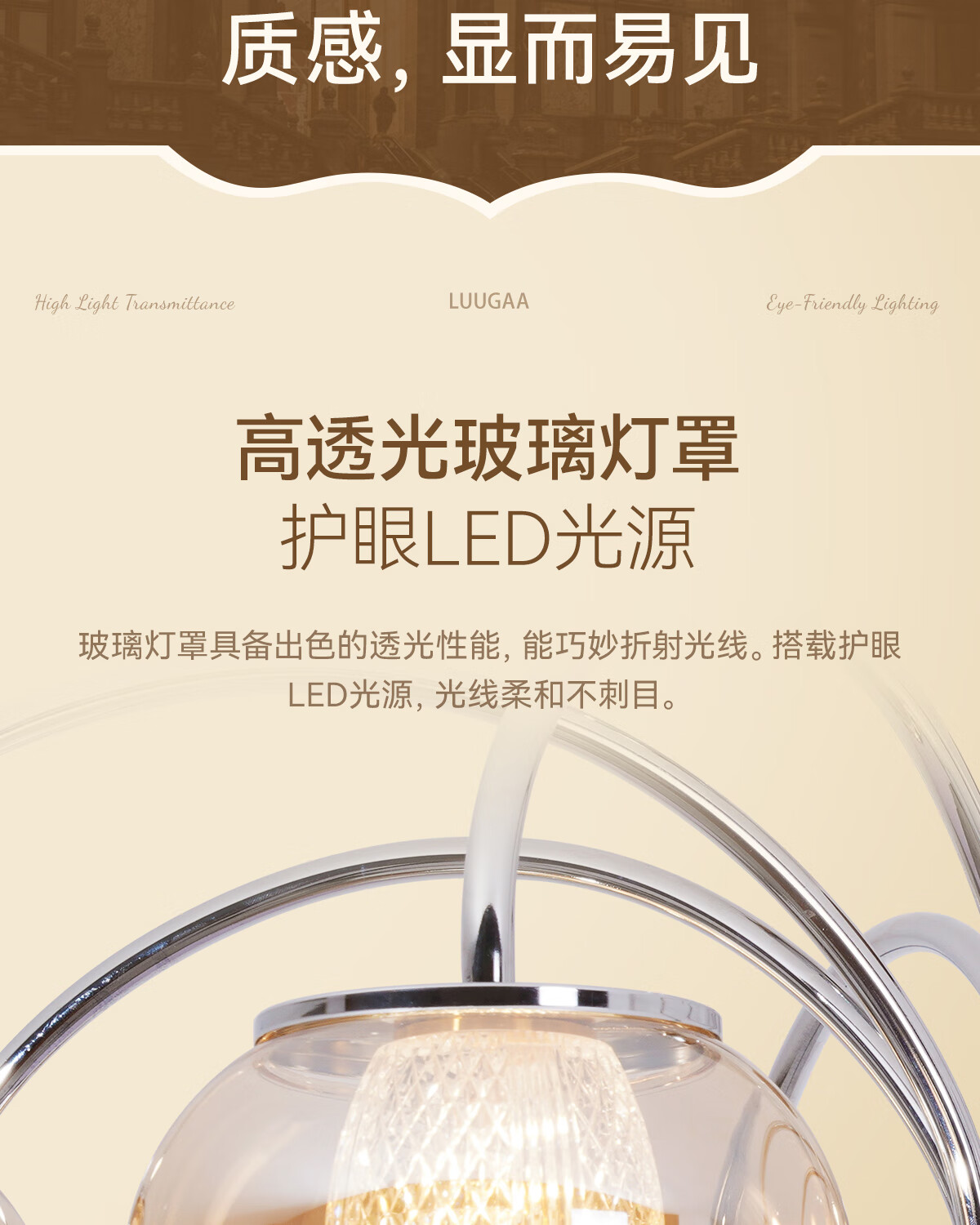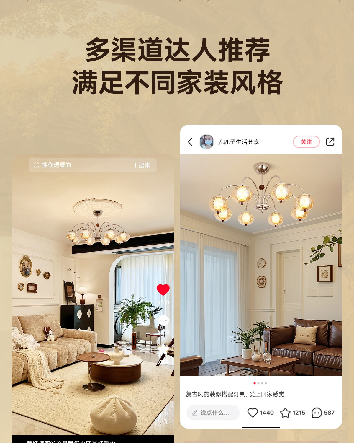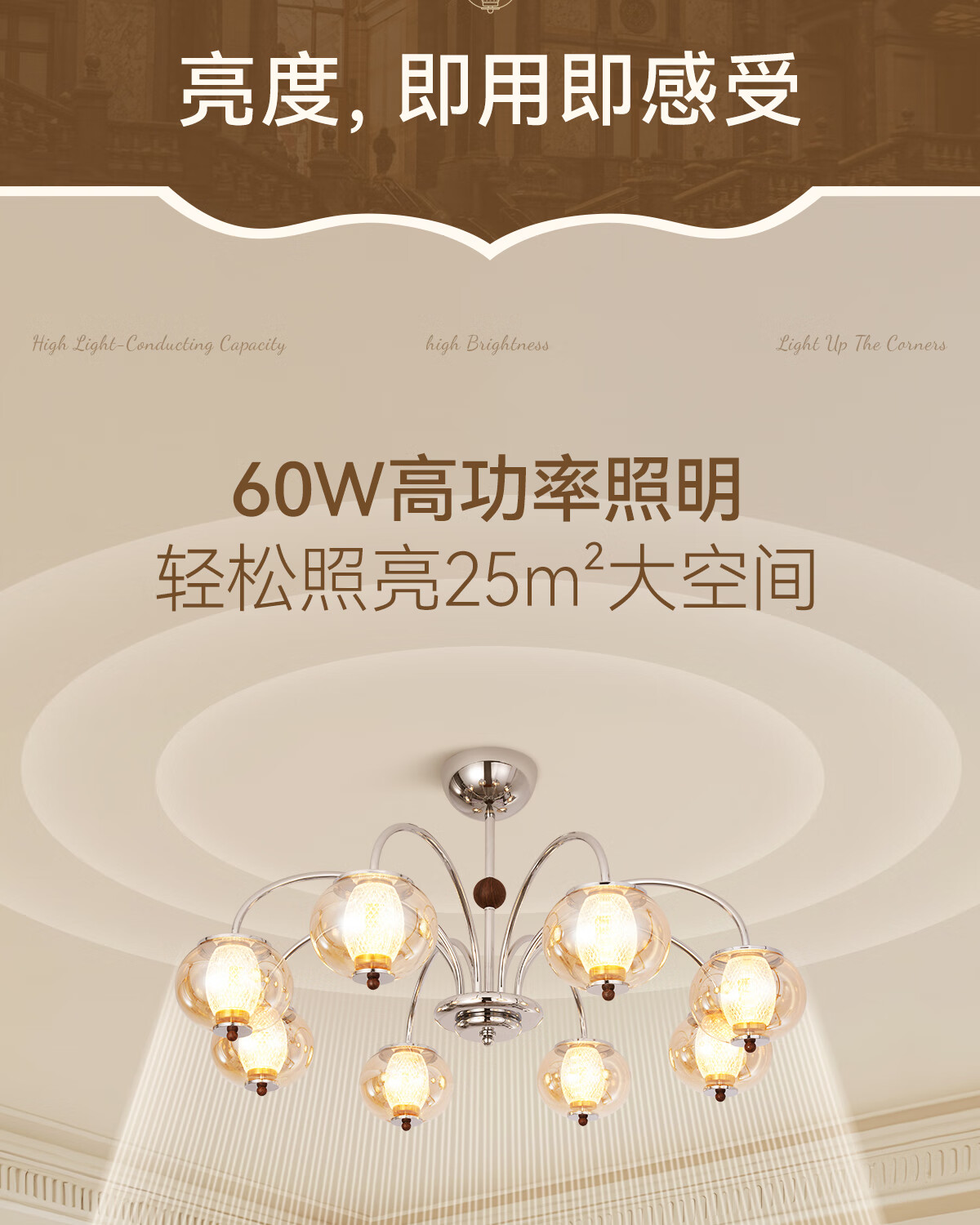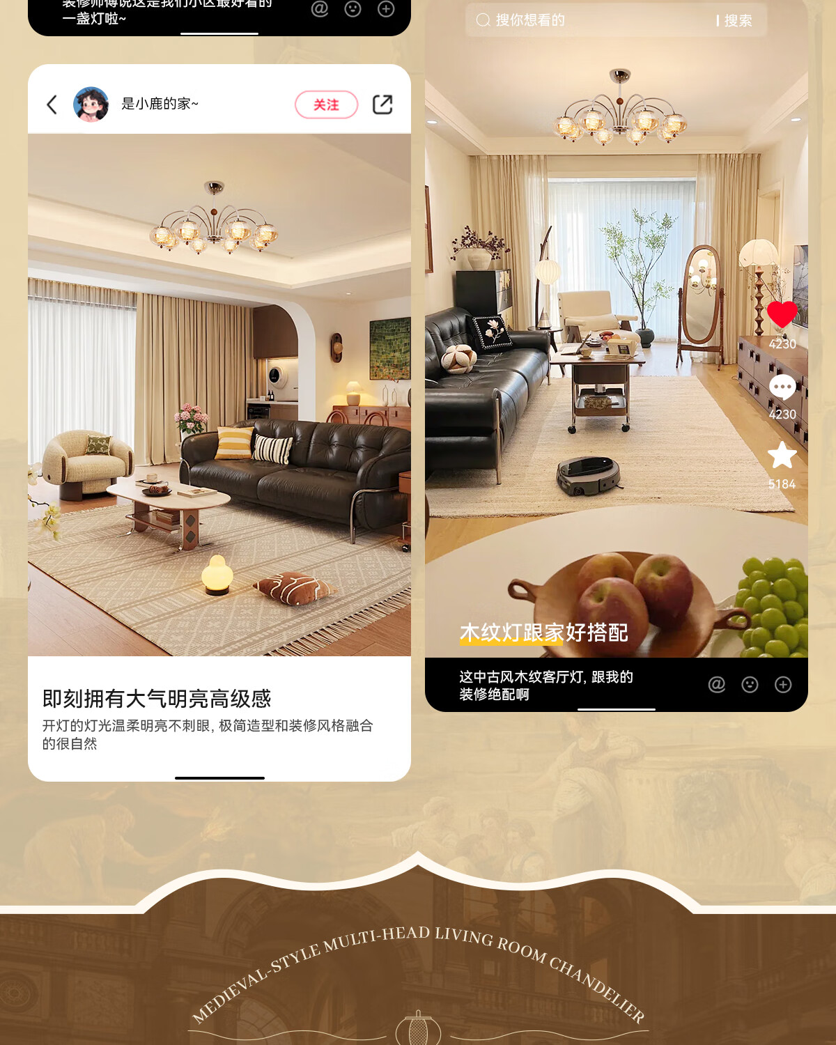 鹿家良品(LUUGAA)观月客厅吊灯法式中古风吊灯2025新款高级感轻奢大厅主灯复古灯具 【荐】全光谱8头三色光60W