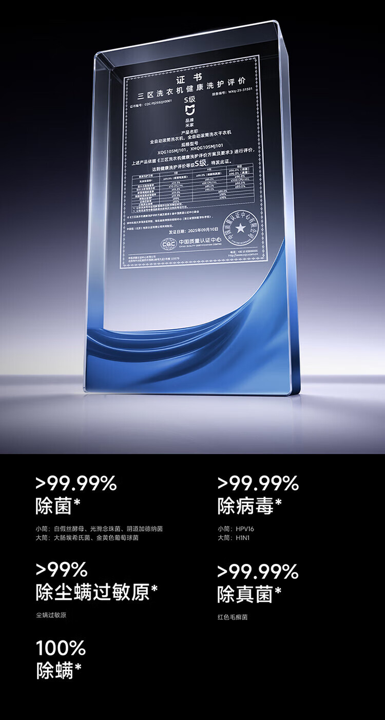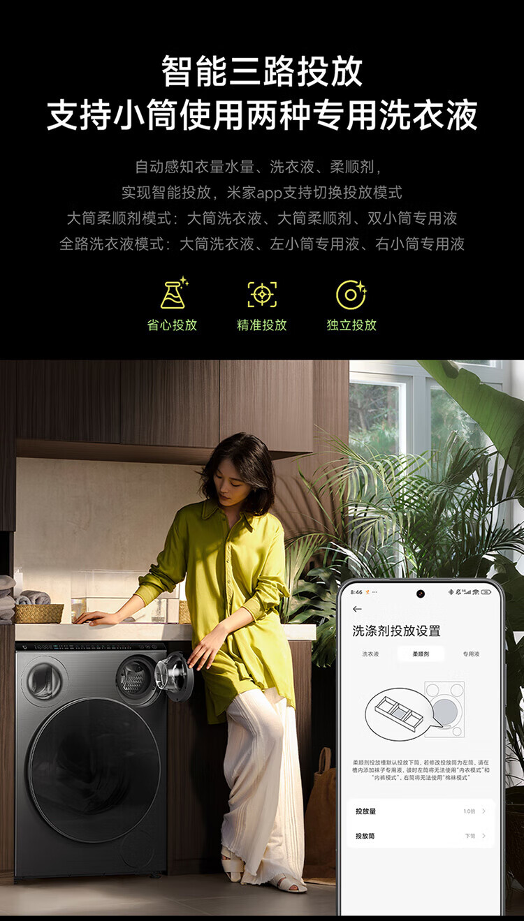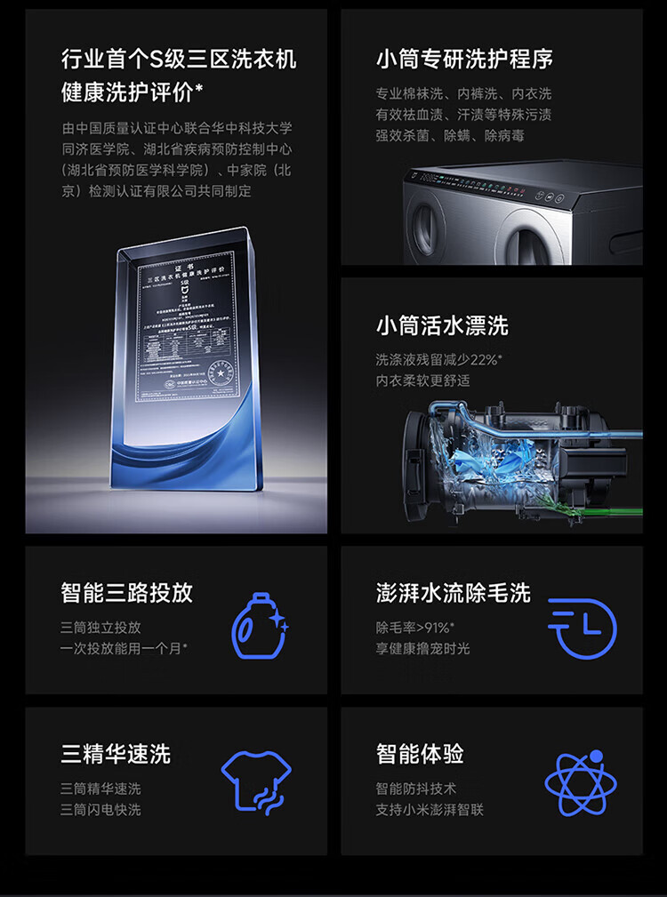 米家小米三区洗Pro滚筒洗衣机全自动一机三筒 医护级健康内衣洗蓝氧护衣洗XQG105MJ101 三筒分区洗 XQG105MJ101