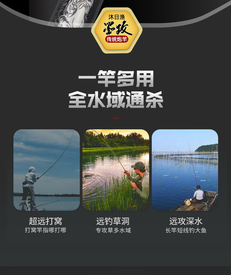 清水沐日渔草上飞-墨攻 炮杆 传统钓 65T+80T高碳超硬 草洞打窝 鲇杆 14m 墨攻单杆