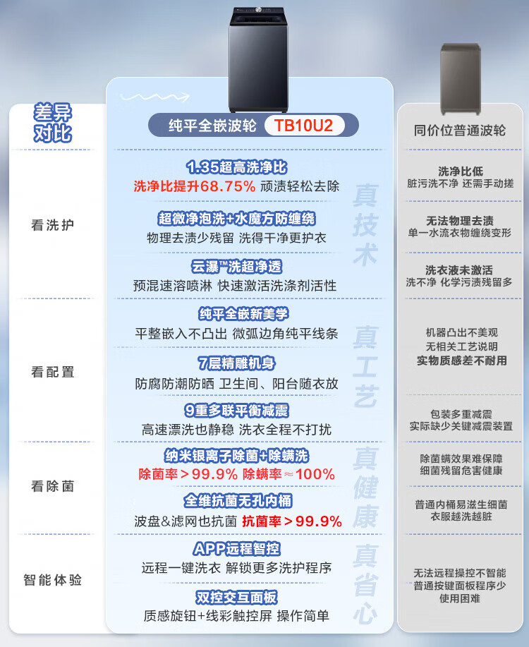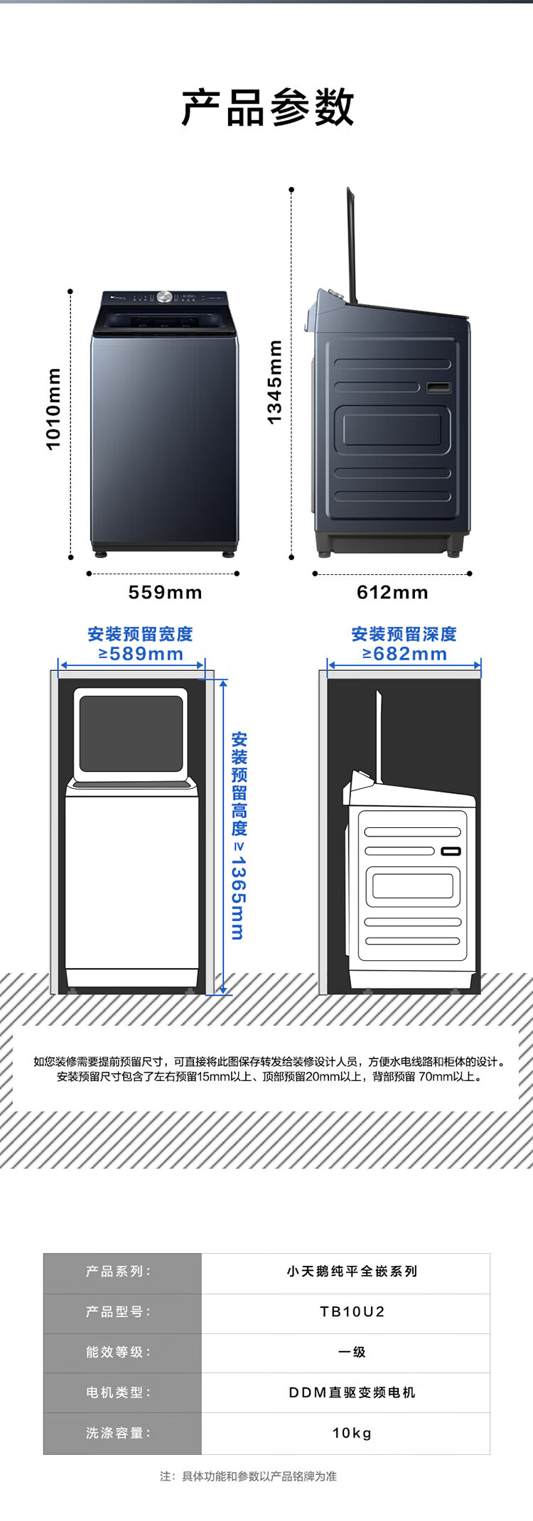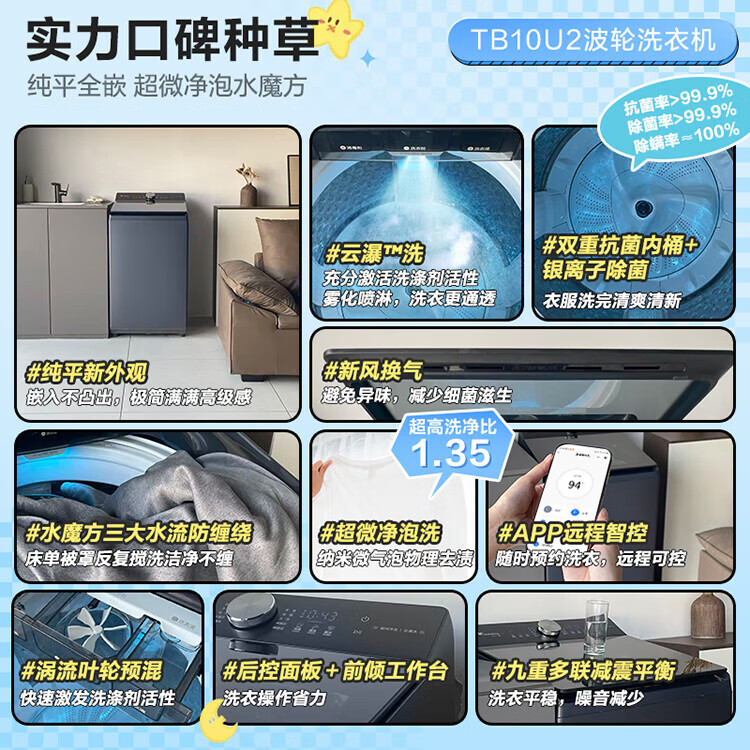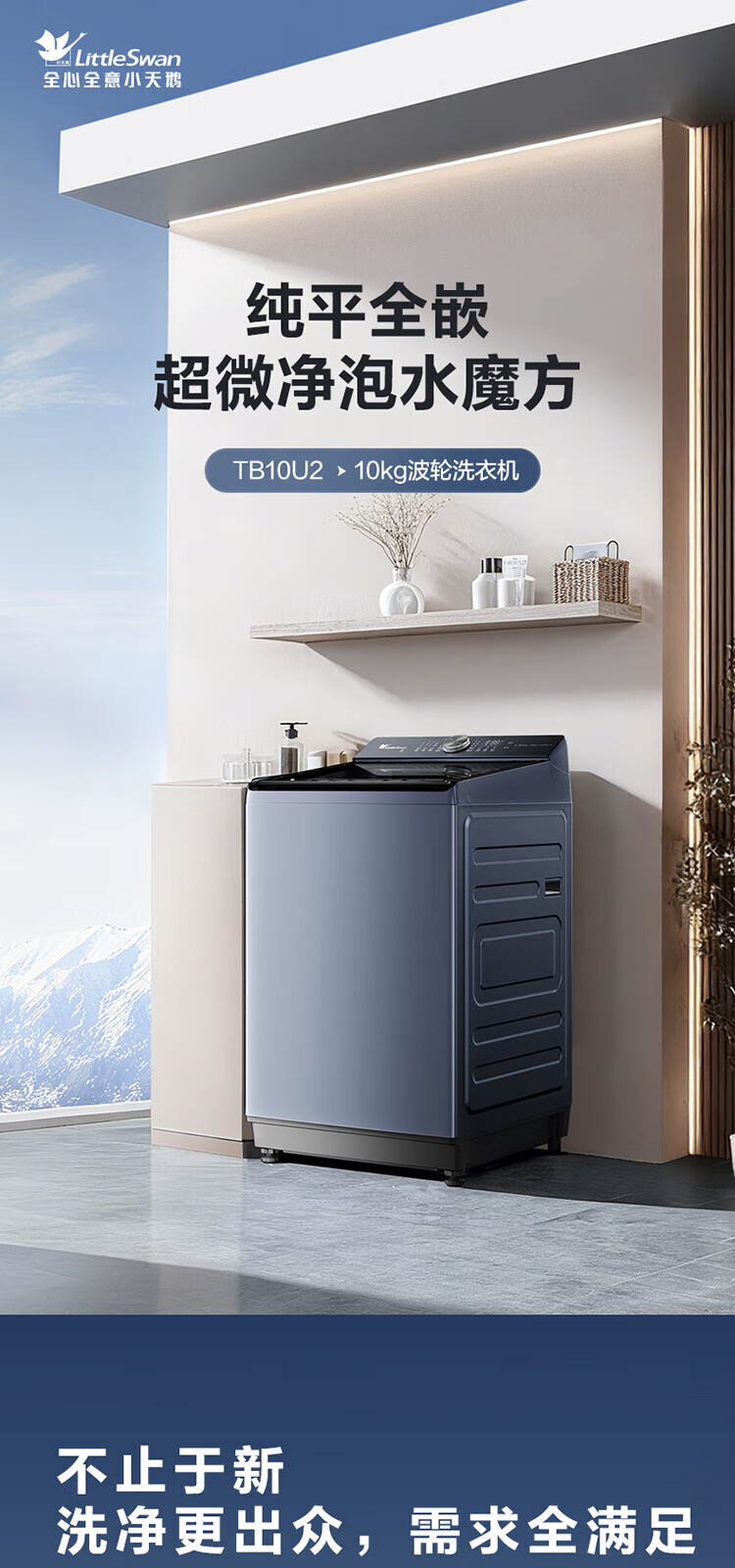 小天鹅(LittleSwan)波轮洗衣机家用全自动水魔方防缠绕超微净泡10公斤纯平全嵌直驱变频电机 TB10U2 10KG波轮纯平丨超微净泡云瀑透洗