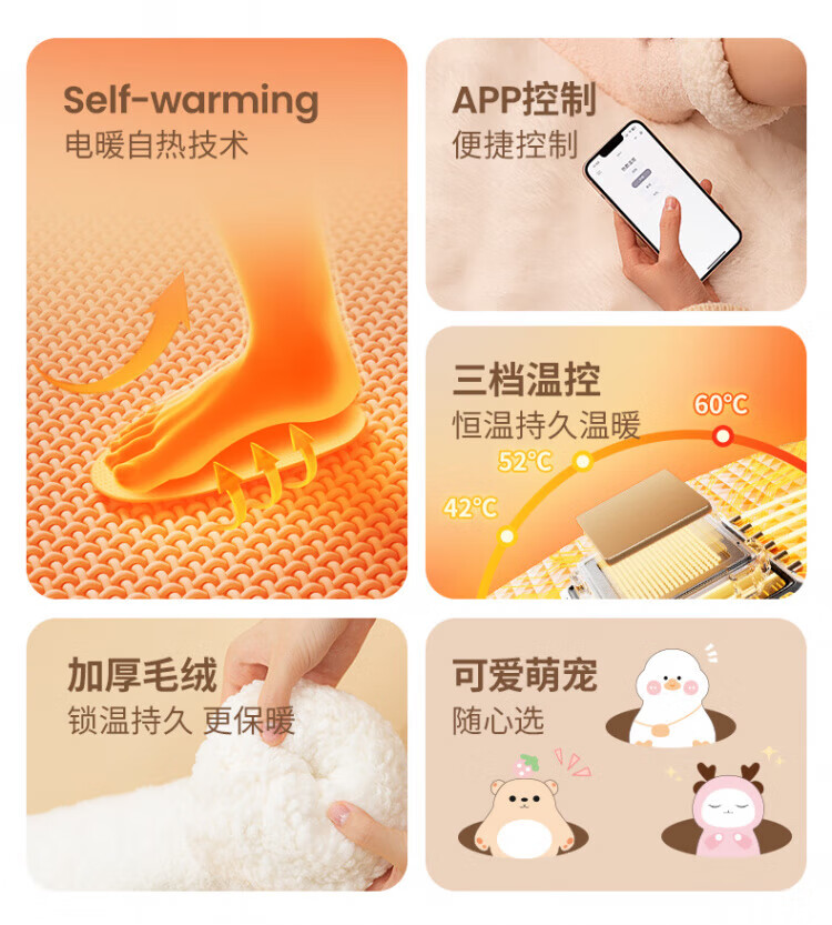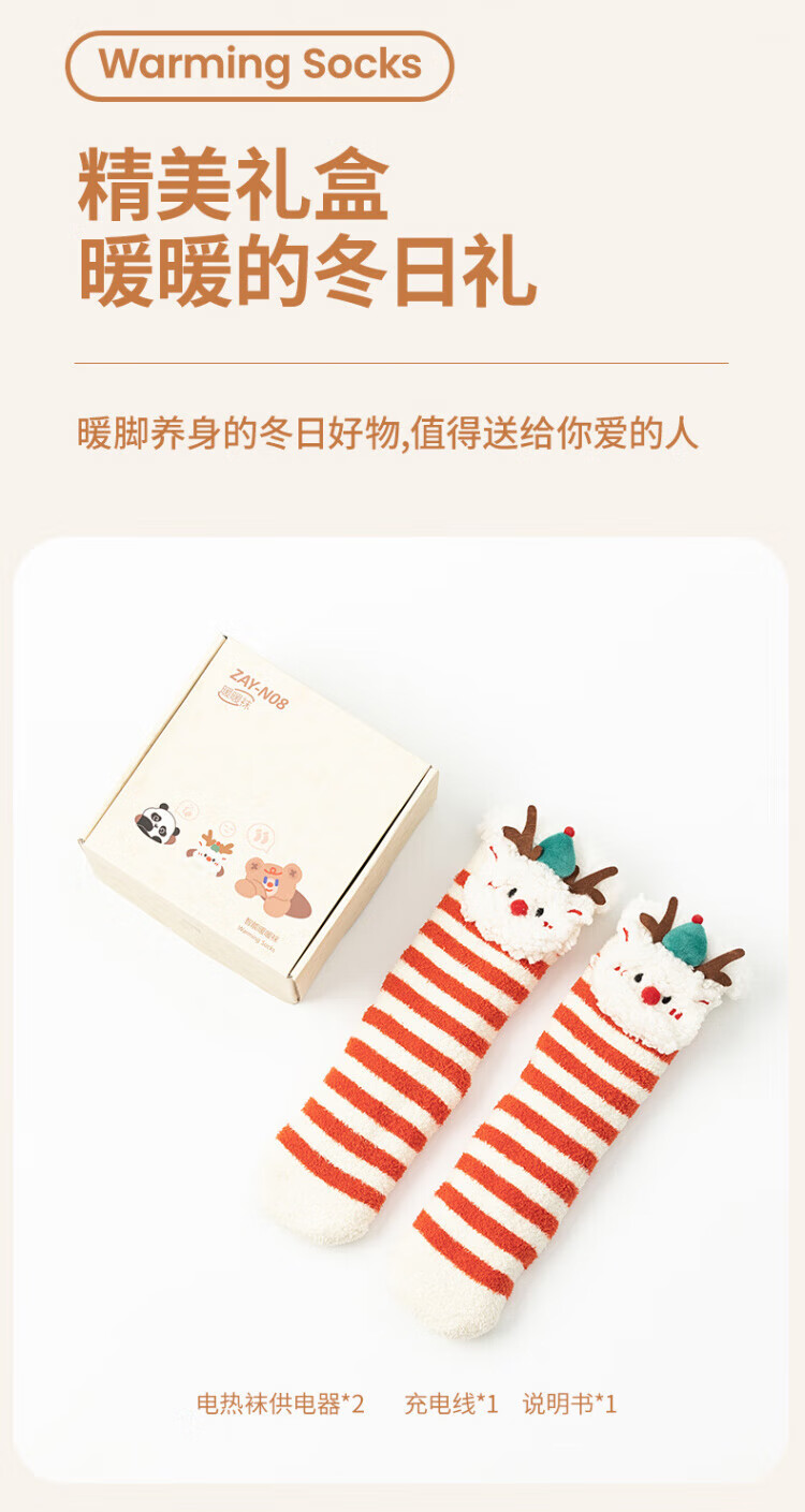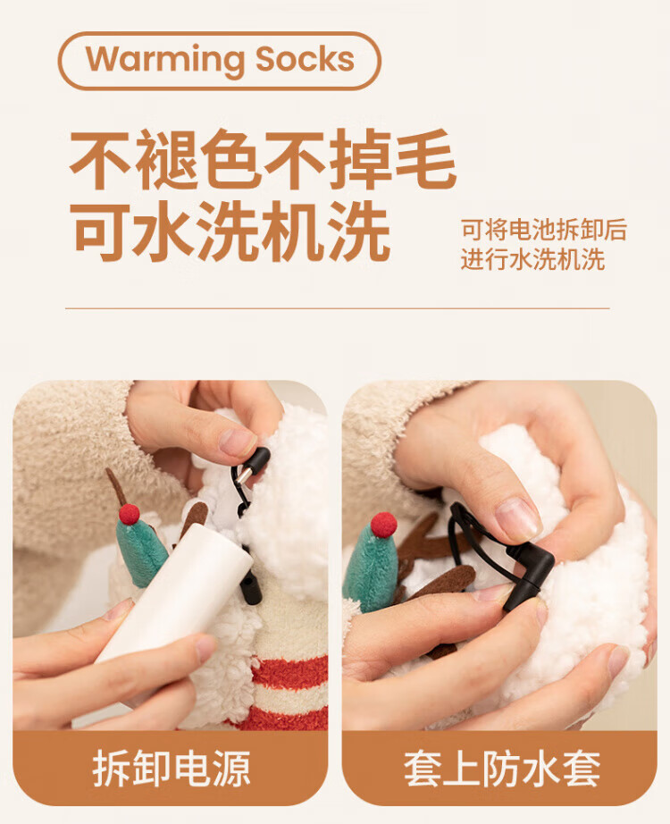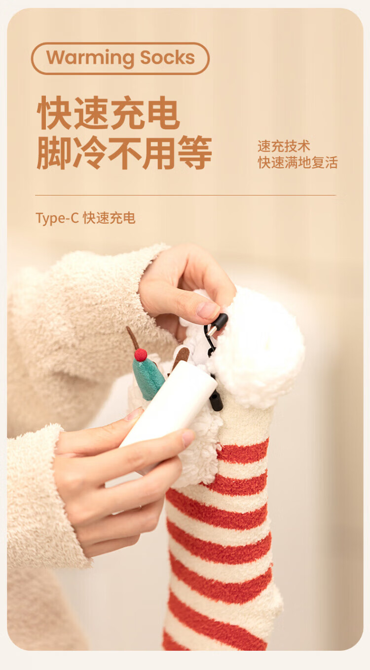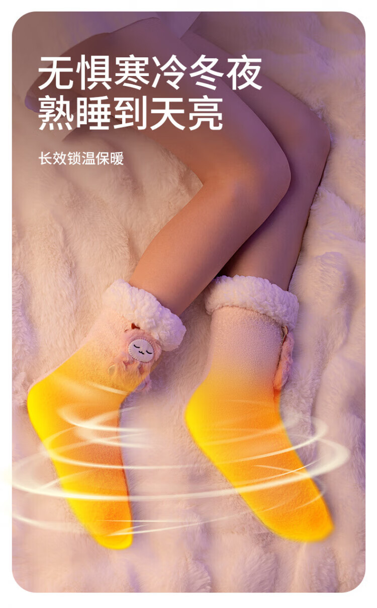 WCZ德国暖脚宝神器保暖加热发热袜子暖被窝床上睡觉用充电捂脚电热 暖粉小鹿-基础款+充电宝2个