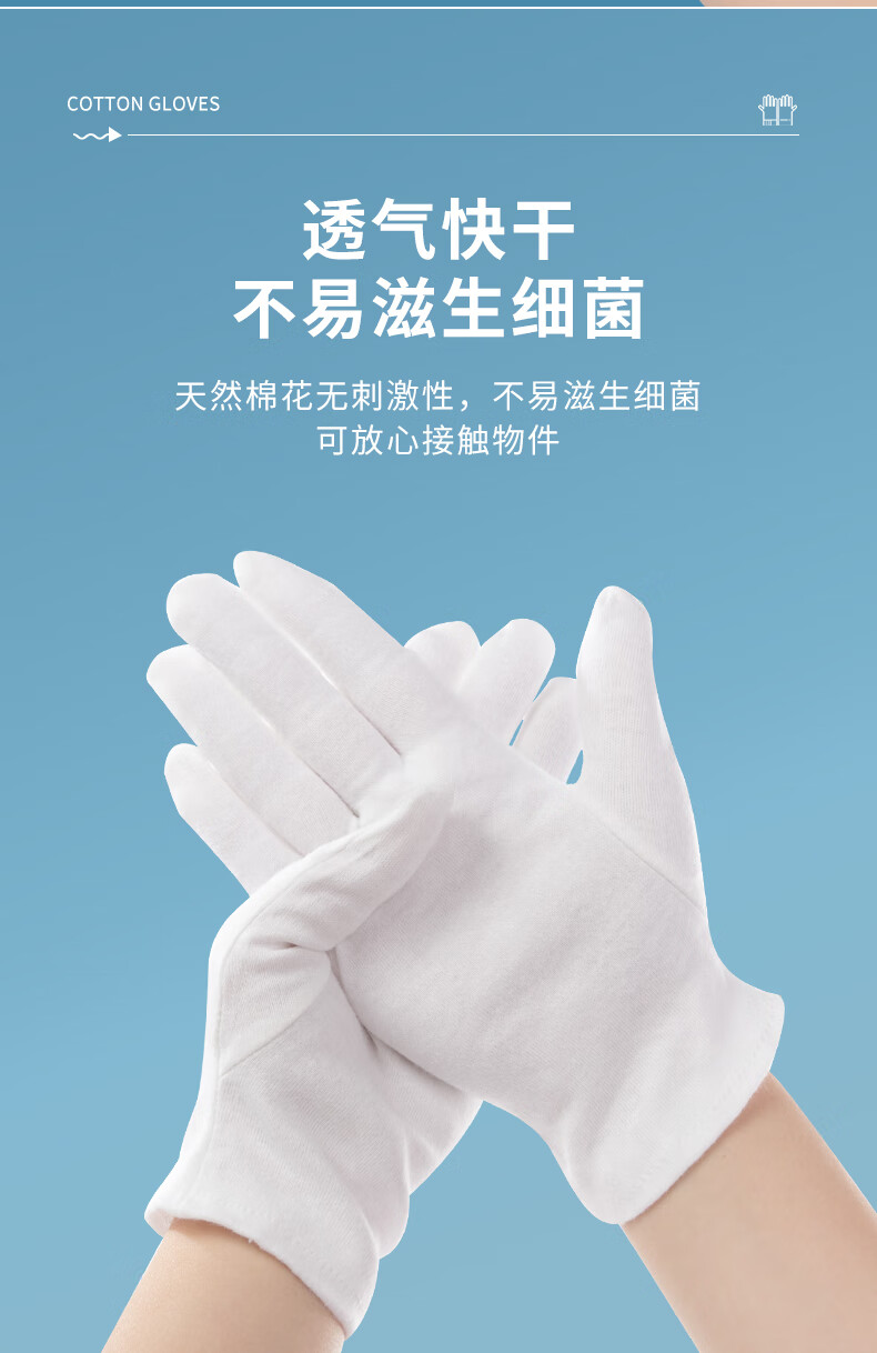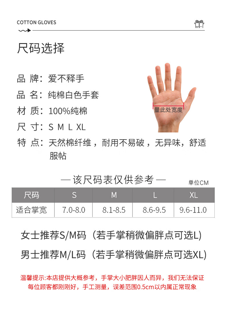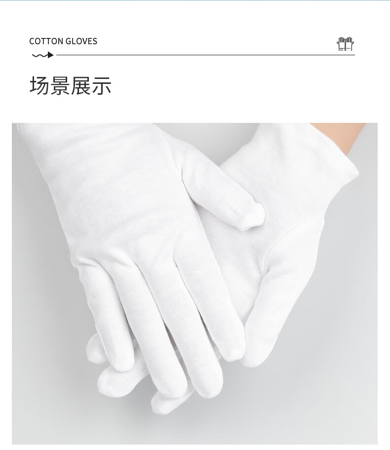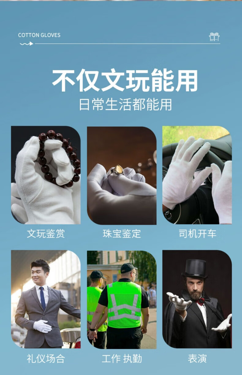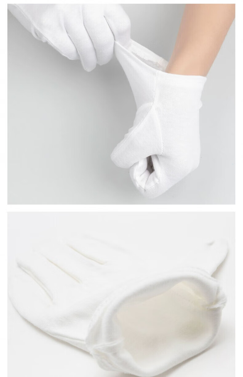 AILUKI日本白手套纯棉礼仪薄款文玩盘珠布男女干活耐磨开车白色汗布 【优质】白色纯棉手套【6双】 S
