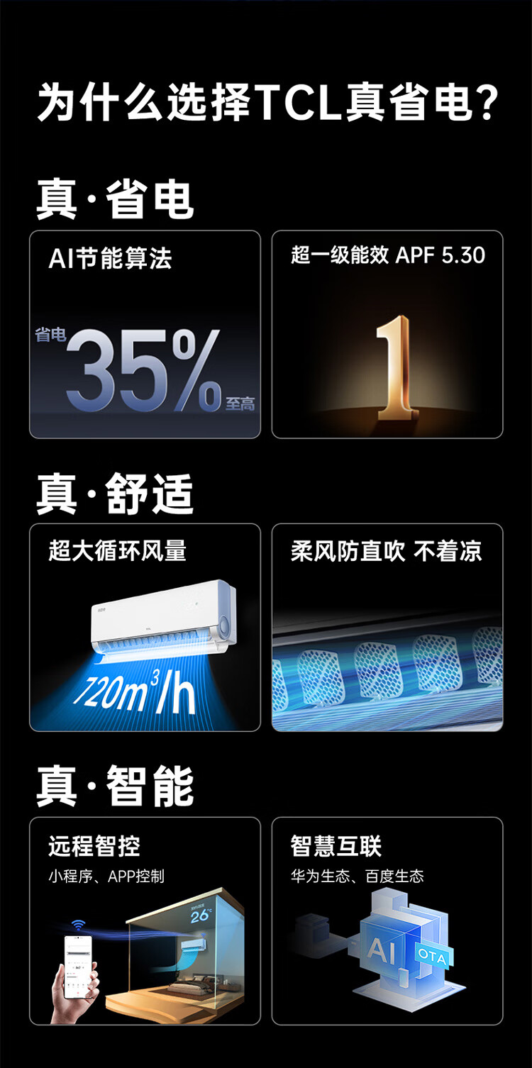 TCL空调大1匹小蓝翼真省电 空调挂机 超一级能效省电35%冷暖 KFR-26GW/RV2Ea+B1以旧换新国家补贴