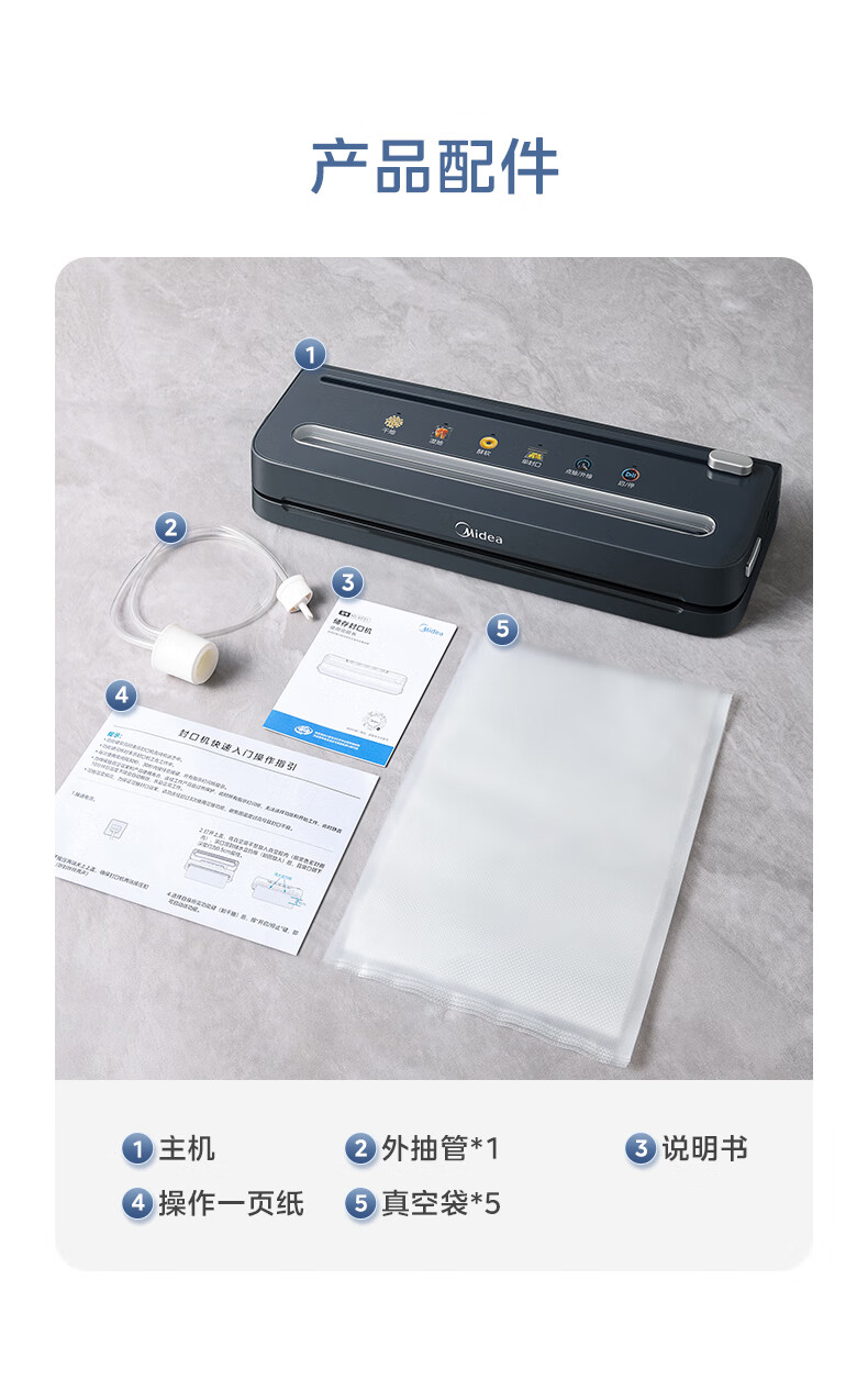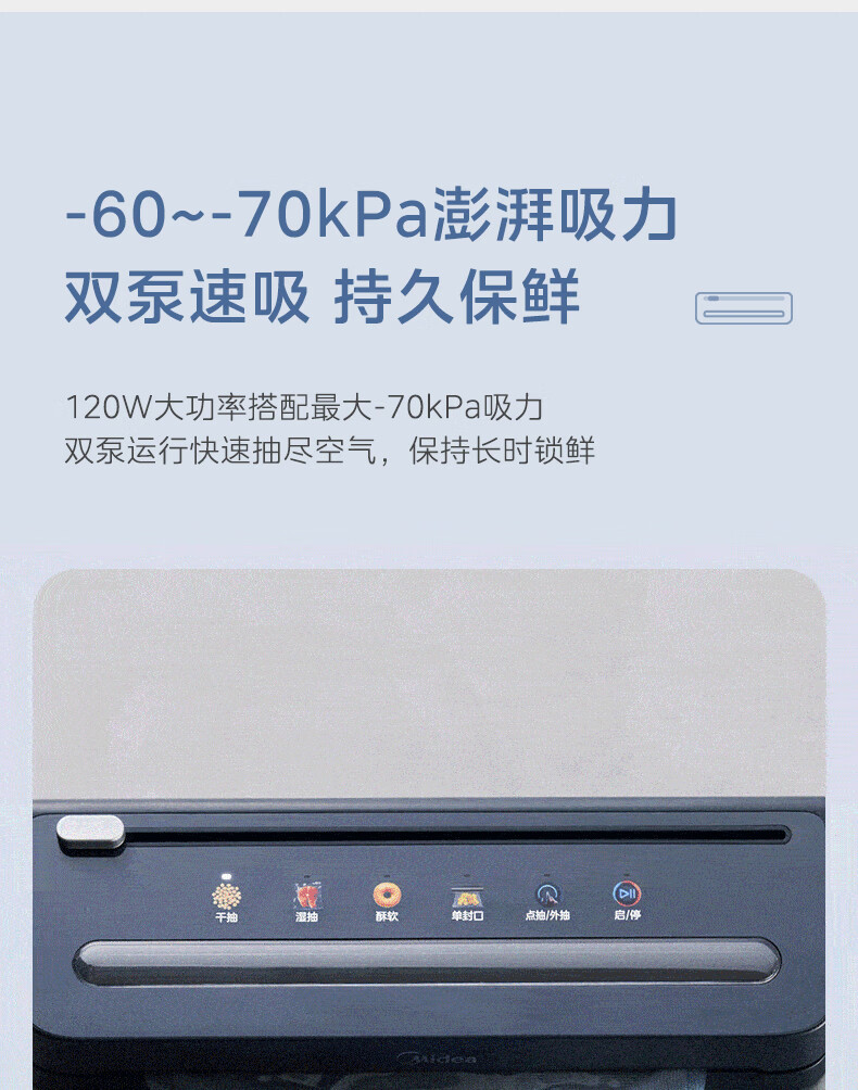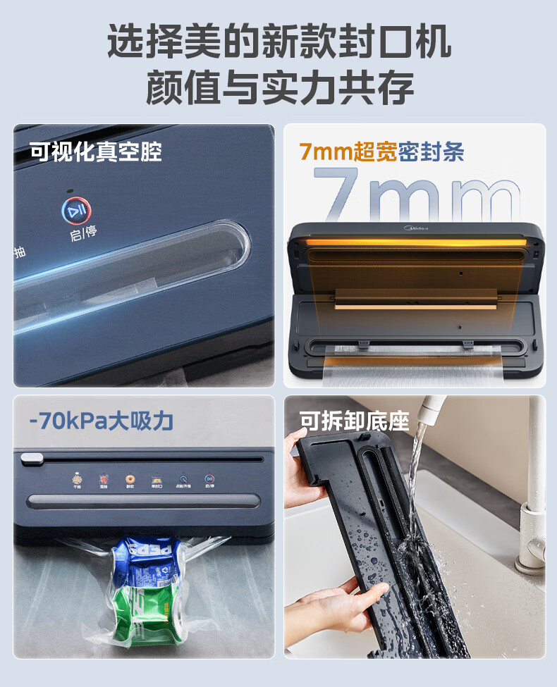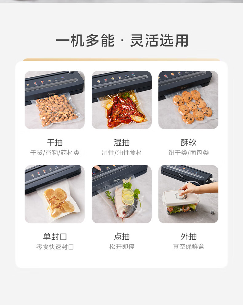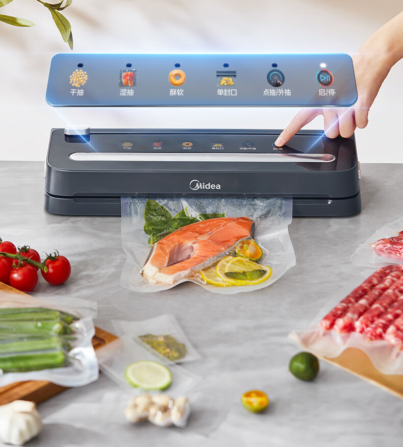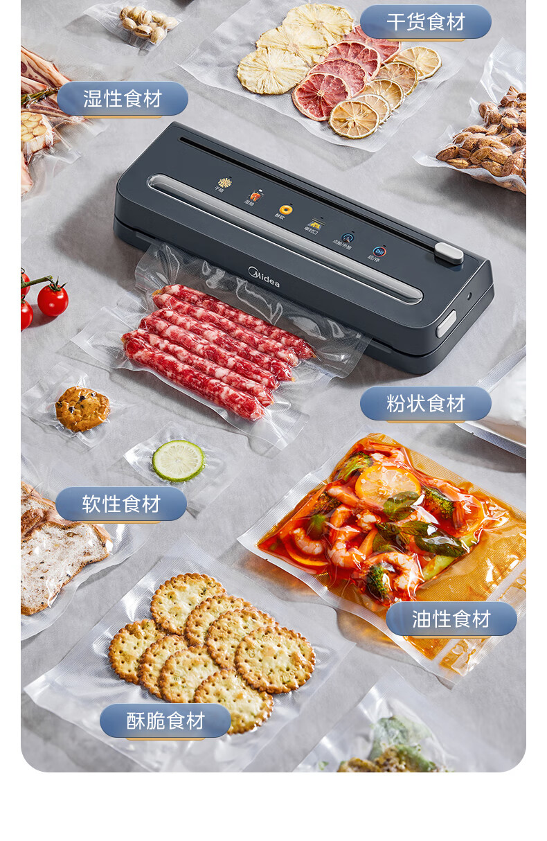 美的(Midea)真空封口机 家用全自动真空封口机 食品塑封机干湿两用大吸力真空包装打包机 严密封系列 MJ-KF61