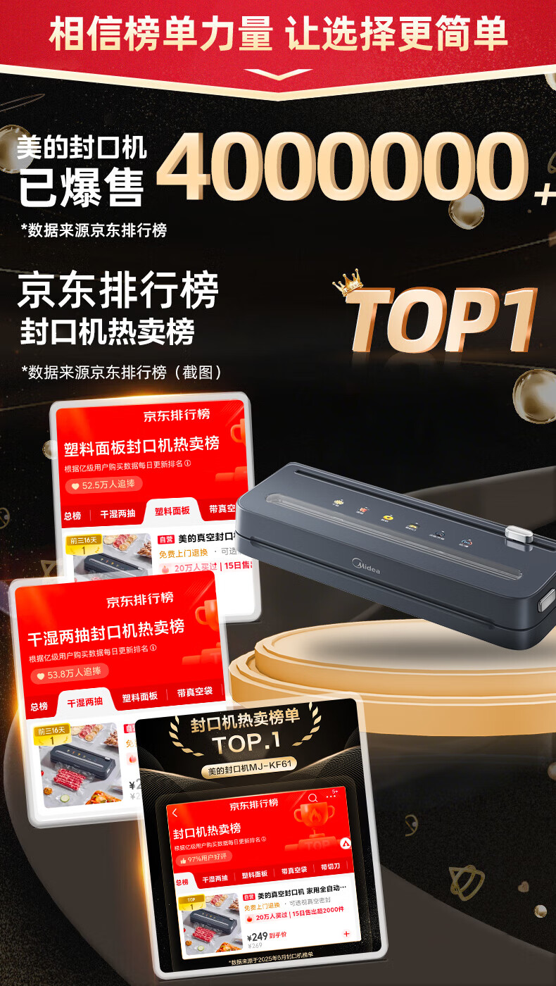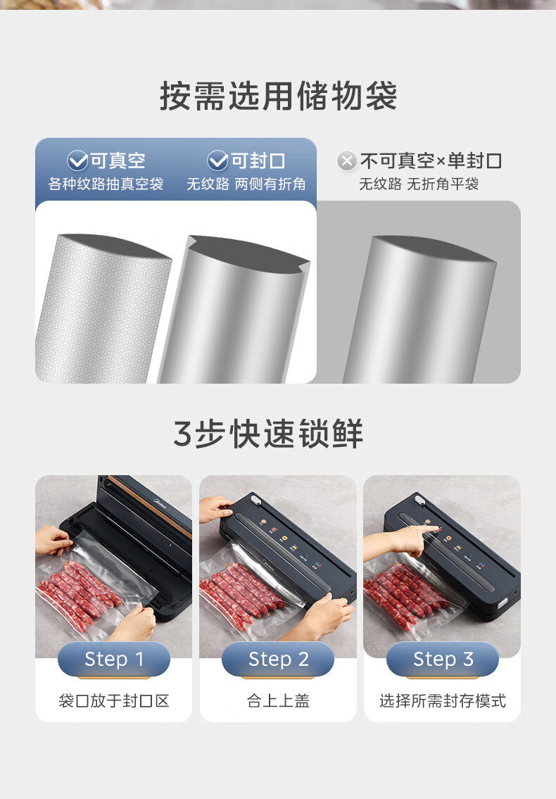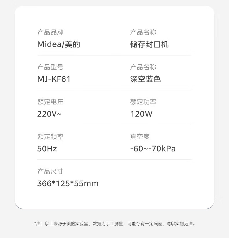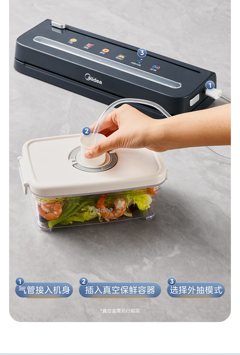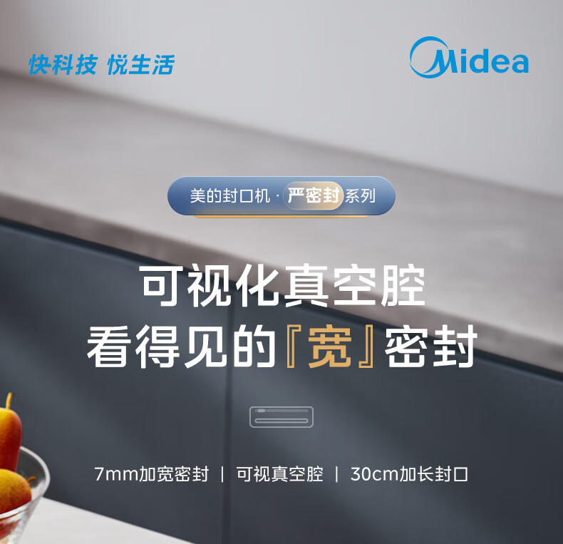 美的(Midea)真空封口机 家用全自动真空封口机 食品塑封机干湿两用大吸力真空包装打包机 严密封系列 MJ-KF61