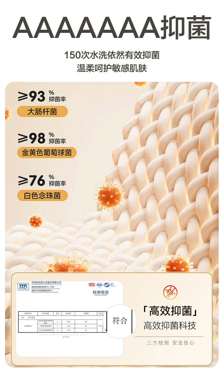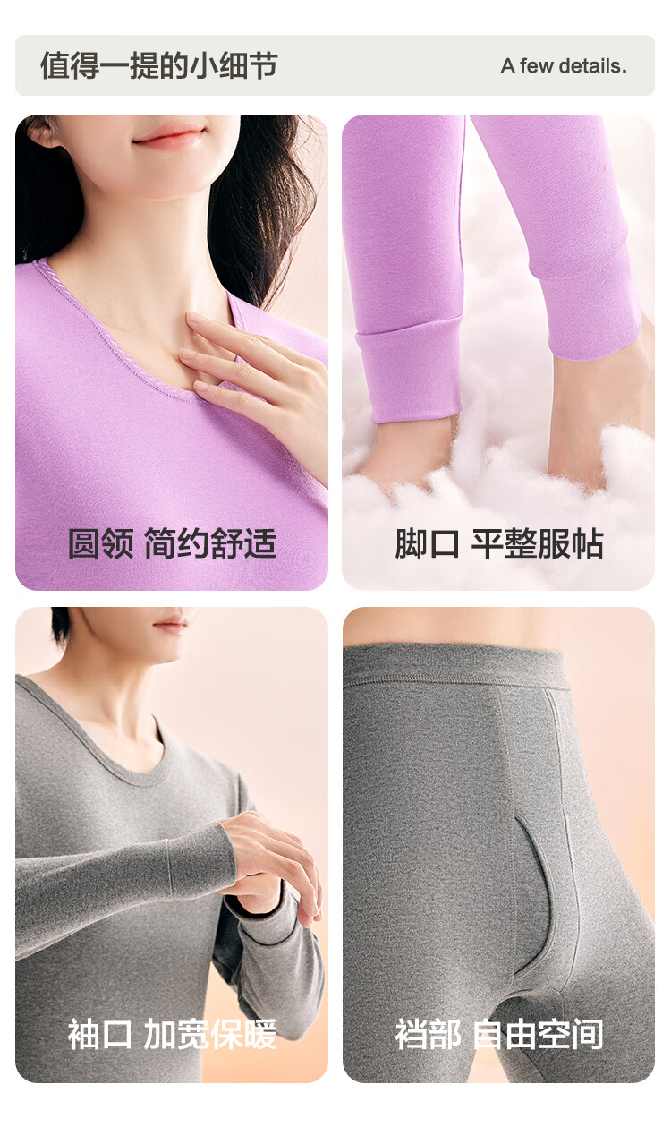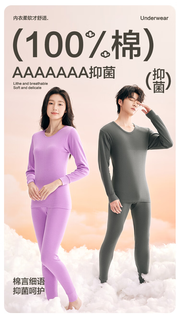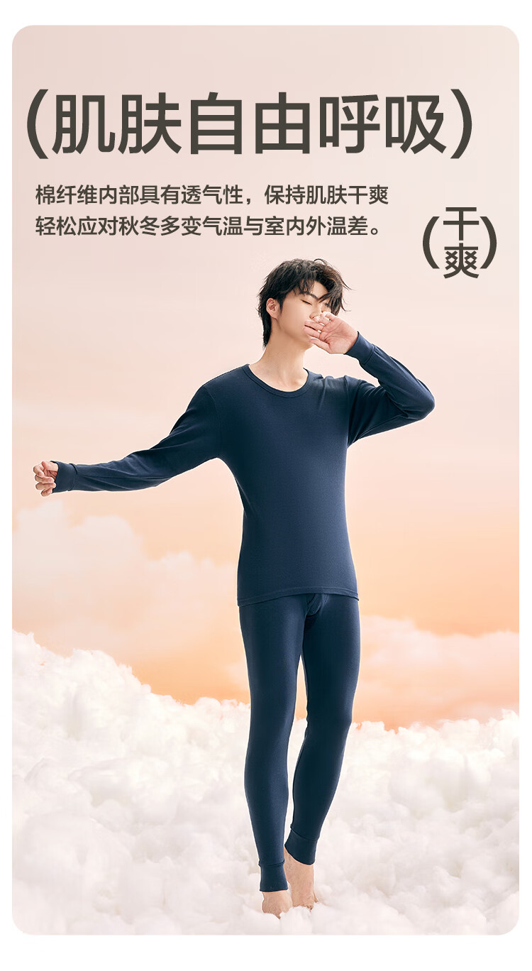 红豆内衣男7A抑菌升级秋衣秋裤纯棉套装圆领薄款打底保暖内衣