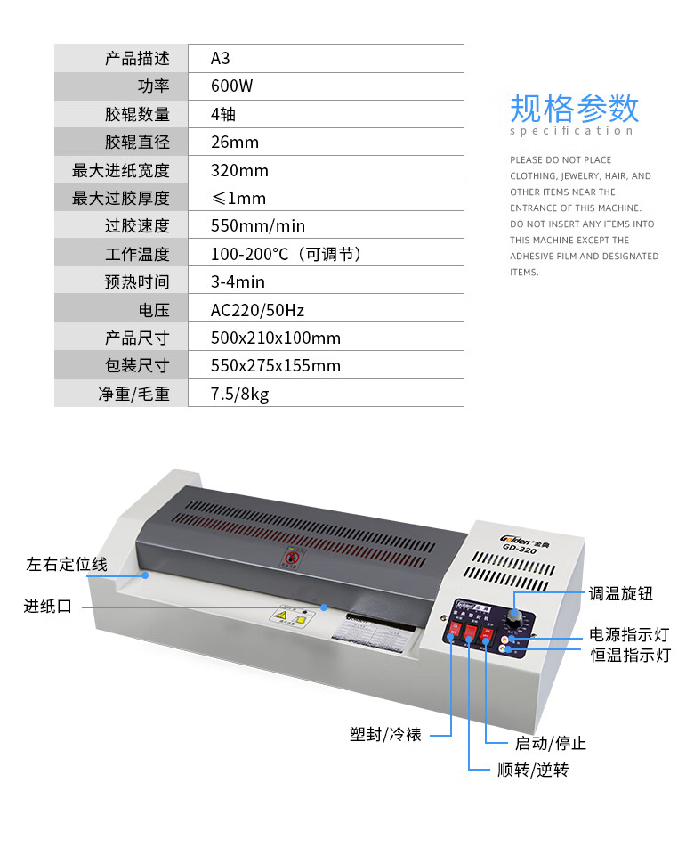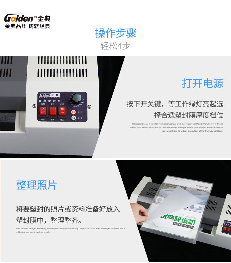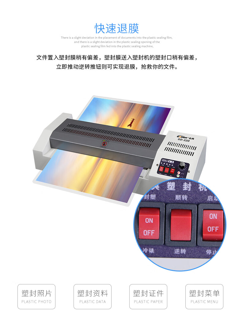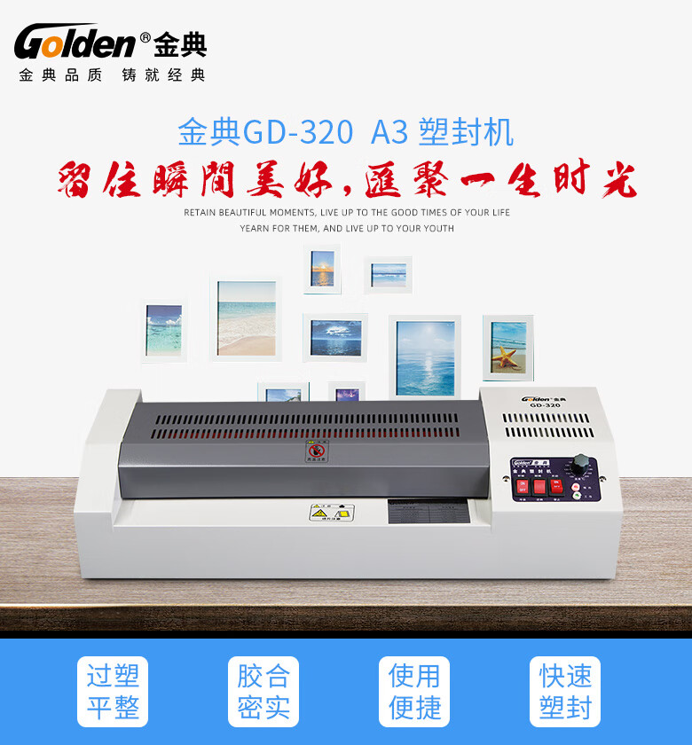 金典(GOLDEN)GD-320 塑封机 电动过塑机 冷裱/热裱覆膜机 过膜过胶机 封装机 (1台装)