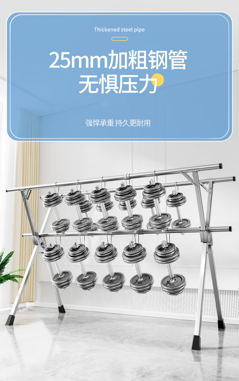 佳帮手晾衣架落地立式 衣架阳台折叠三杆晾晒架不锈钢伸缩室内外晒被架