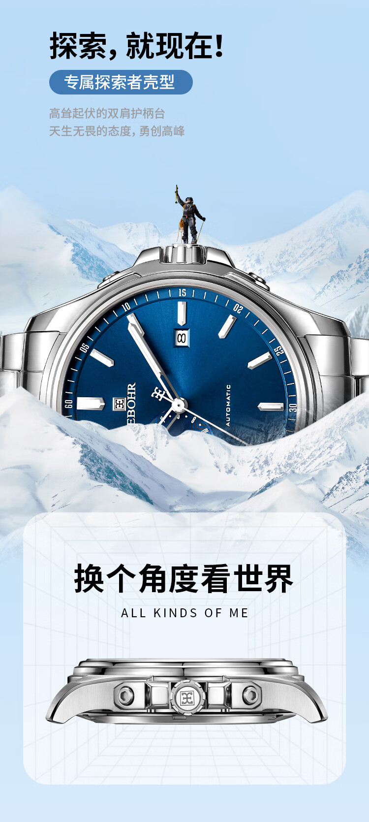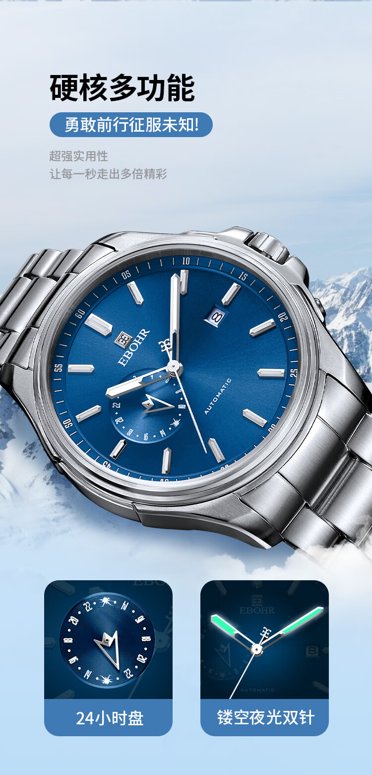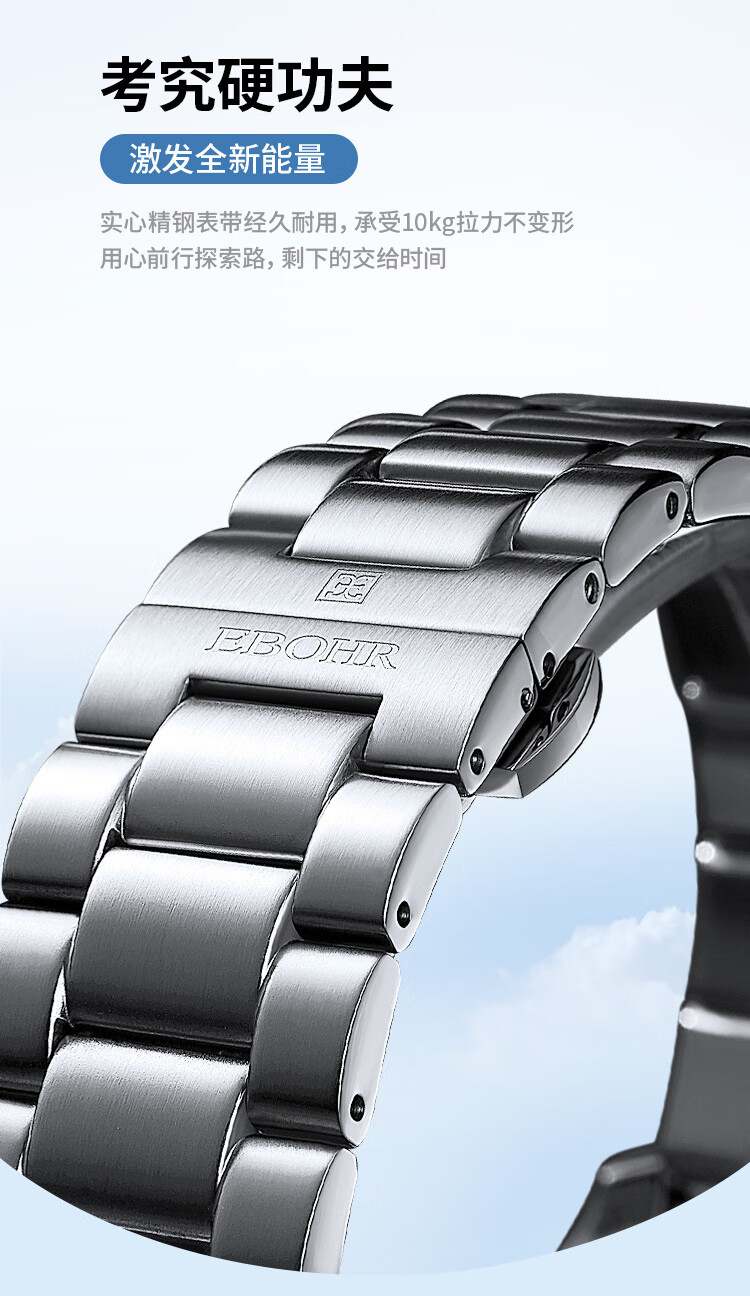 依波(EBOHR)手表男 探索者系列生日节日礼物钢带男士机械腕表51260217送男友