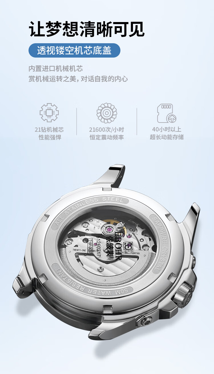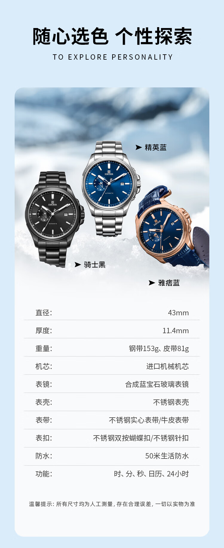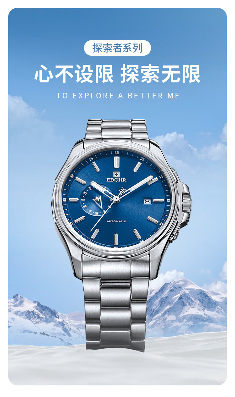 依波(EBOHR)手表男 探索者系列生日节日礼物钢带男士机械腕表51260217送男友