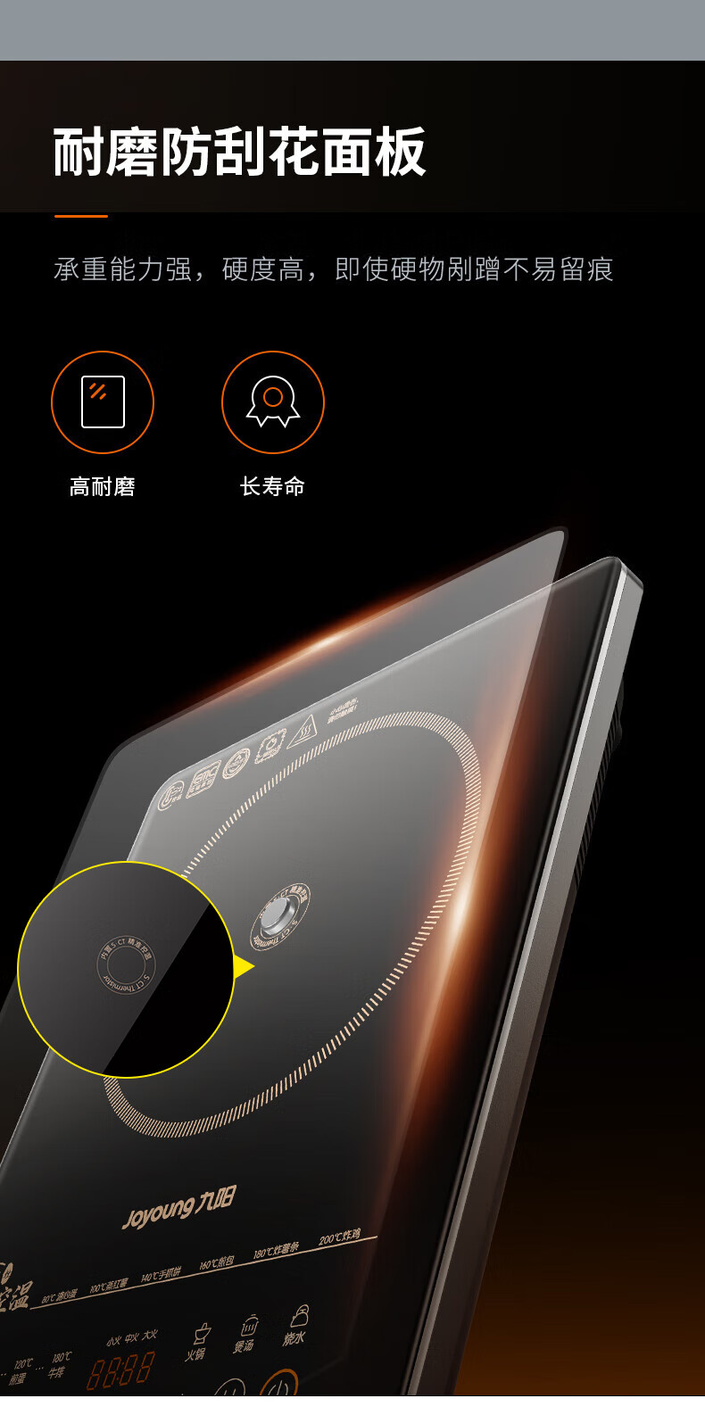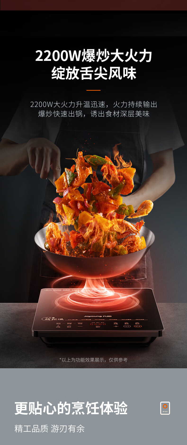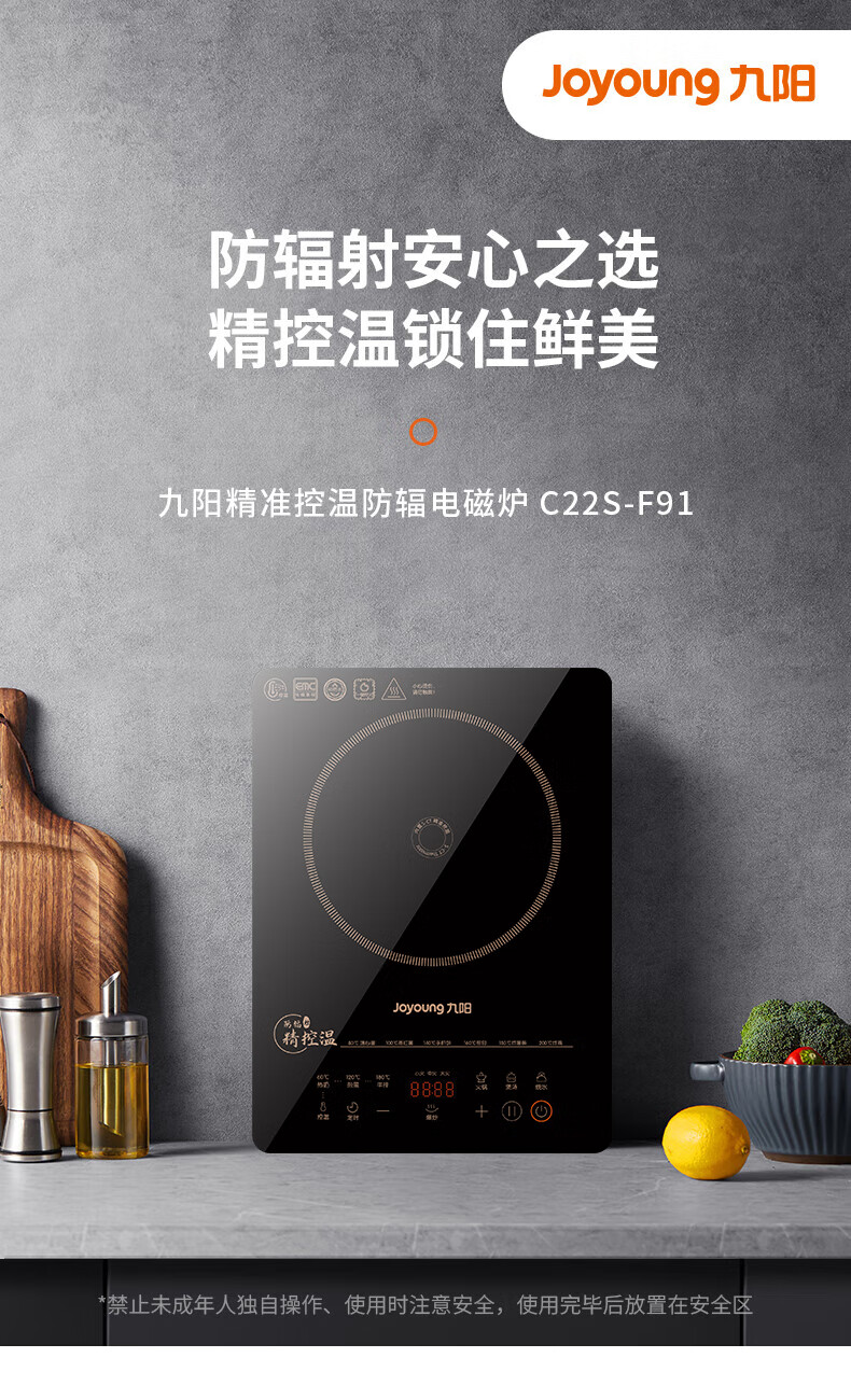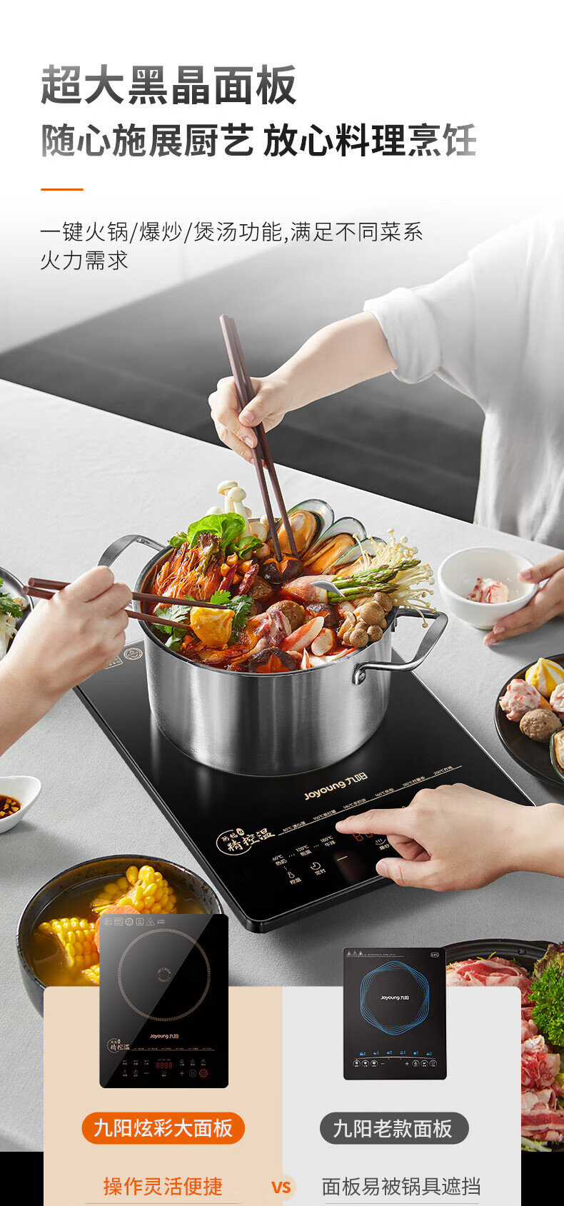 九阳(Joyoung)2025防辐射电磁炉爆炒精准控温多功能火锅炉家用2200W大功率10档火力火锅炉大面板智能C22S-F91 【商场同款-6D防水-防辐射】2200W
