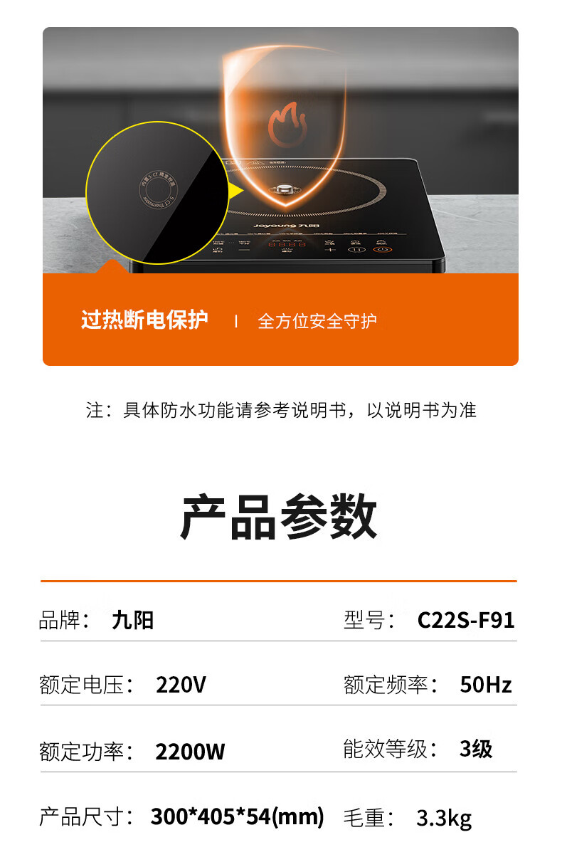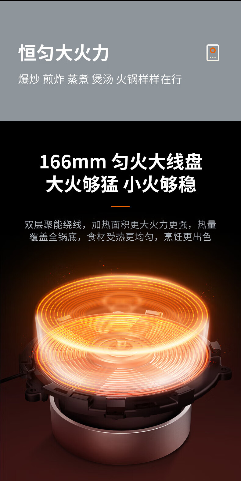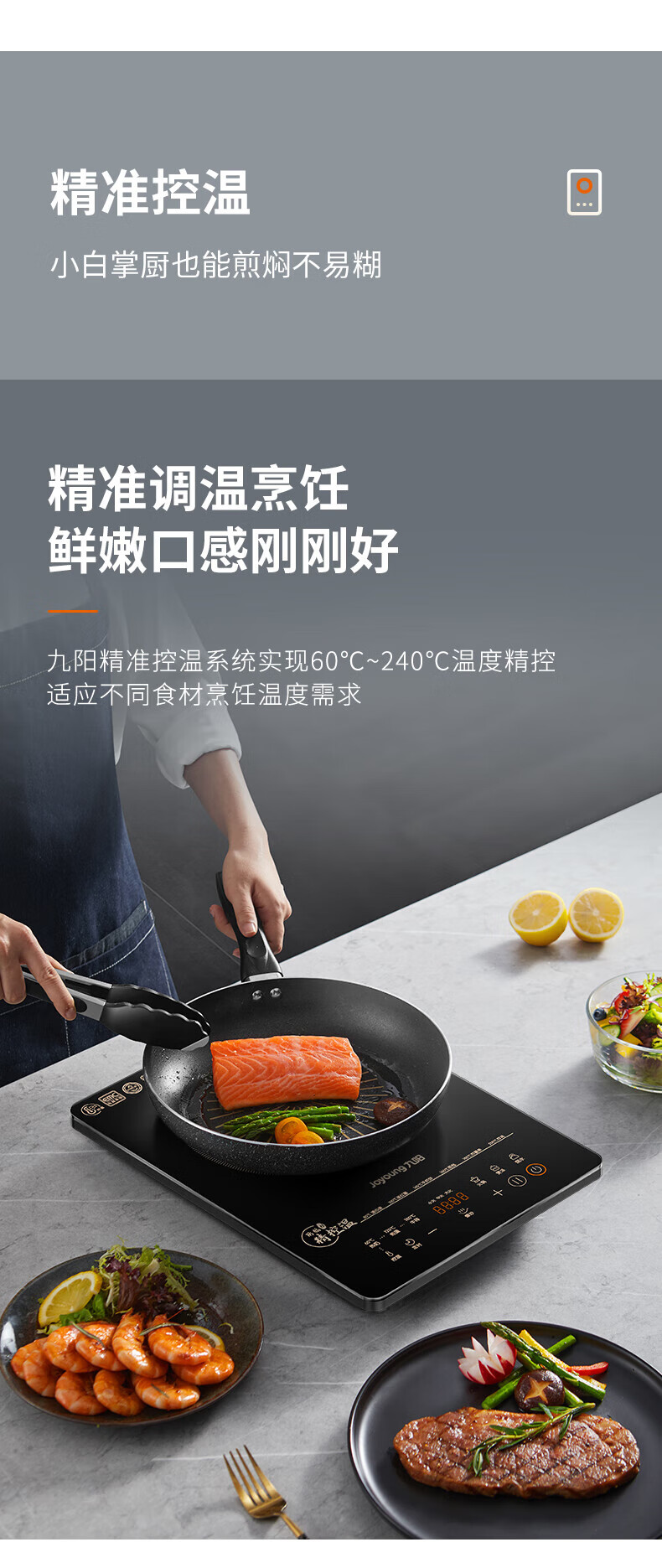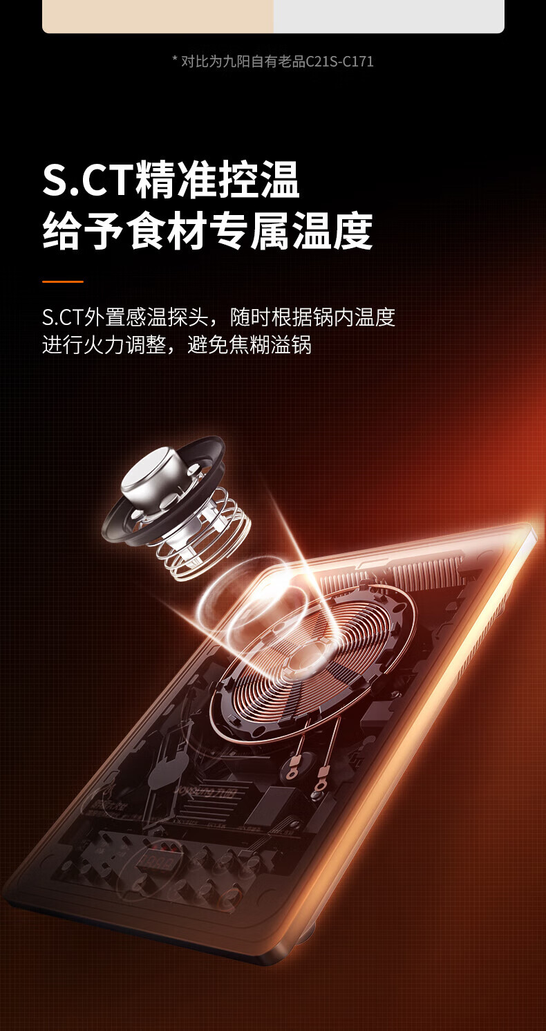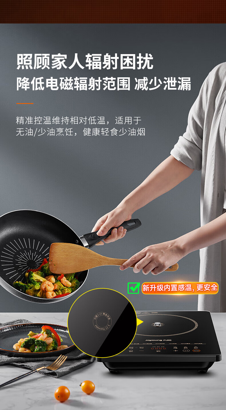 九阳(Joyoung)2025防辐射电磁炉爆炒精准控温多功能火锅炉家用2200W大功率10档火力火锅炉大面板智能C22S-F91 【商场同款-6D防水-防辐射】2200W