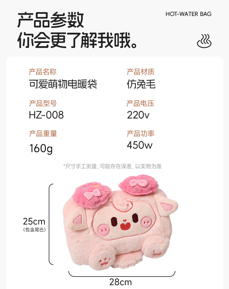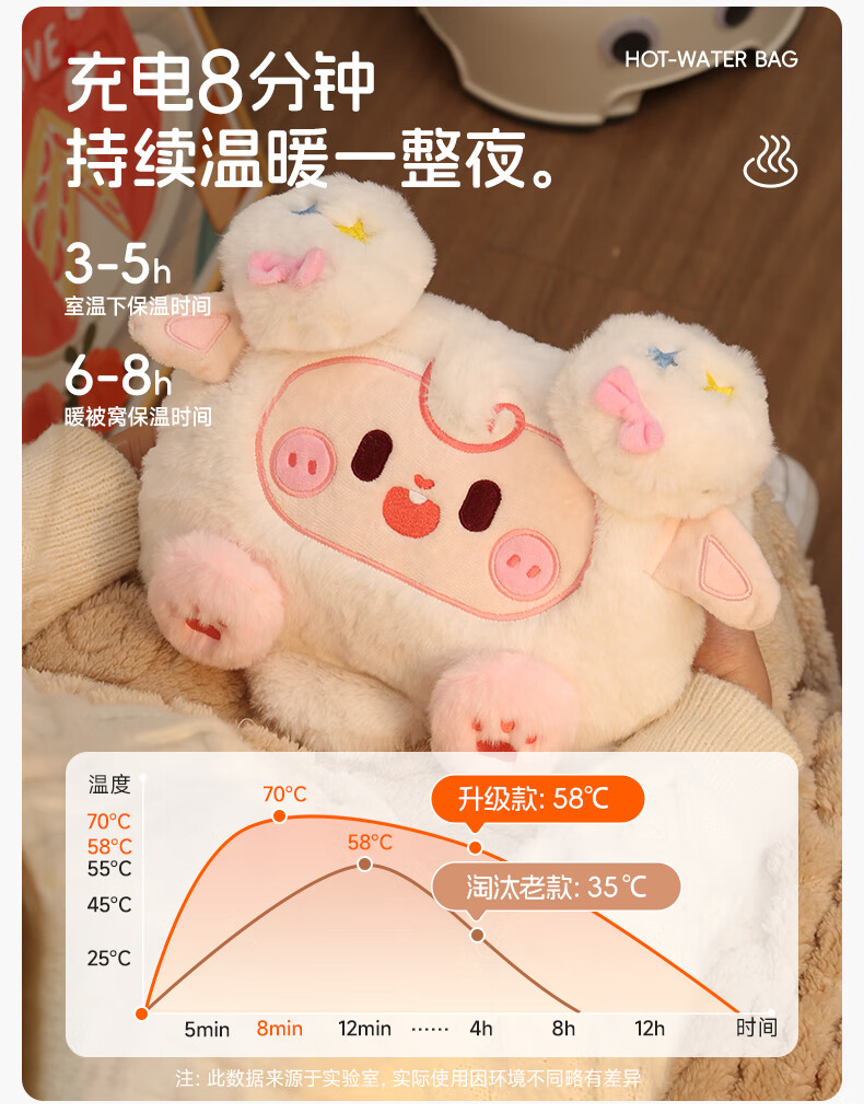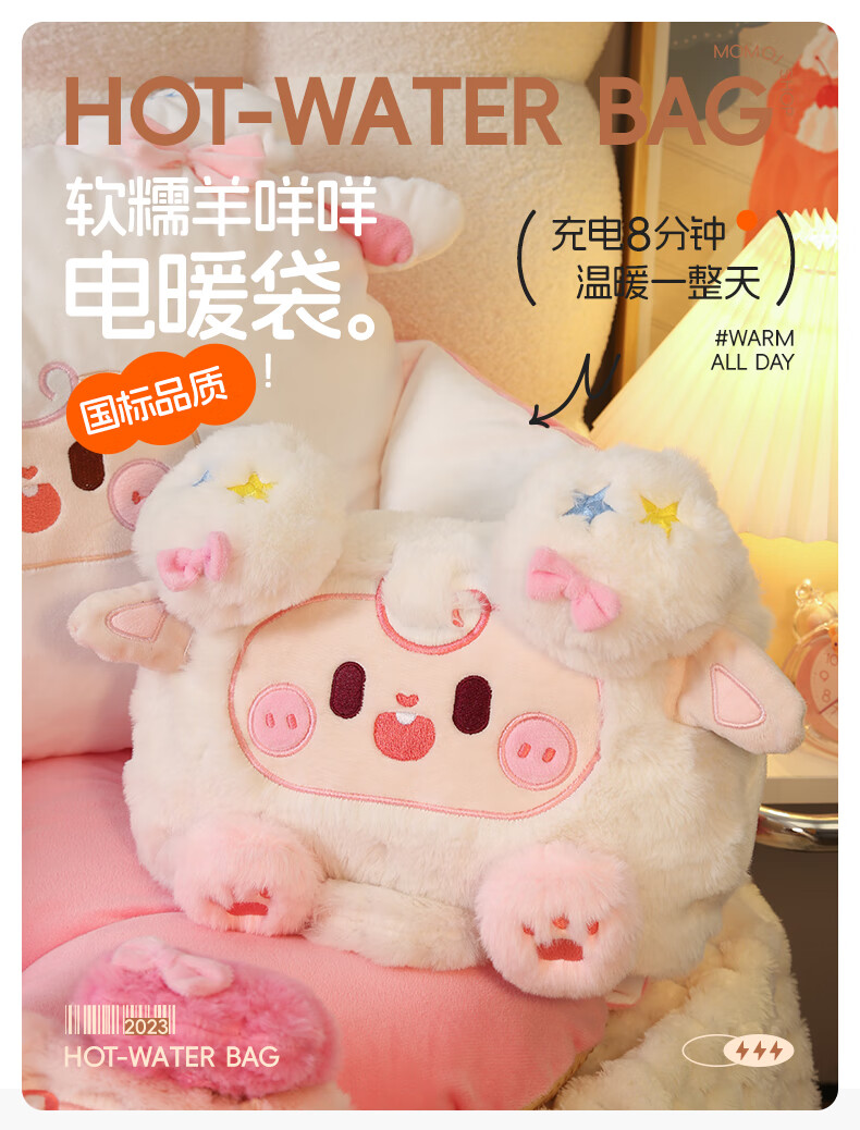 DEATKN德国可爱热水袋2025新款充电款暖宝宝冬天暖手宝电暖水袋 粉色小羊【国标自动断电】