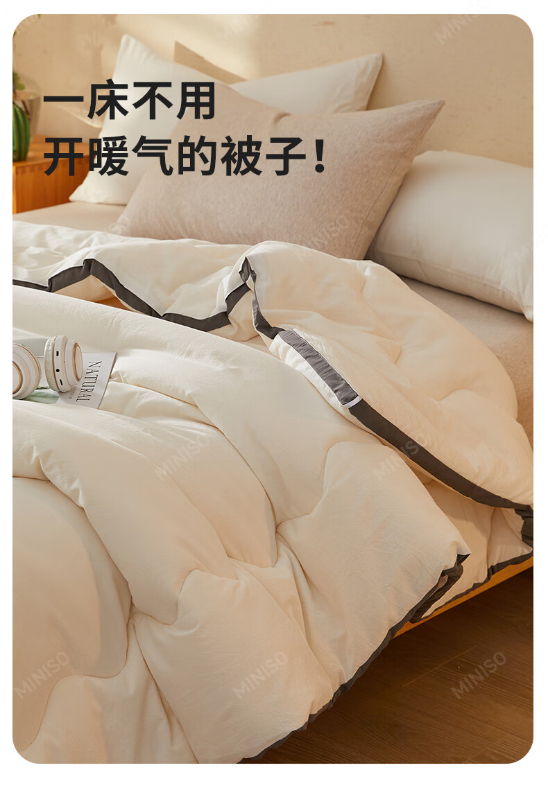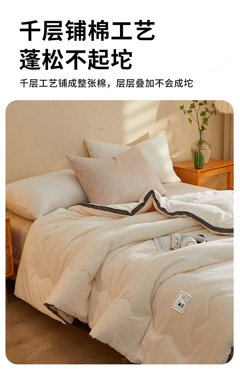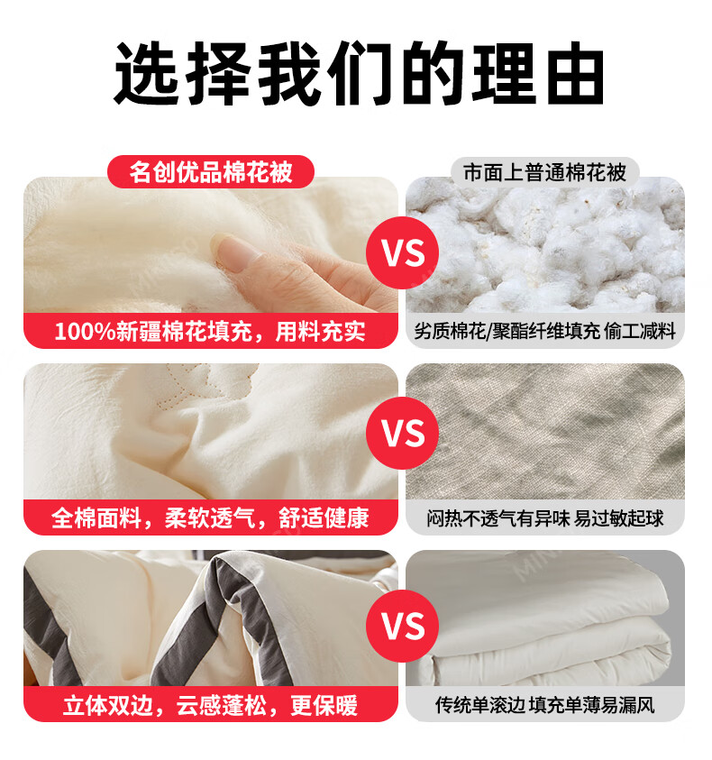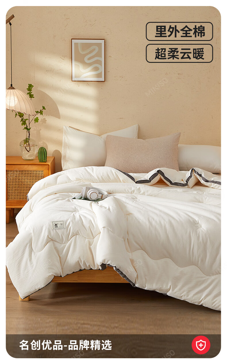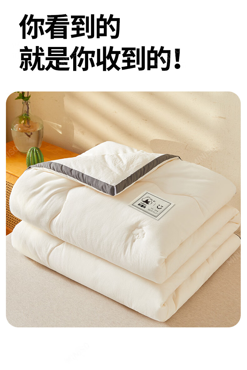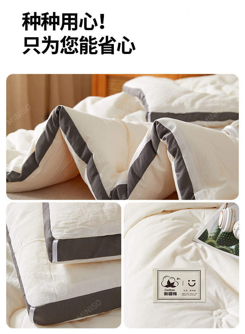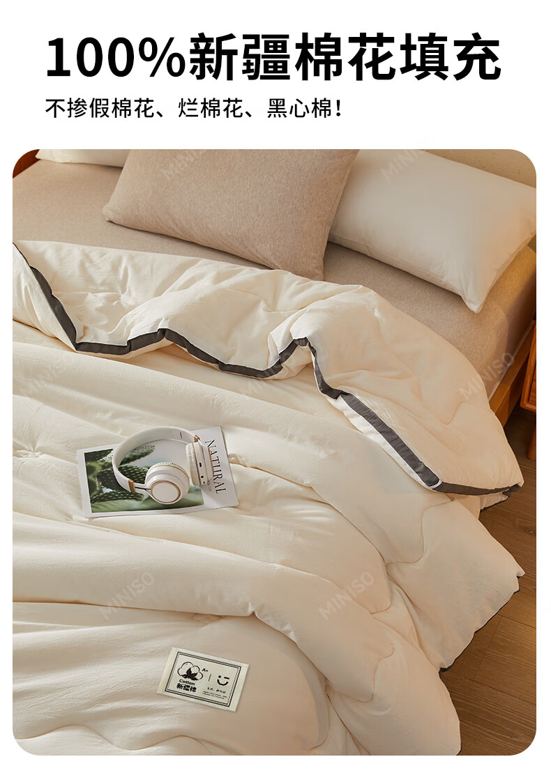 名创优品新疆全棉棉花被子春秋被冬天1.5x2米纯棉被褥宿舍单双人棉絮四季 A类新疆棉-白灰 200X230cm加厚冬被约8斤