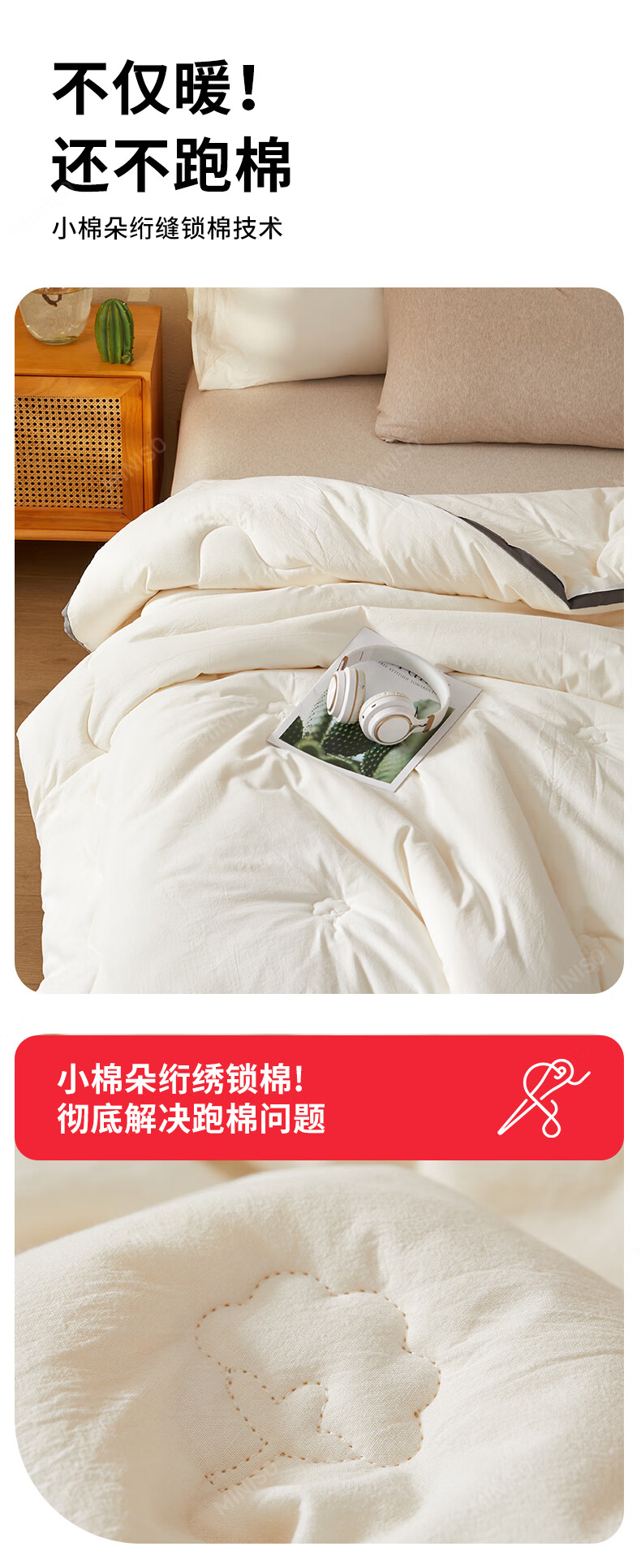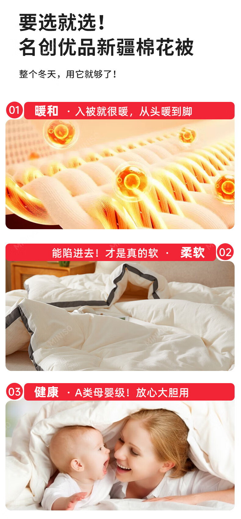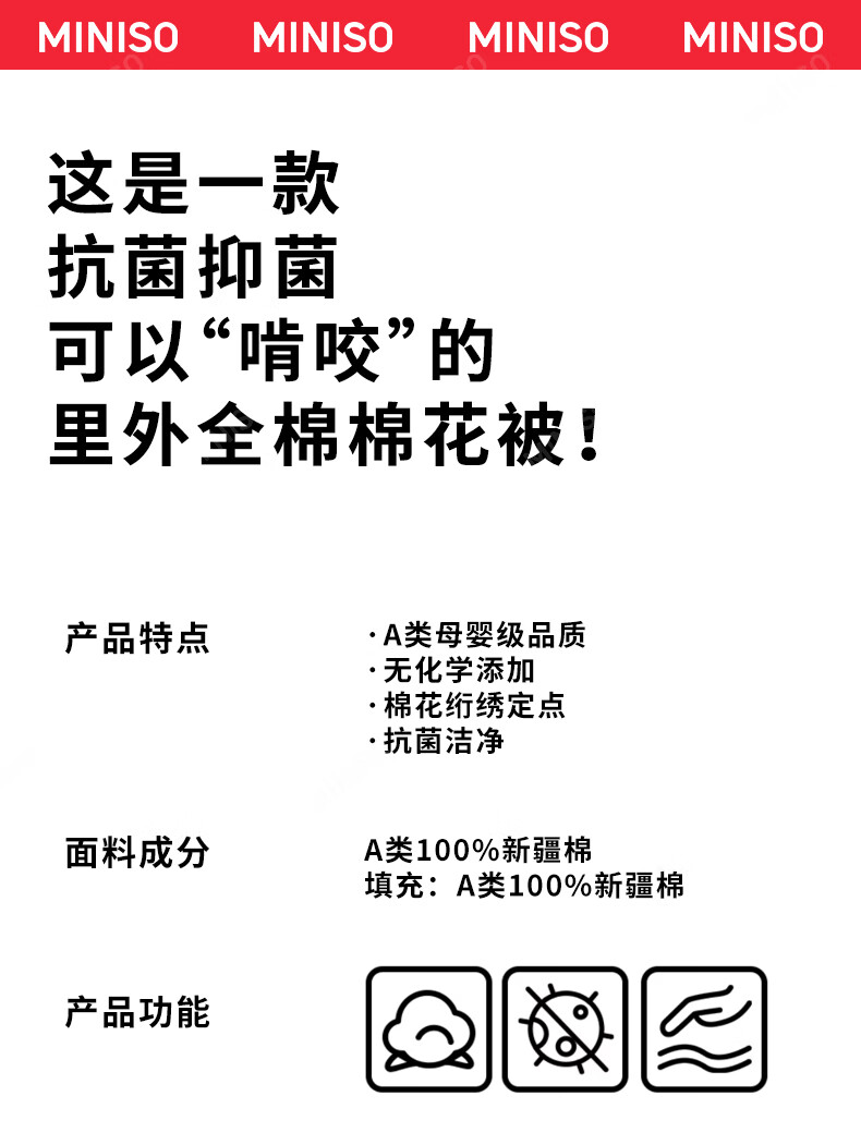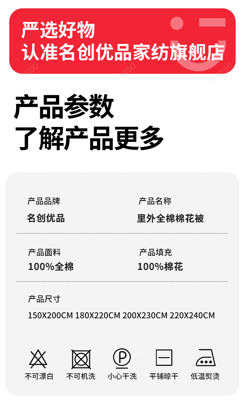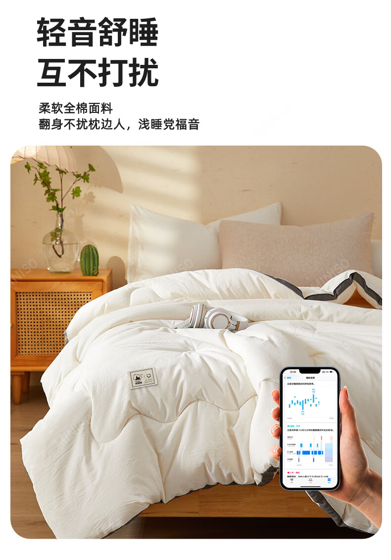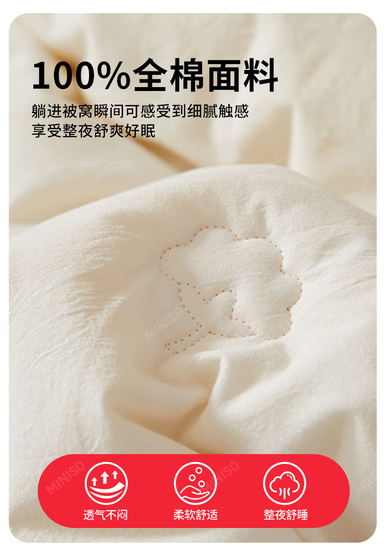 名创优品新疆全棉棉花被子春秋被冬天1.5x2米纯棉被褥宿舍单双人棉絮四季 A类新疆棉-白灰 200X230cm加厚冬被约8斤