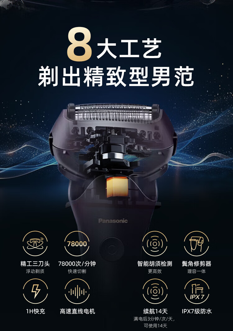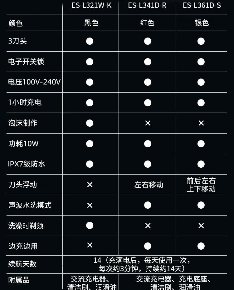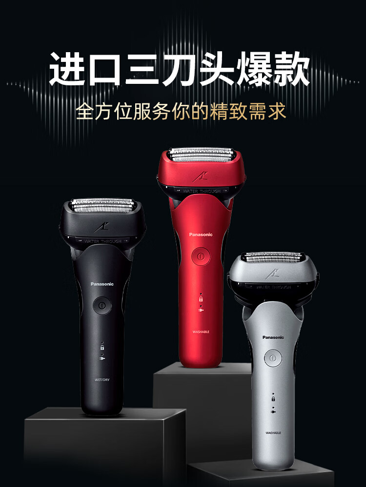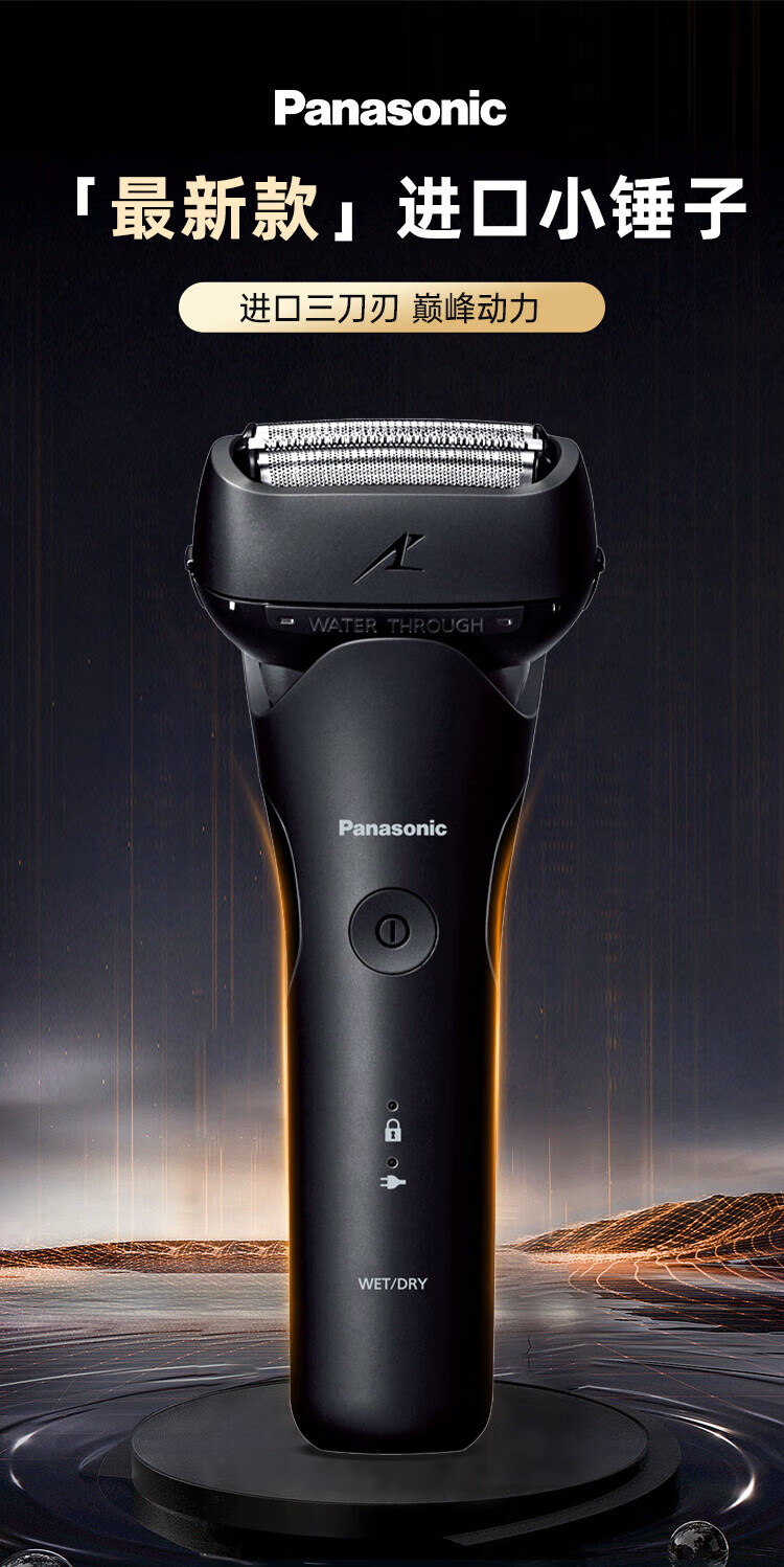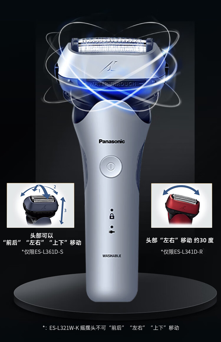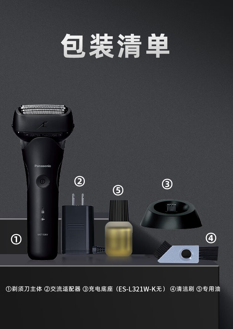 松下(Panasonic)日本原装进口新款L321W-K 黑色往复式小锤子3刀头 男士电动剃须刮胡刀 便携车载旅行老公父亲礼物