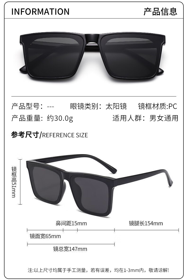 白小奢 太阳镜-1050【全框砂黑款+礼品】遮阳眼镜GM显小脸驾驶墨镜开学