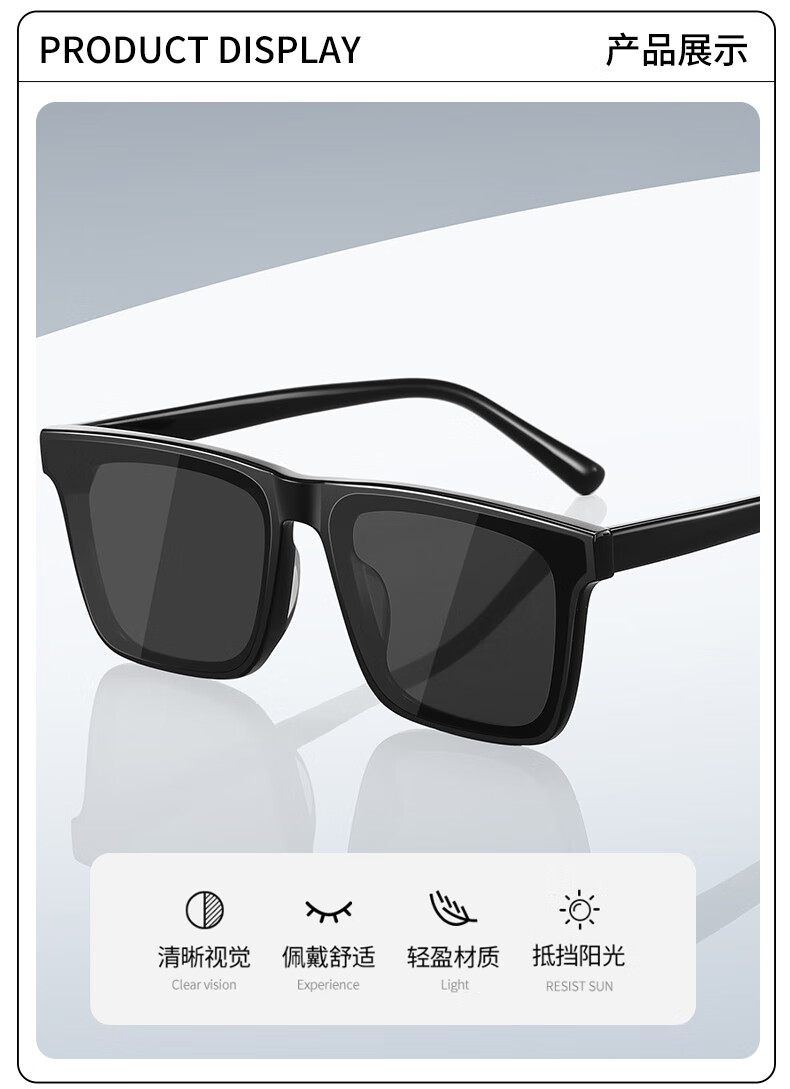 沸士特墨镜 男女款方框偏光太阳镜 高清男女眼镜 开车驾驶七夕礼物墨镜