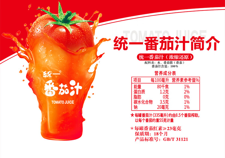 统一番茄大红罐100%番茄汁浓缩还原335ml*24罐(新旧款交替发货)