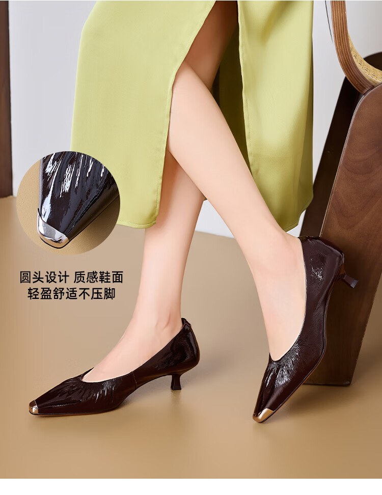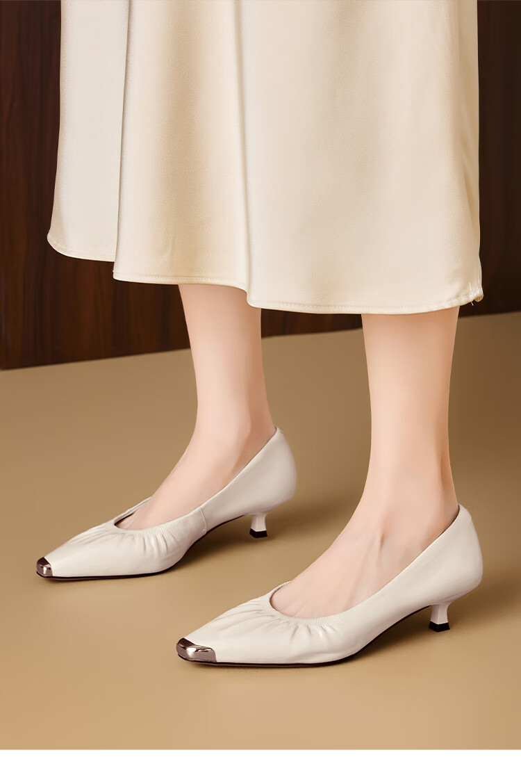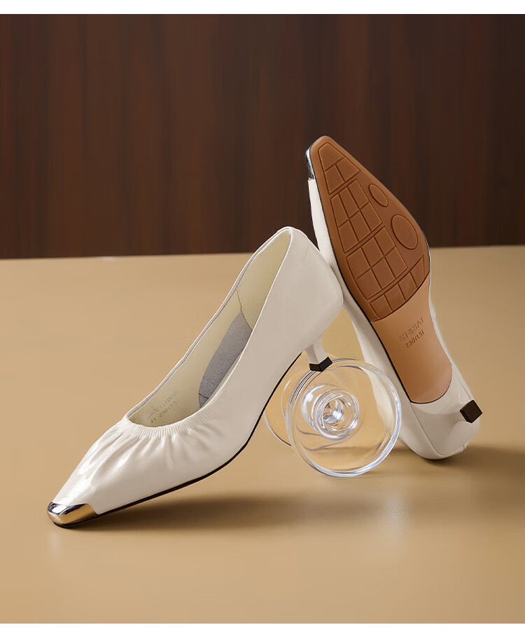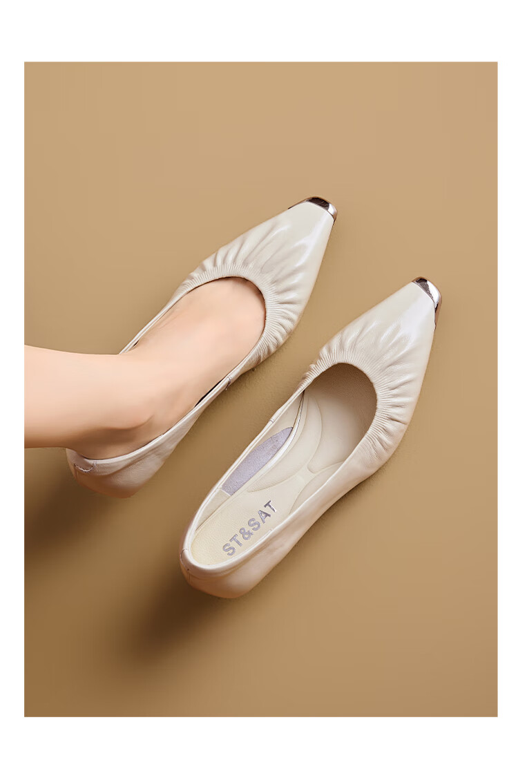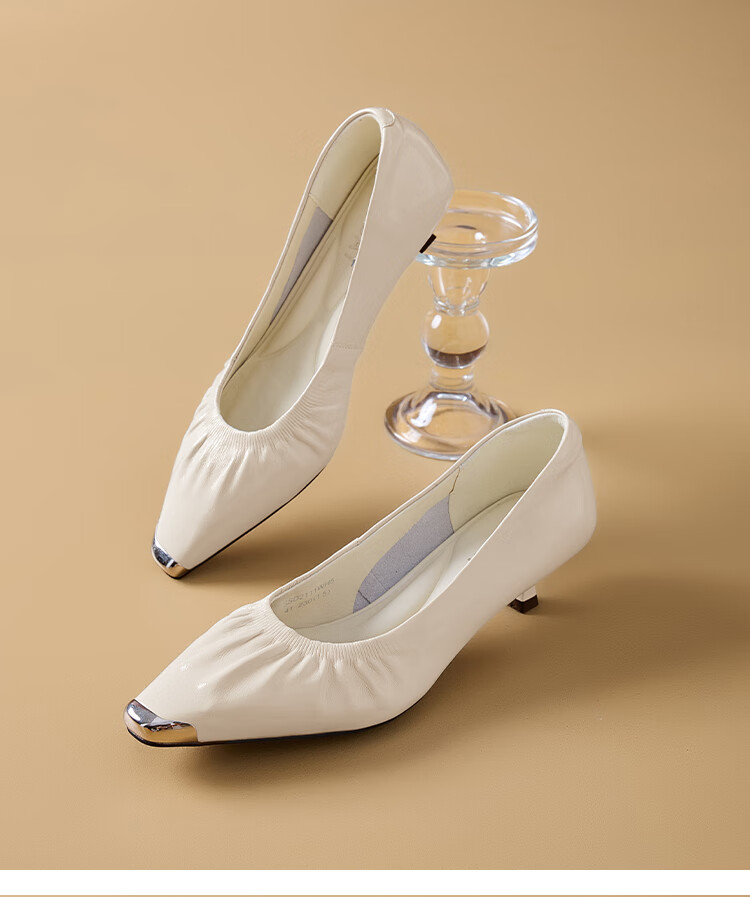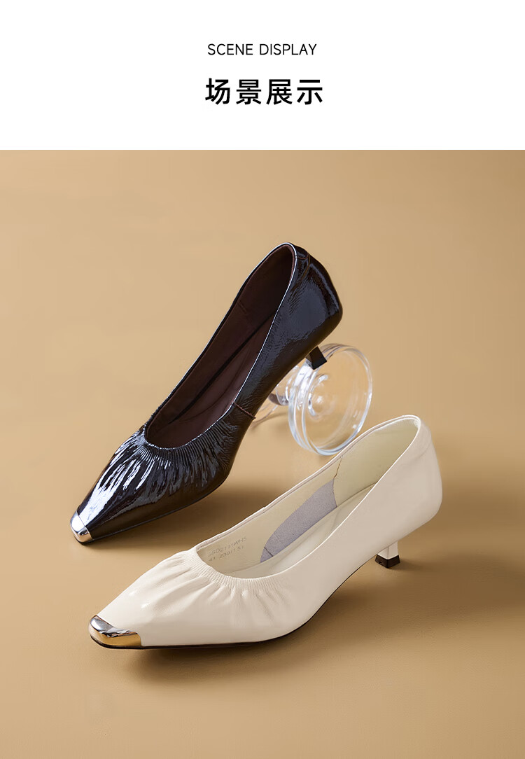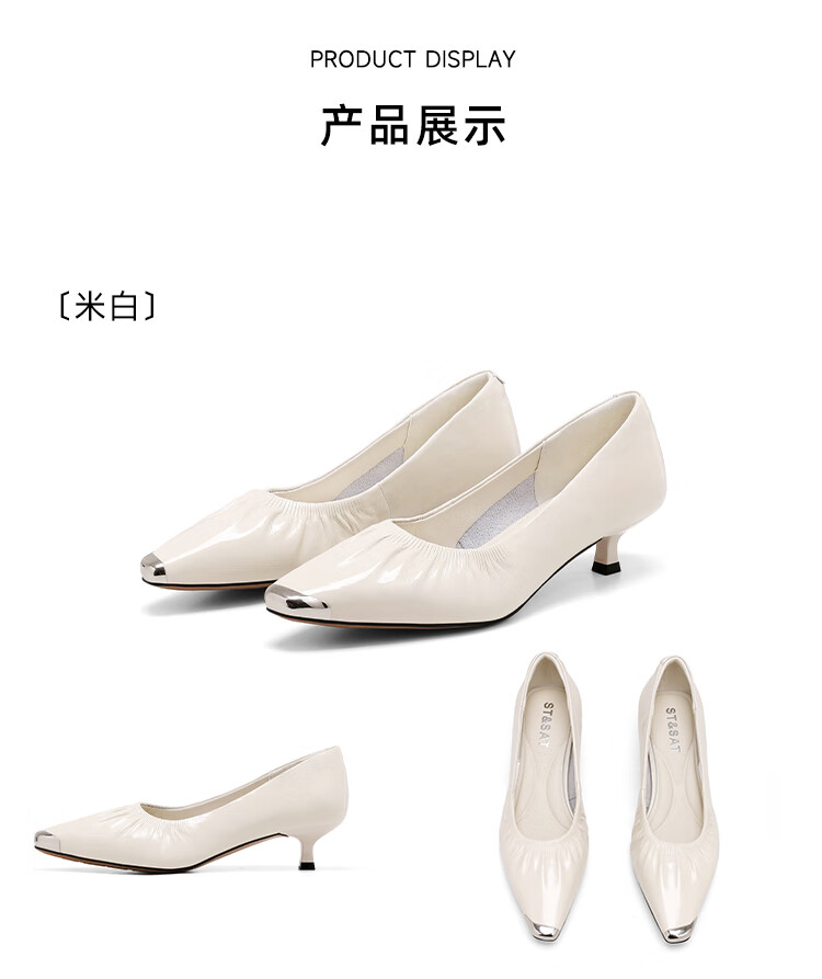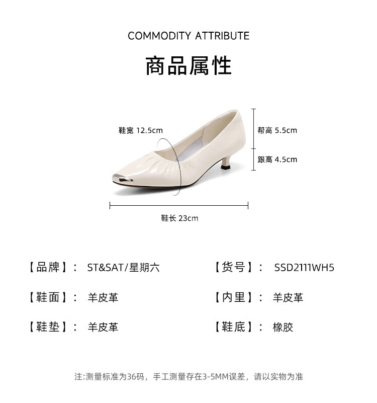 星期六摩登时尚方头高跟鞋2025夏季新款百搭通勤OL女鞋MTSSD2111WH5 米白 35