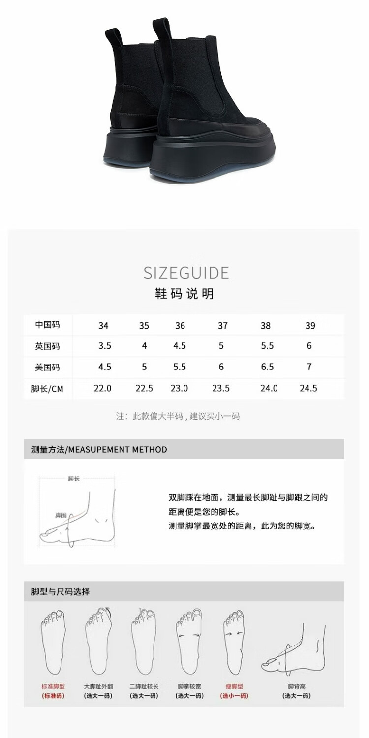 热风厚底时装靴女2025年冬季新款百搭瘦瘦靴小个子增高短靴子女鞋 01黑色 35