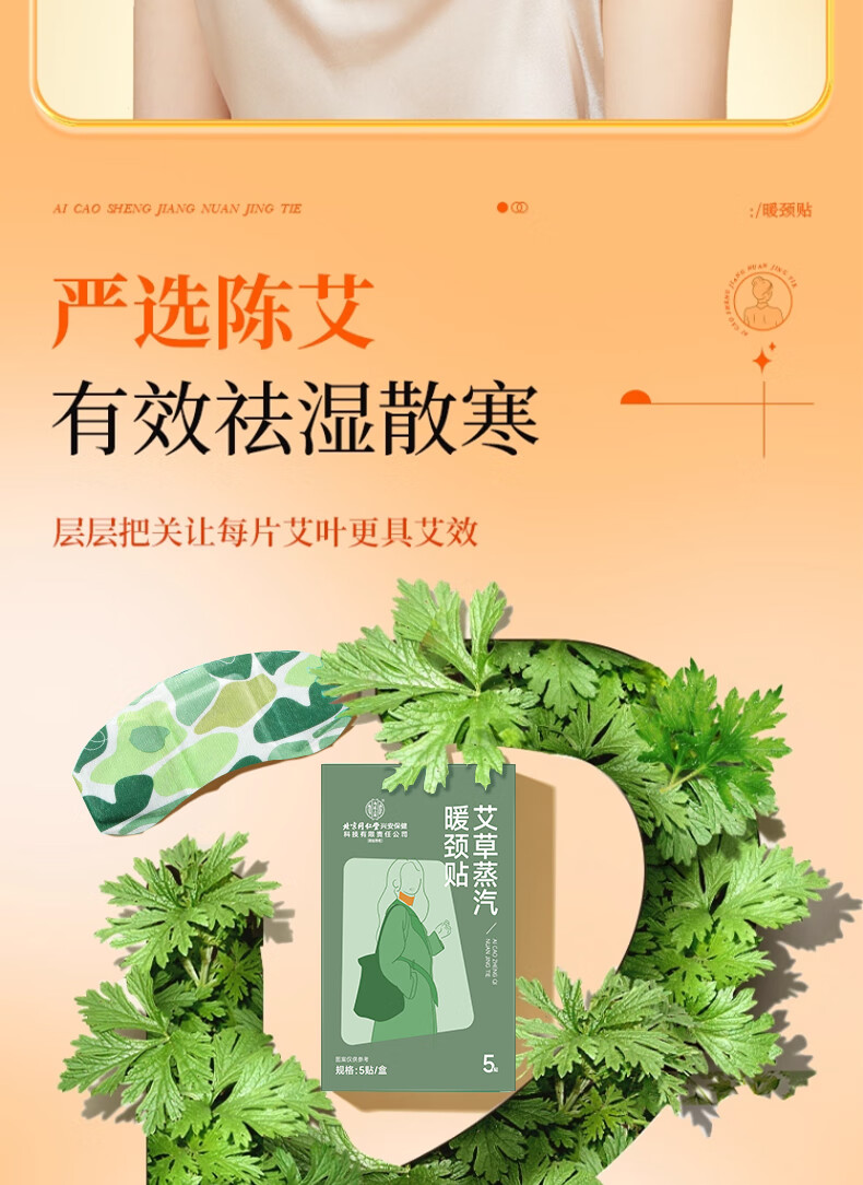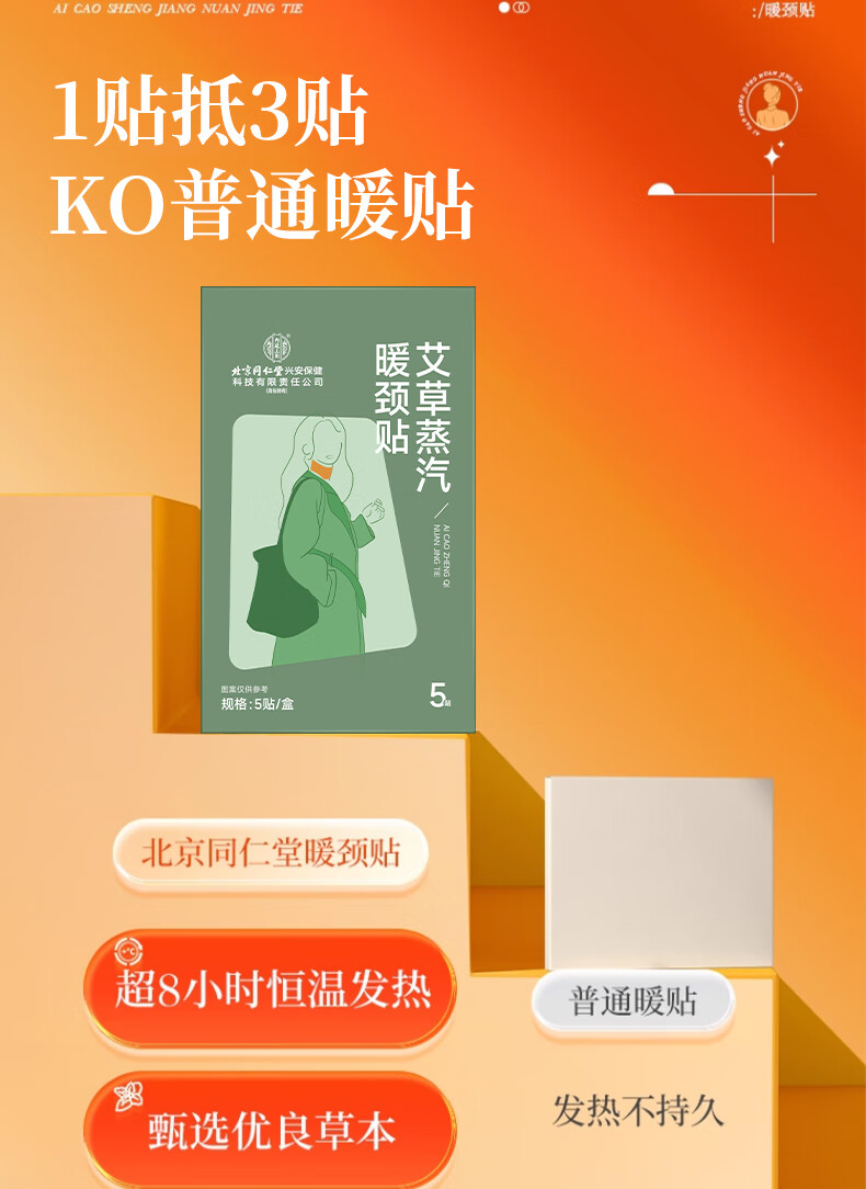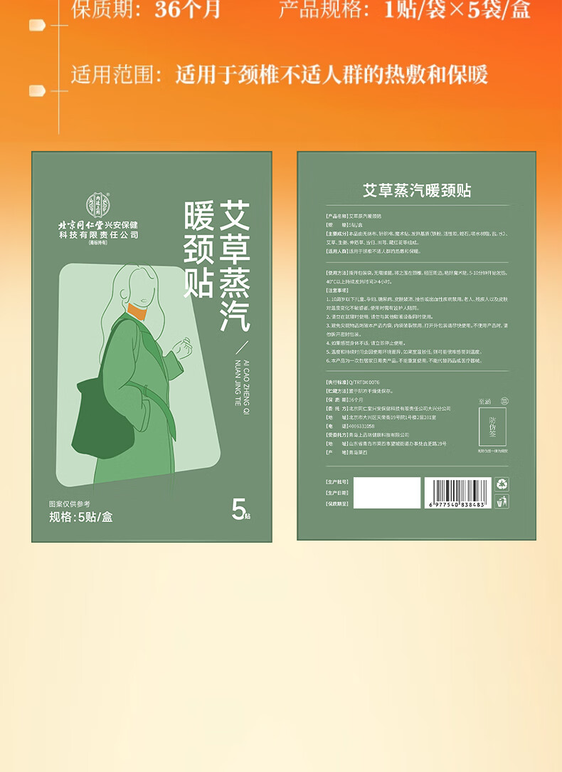 内廷上用北京同仁堂艾草蒸汽暖颈贴热敷办公室舒缓颈椎神器自发热保暖脖颈 体验装【1盒装-共5贴】
