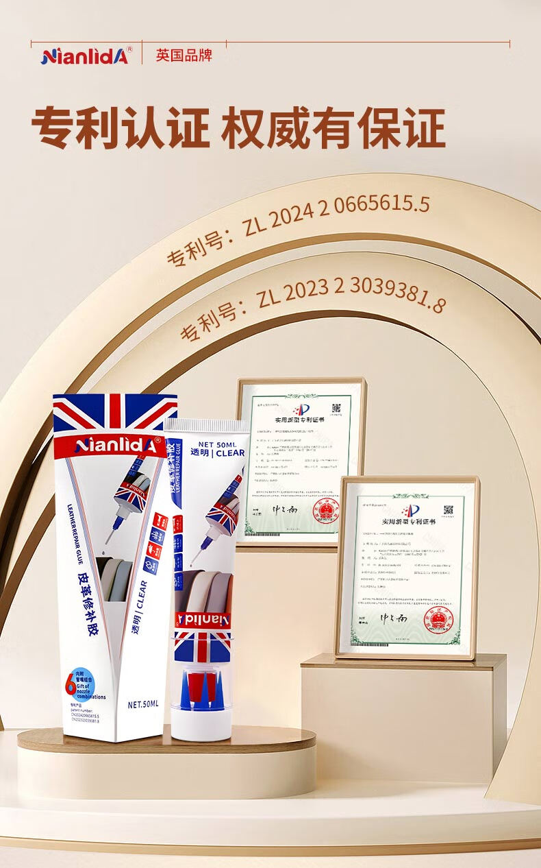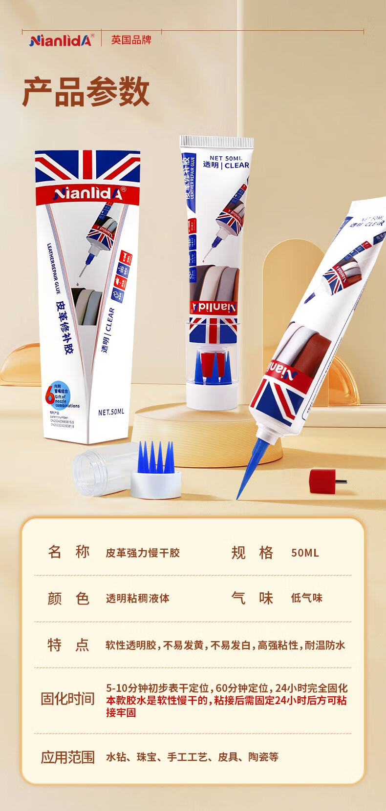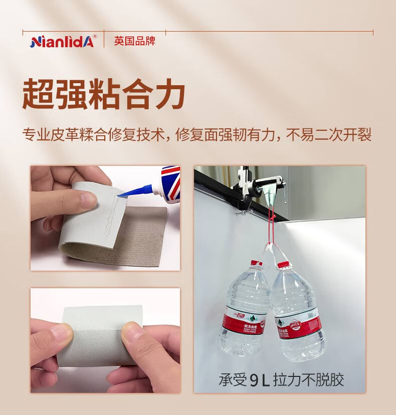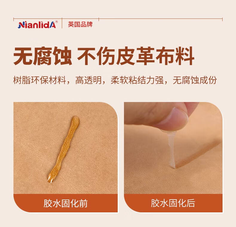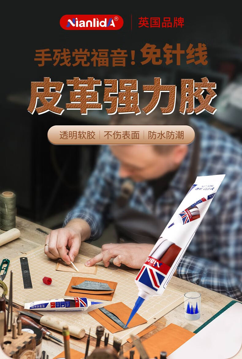 NianlidA【英国品牌】皮革专用胶水强力软胶水修复皮具皮衣带汽车座椅修补透明耐水洗不伤粘皮包万能胶水 新升级【粘力强不伤皮】皮革专用胶50ml