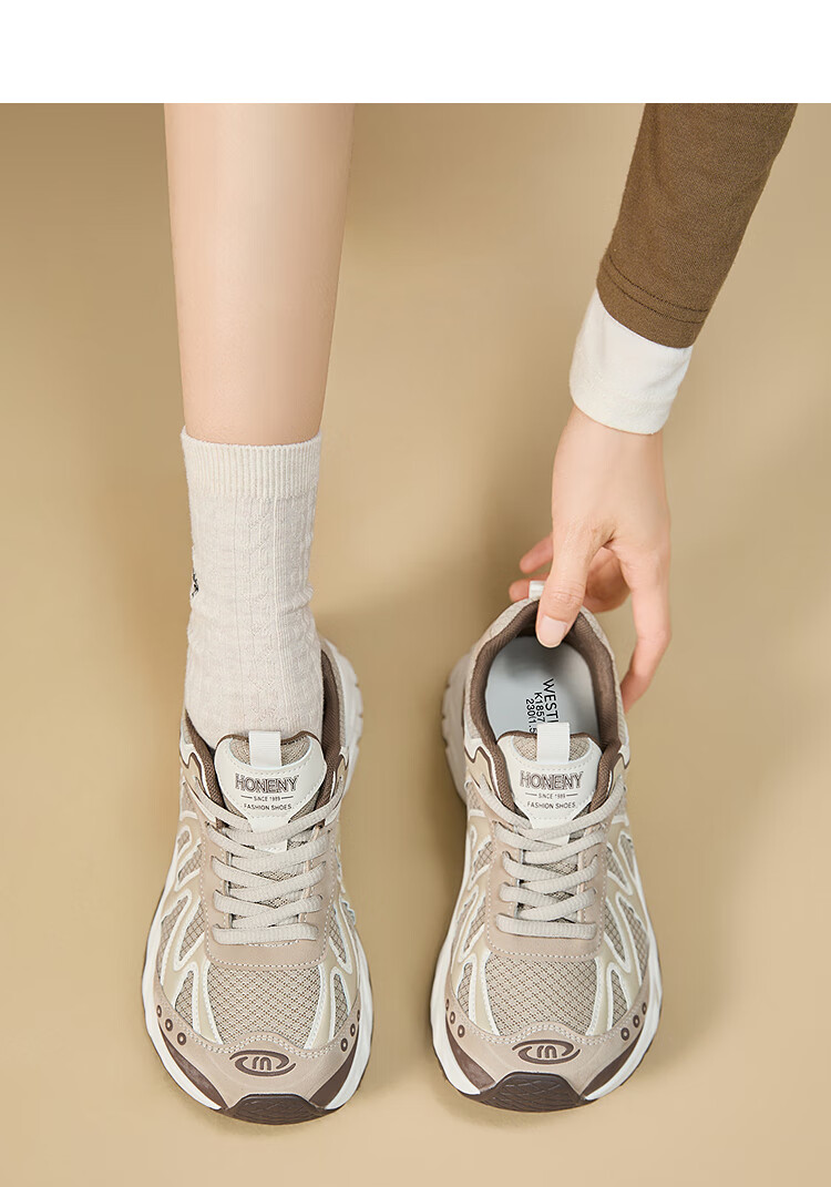 西遇厚底老爹鞋女2025新款秋季户外休闲鞋子轻便增高运动鞋 卡色 37 (235)