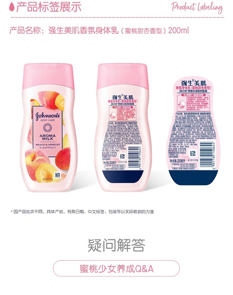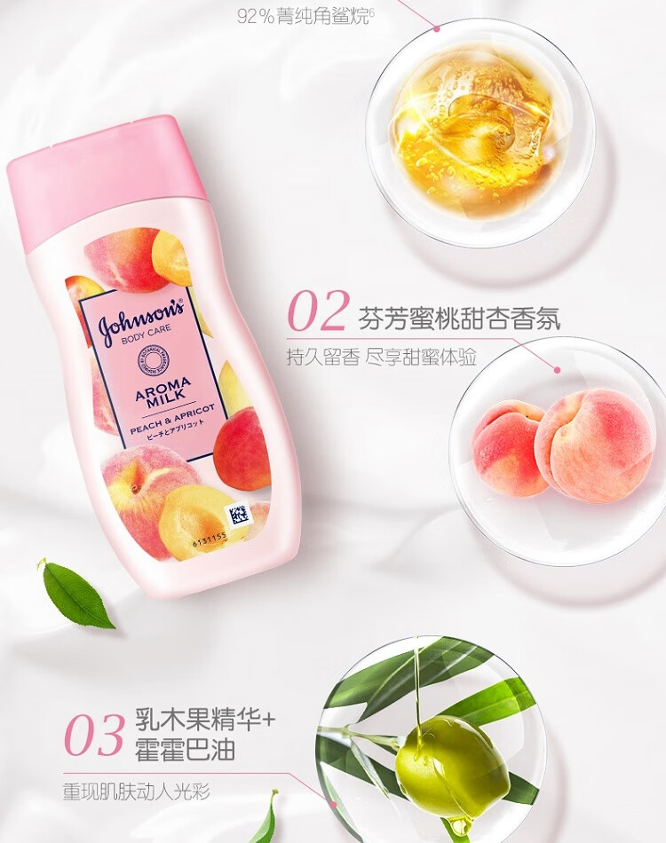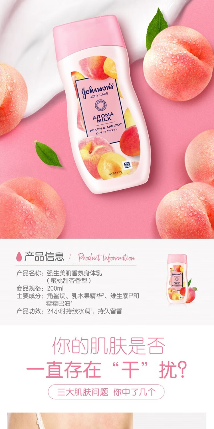 强生美肌香氛身体乳水嫩保湿滋润润肤乳(蜜桃甜杏香型)200ml【临期清仓】