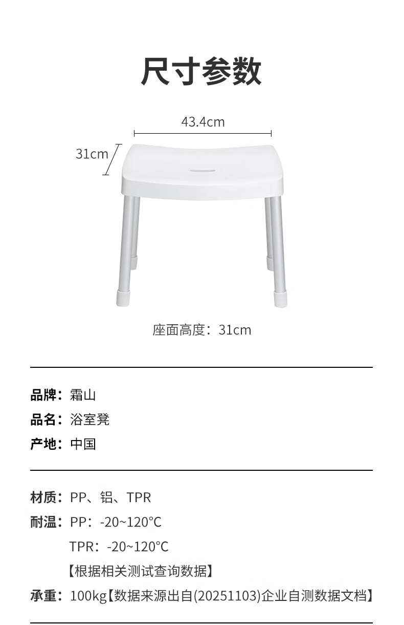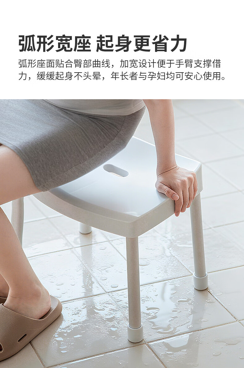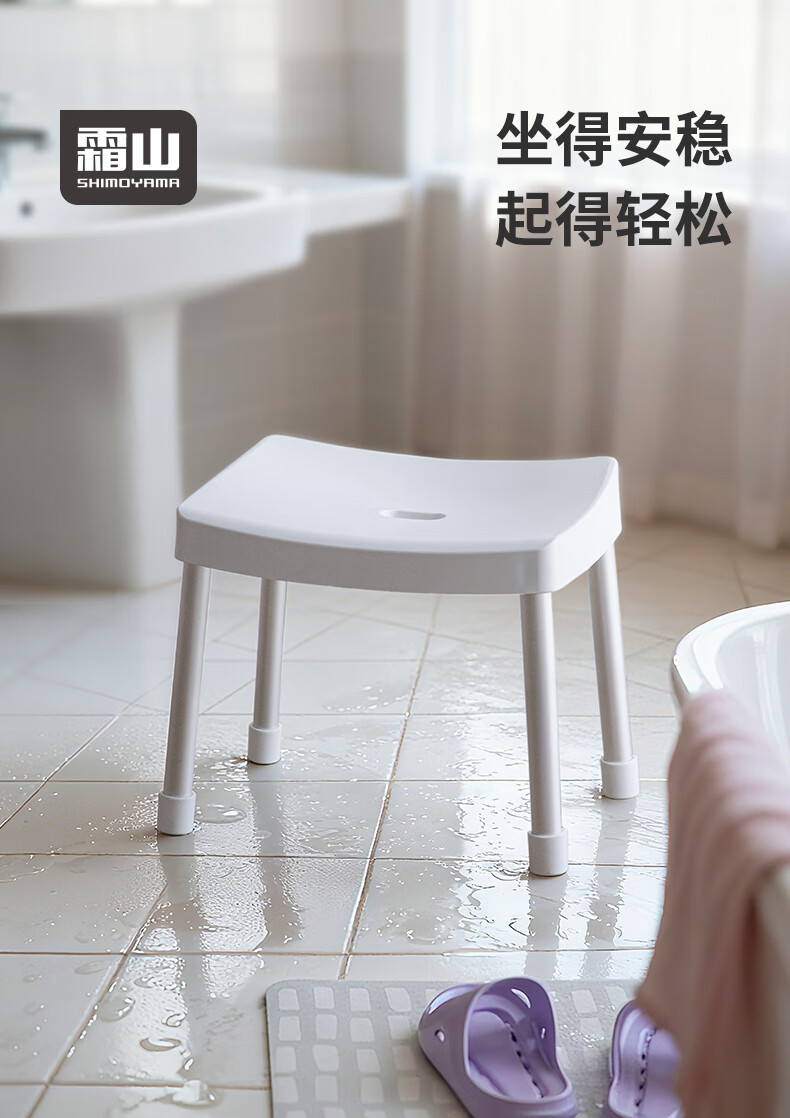 霜山塑料凳子家用防滑坐浴凳弧形宽面矮凳简约加厚浴室洗澡专用凳 【承重100kg】高31cm