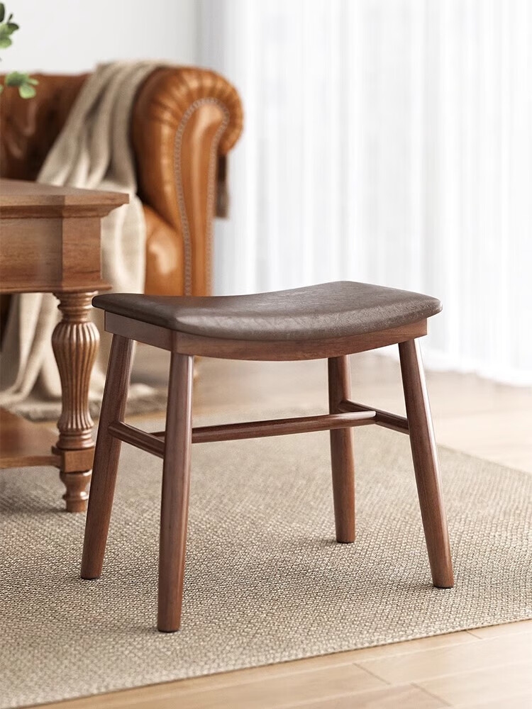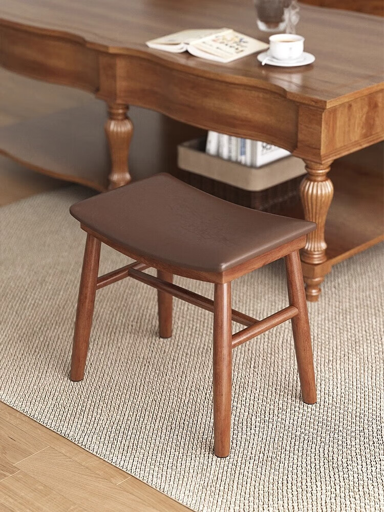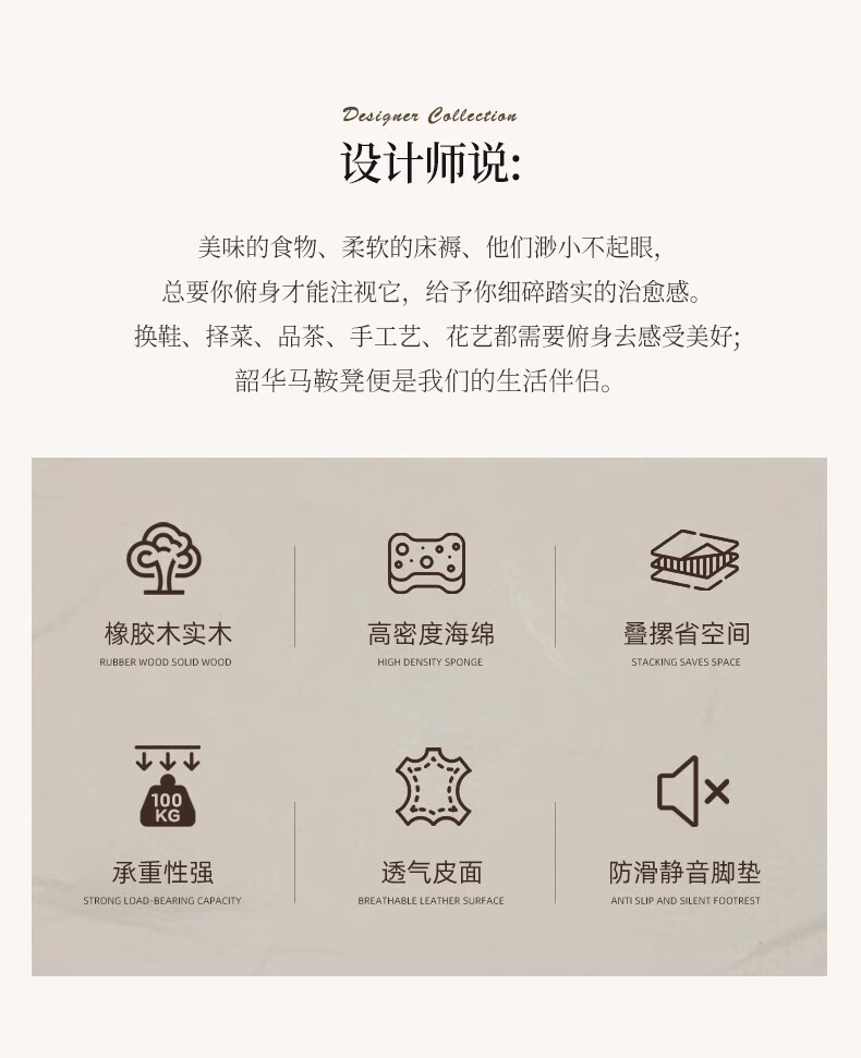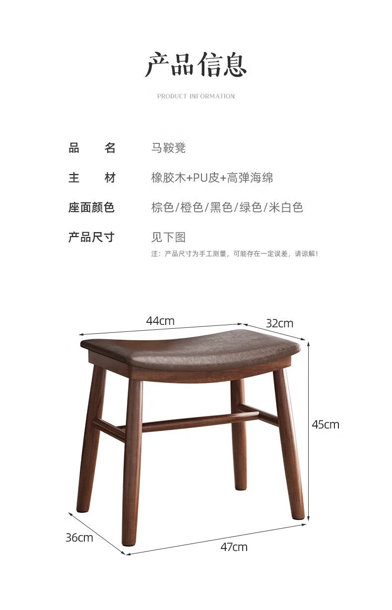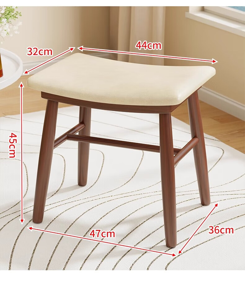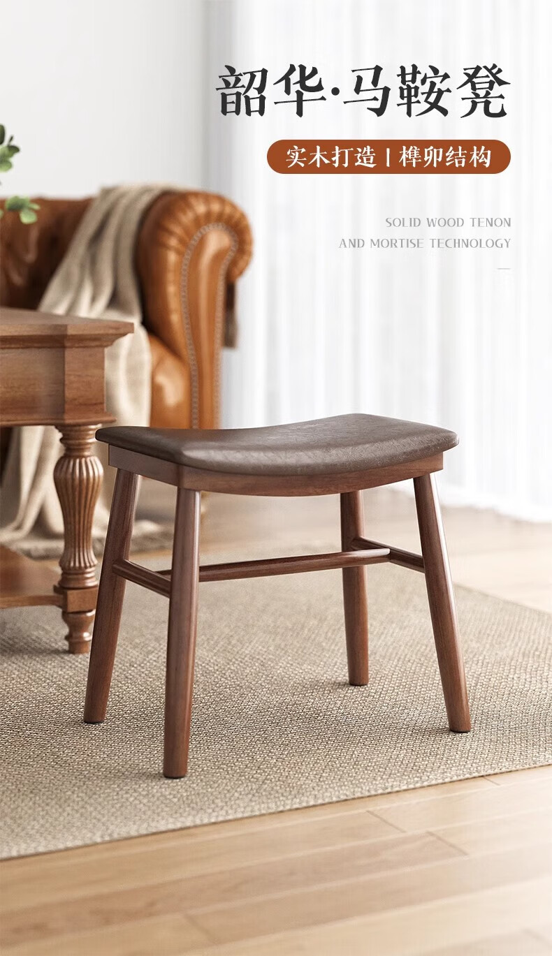 木格格马鞍凳实木凳子家用加厚结实客厅高级感小板凳餐桌凳长条凳化妆凳 马鞍凳-米白【全实木-整装】