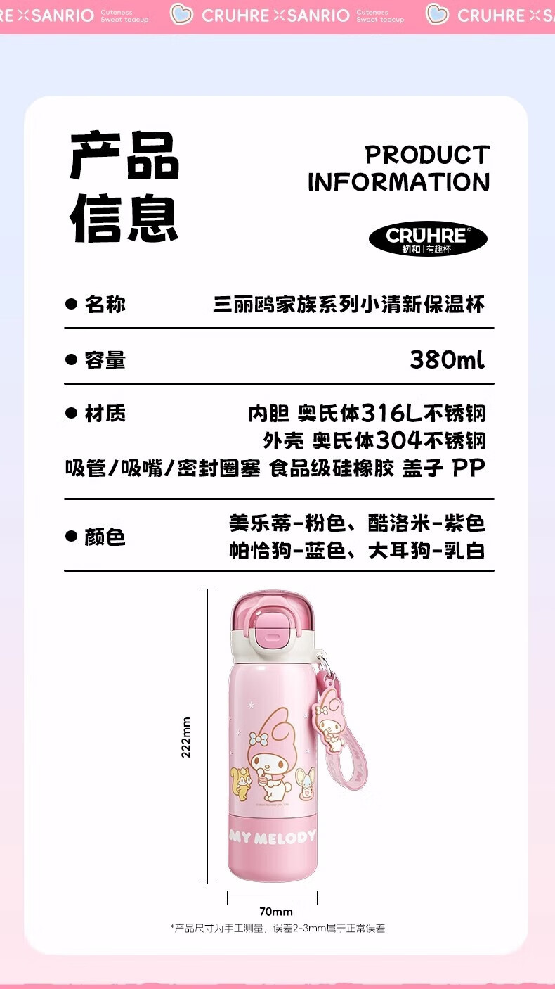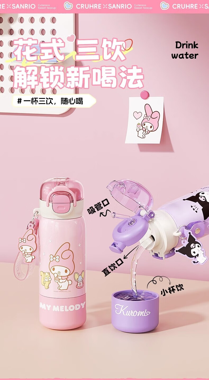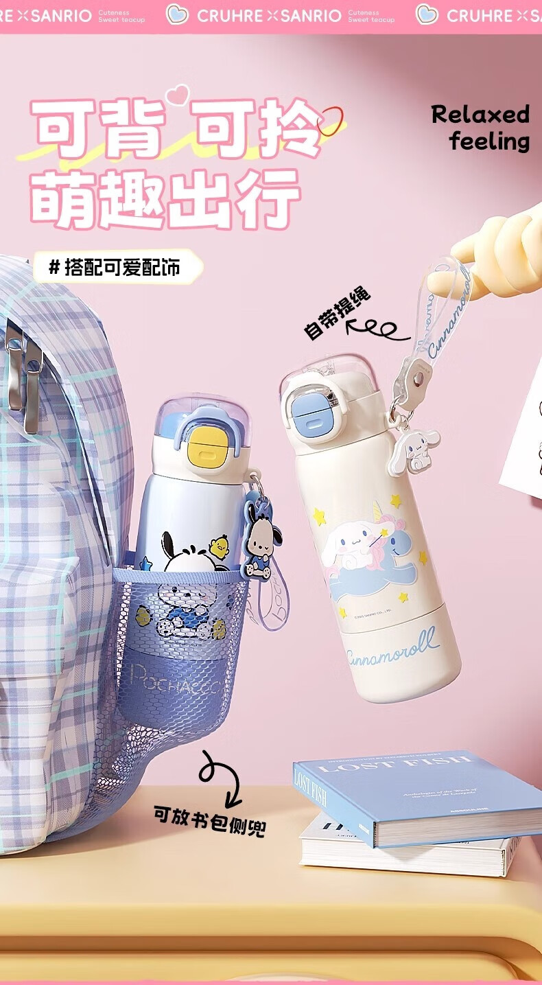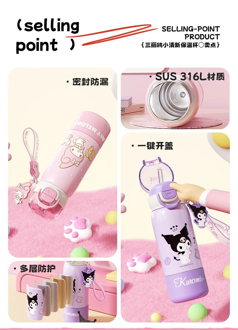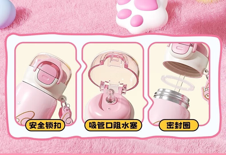 DEATKN德国儿童保温杯女孩2025新款小学生上学专用一年级放书包双饮 服务 380ml