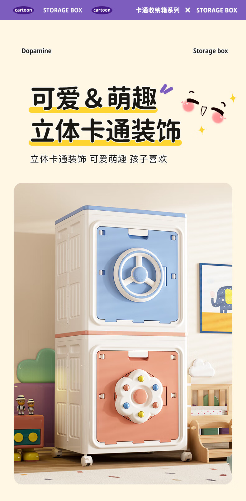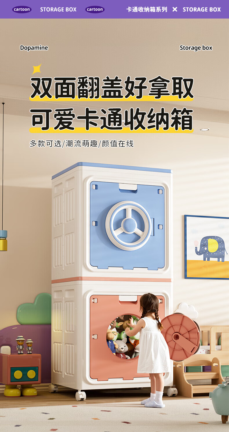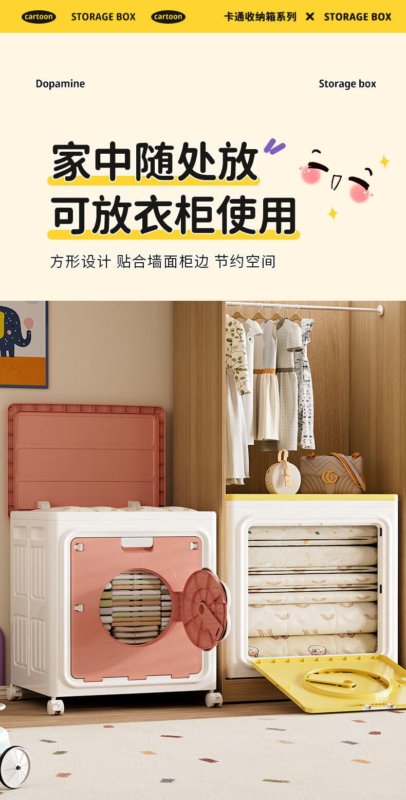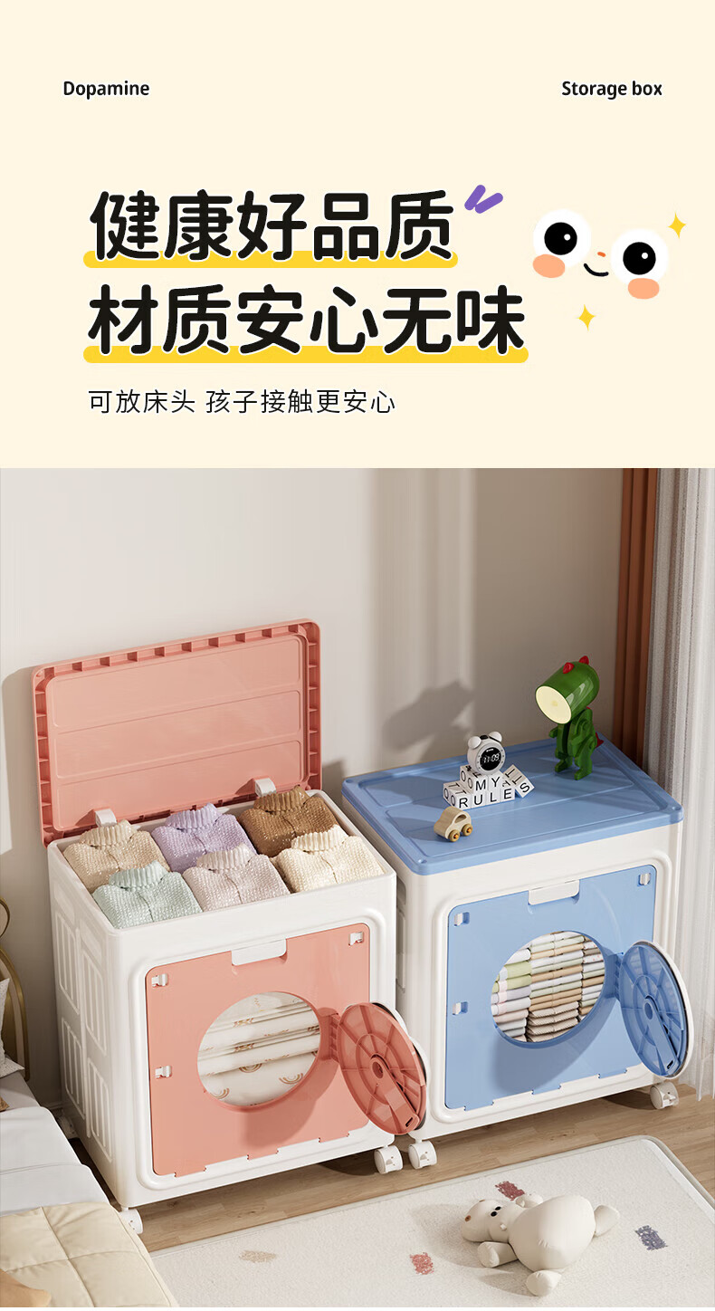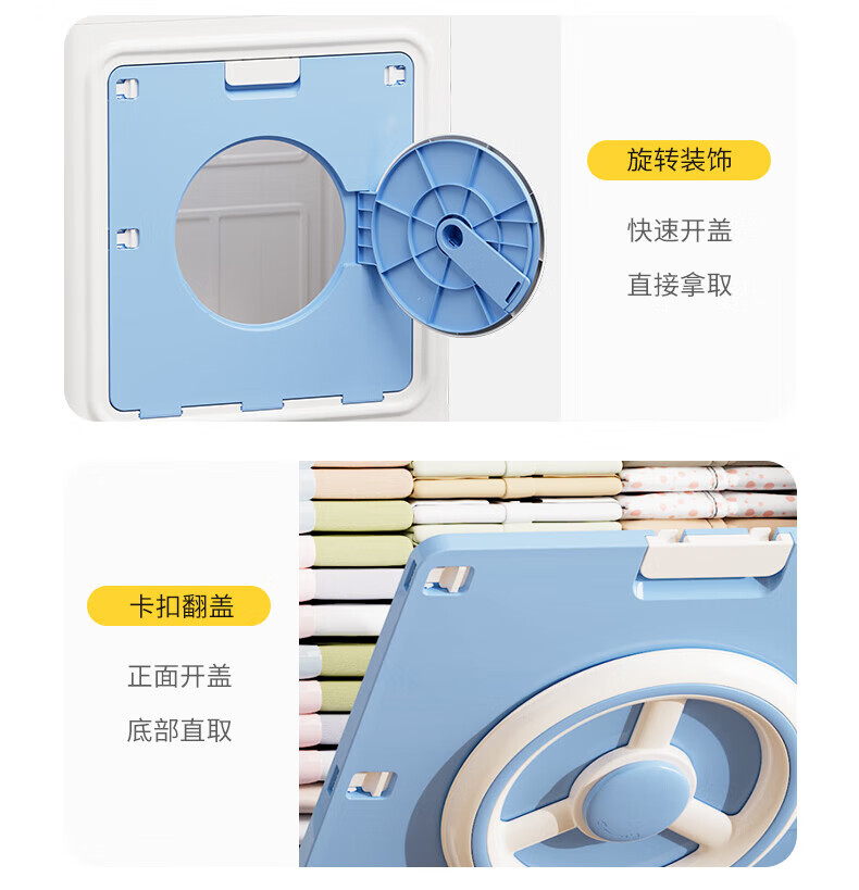 纳份爱衣服收纳箱特大号家用带滑轮可折叠翻盖整理箱换季衣物被子储物柜 165L天空蓝旋转舱三开门-单个装 【稳固叠加/容纳万物】