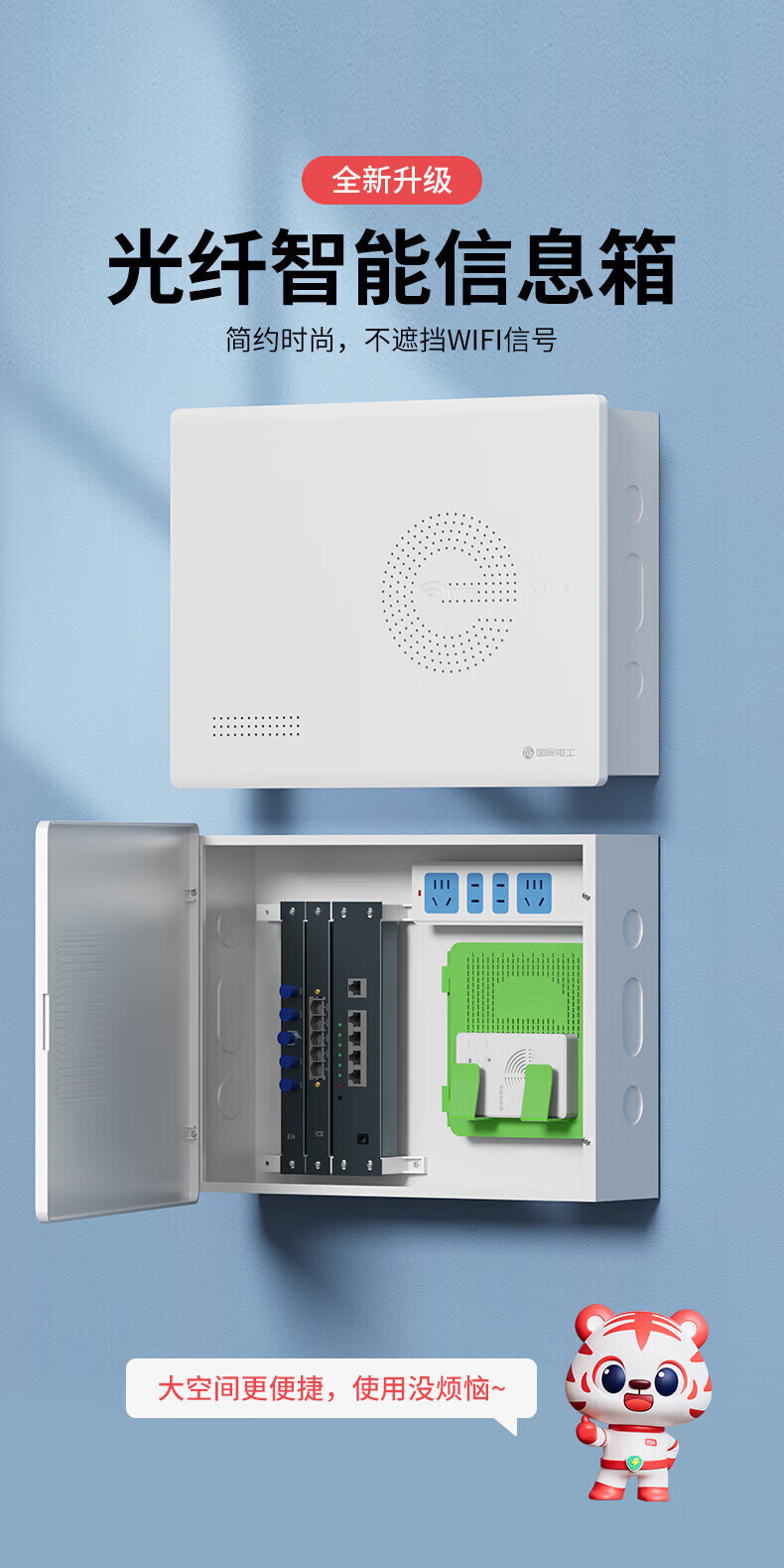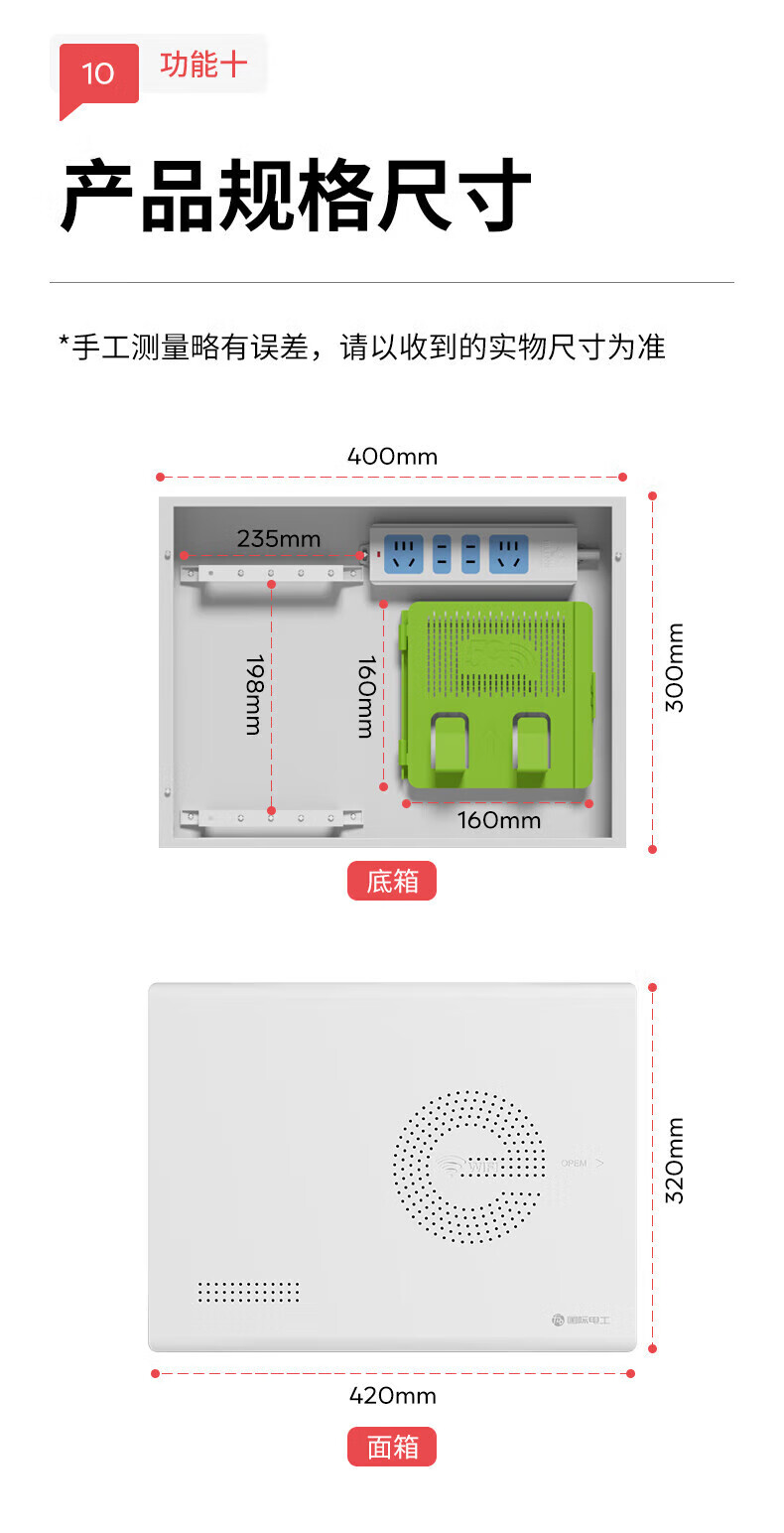 国际电工弱电箱家用盖板多媒体入户信息箱网络布线箱工地空箱塑料门大空间 普通空箱+模块架