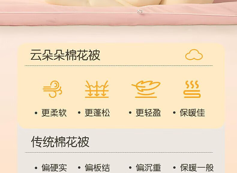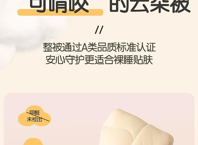 百丽丝被子a类新疆棉花抗菌被子四季被冬季被子抗菌 云朵朵棉花抗菌冬被(奶油粉) 200cm×230cm