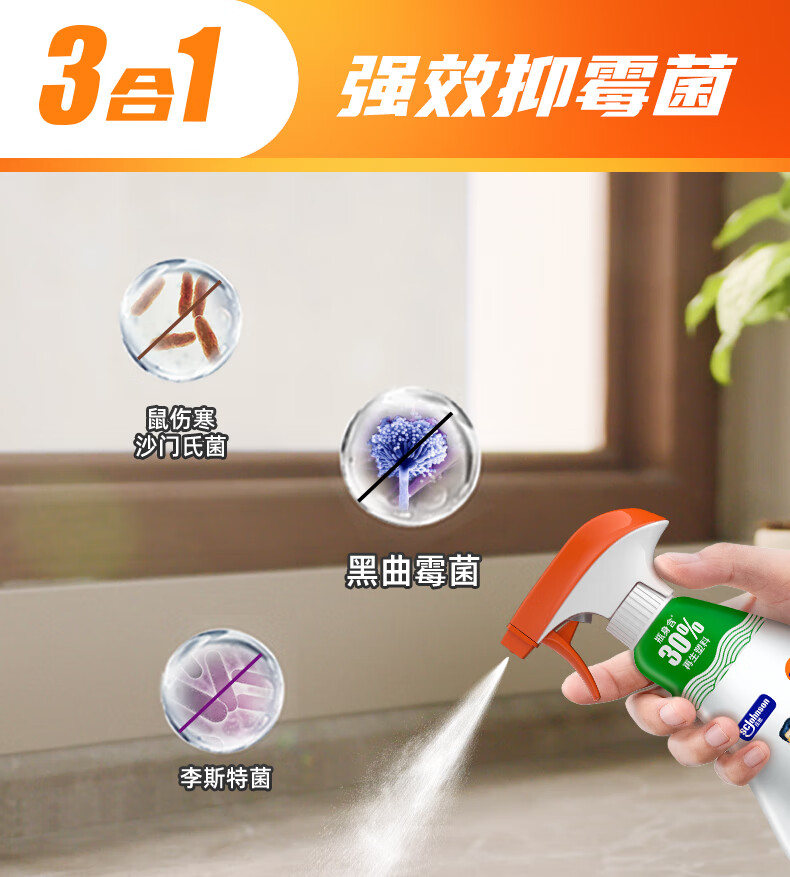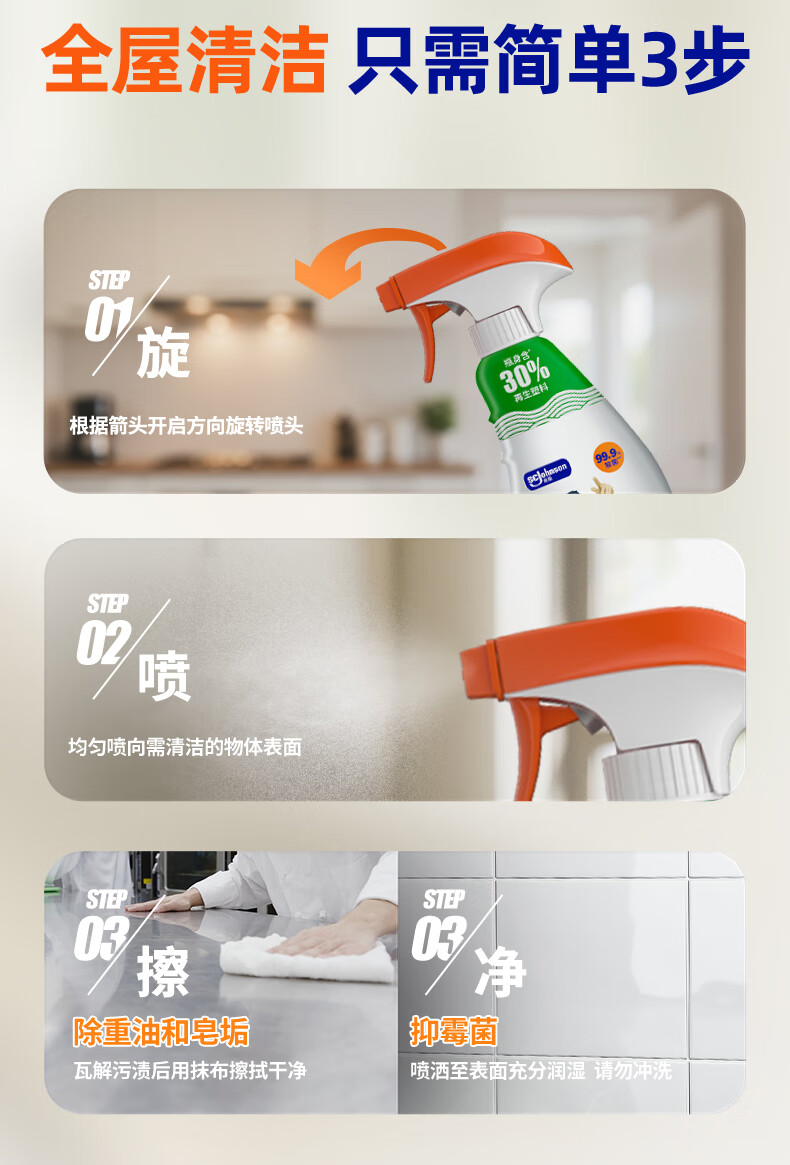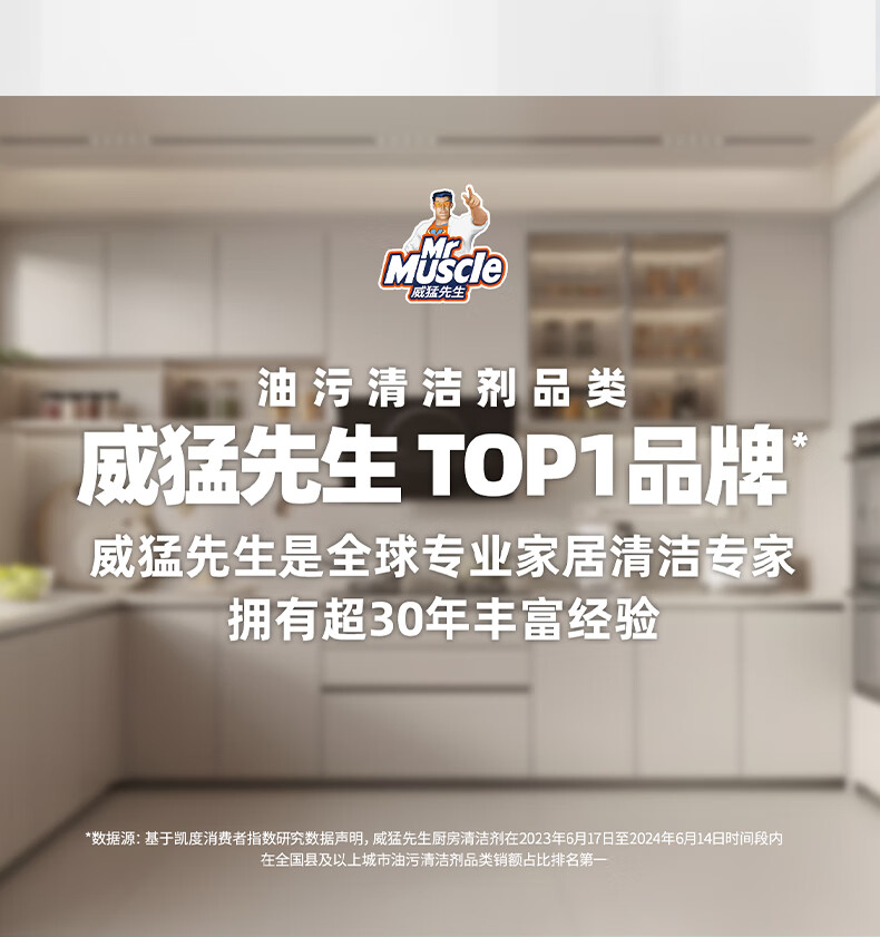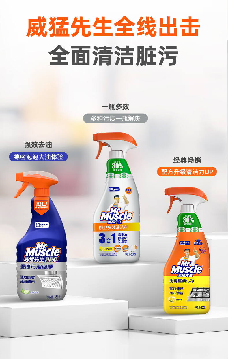 威猛先生(Mr Muscle)厨卫三合一去油污抑霉菌除皂垢多功能清洁剂 500g*3瓶 元气柠檬