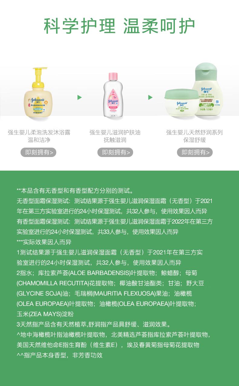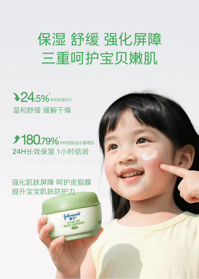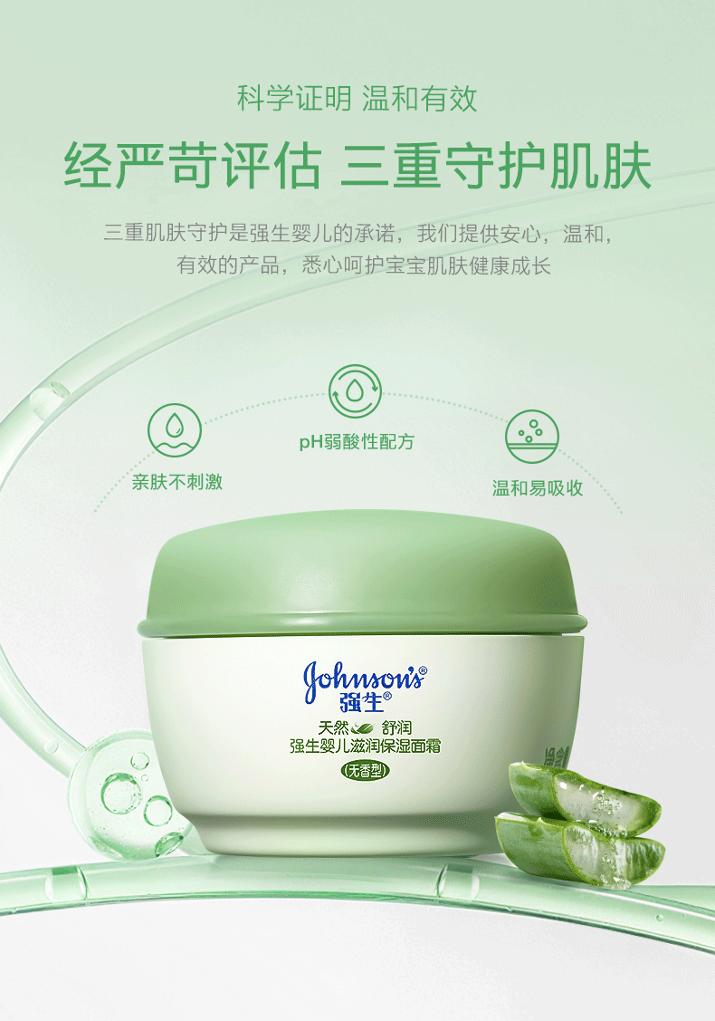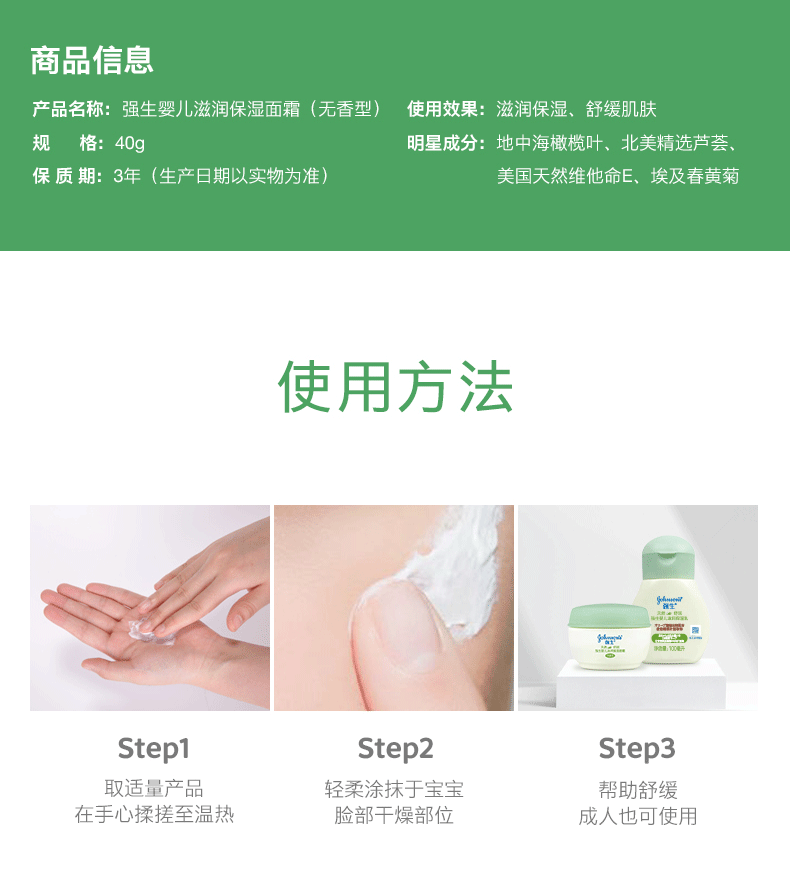 强生(Johnson)婴儿天然舒润保湿面霜40g*2无香新生儿宝宝保湿润肤乳补水防干红