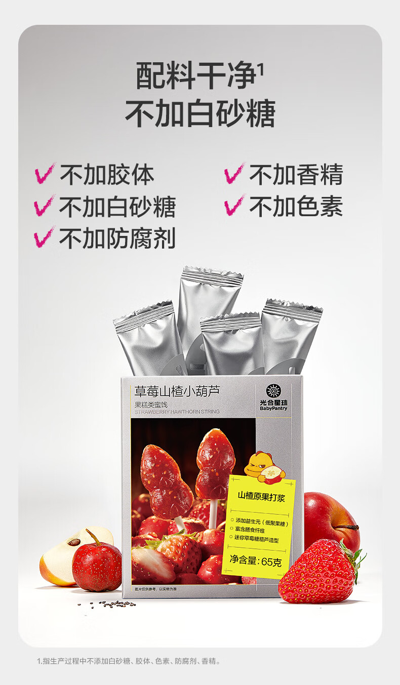 光合星球babycare益生元草莓山楂小葫芦儿童零食糖葫芦3岁+新鲜果干65g