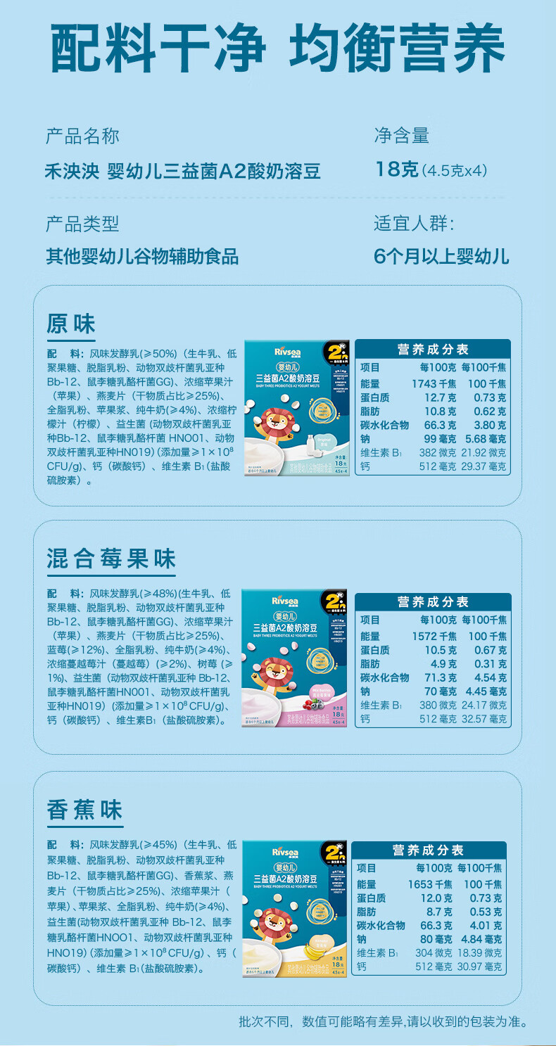 禾泱泱婴幼儿A2益生菌酸奶溶豆 无添加白砂糖 6个月以上婴儿零食溶溶豆 三益菌A2酸奶溶豆-原味/13.5g