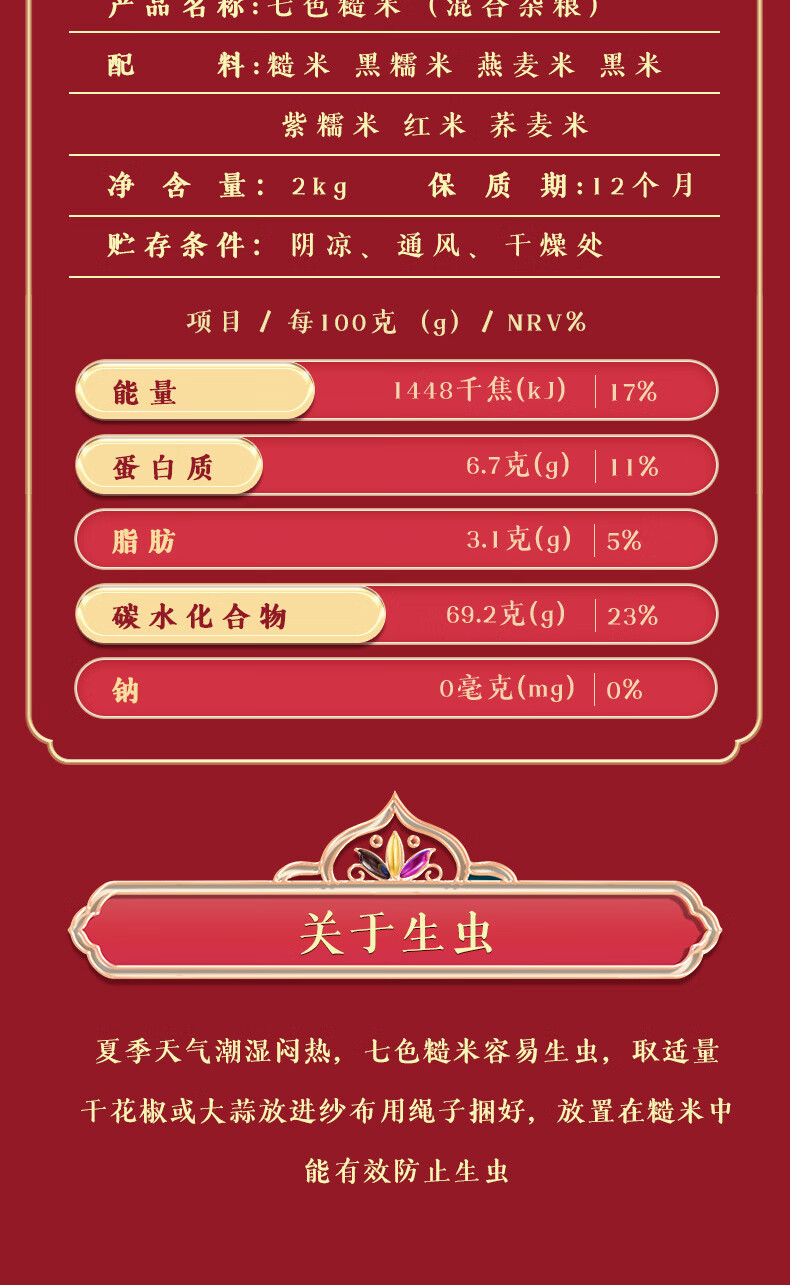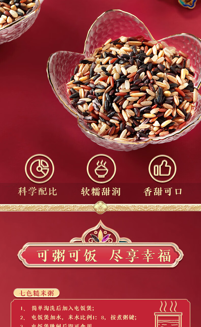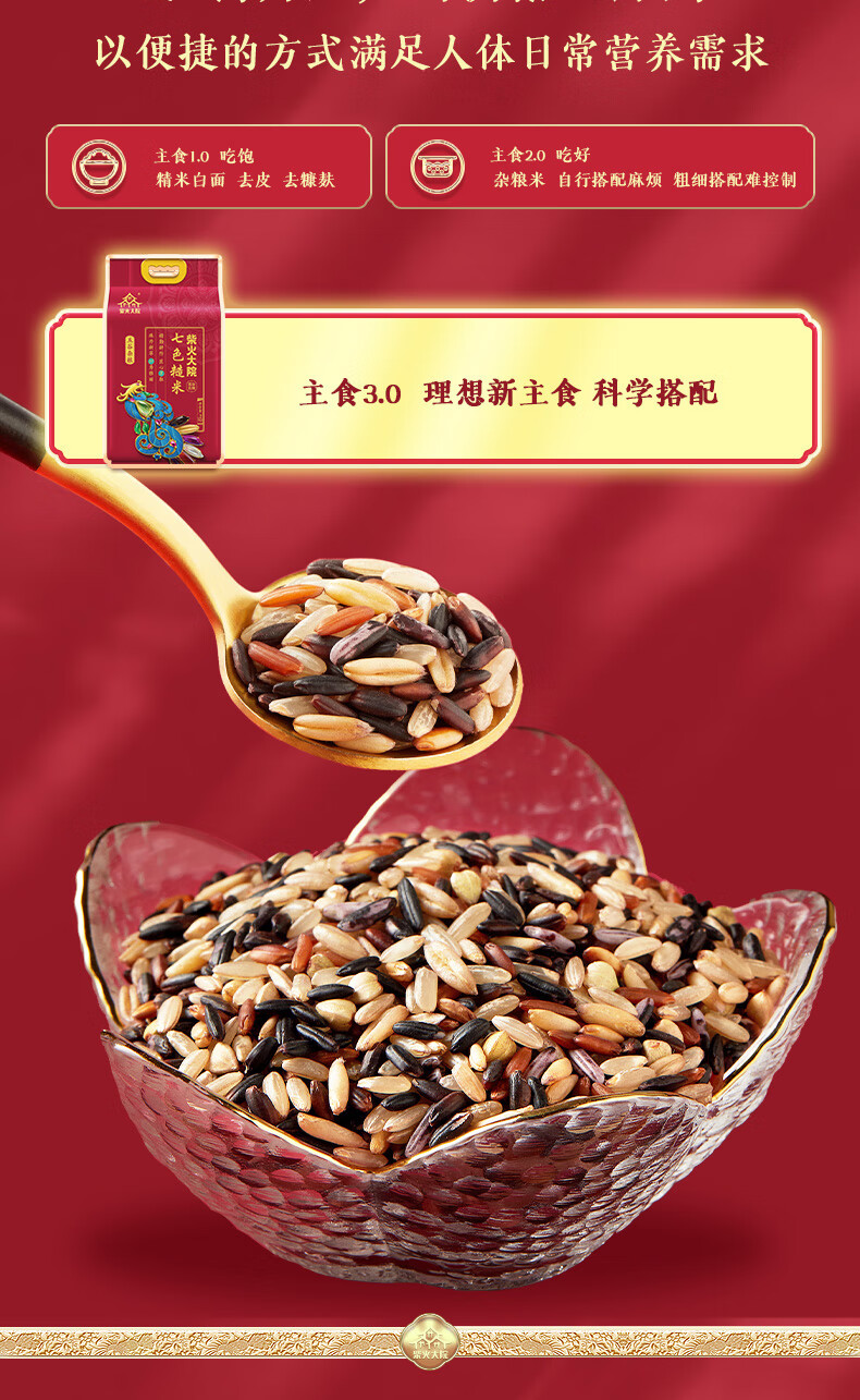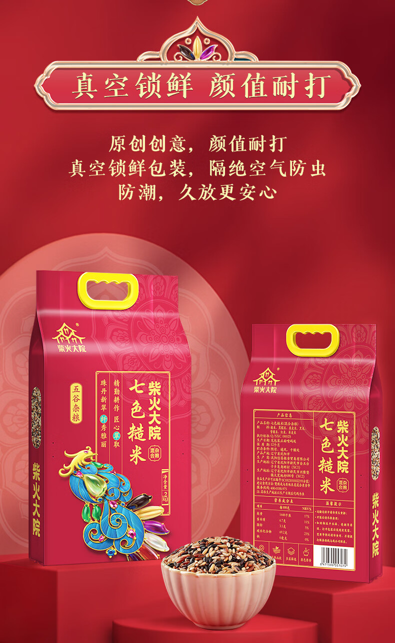 柴火大院七色糙米2kg混合杂粮糙米黑糯米燕麦米黑米紫糯米红米荞麦米 团购 2kg