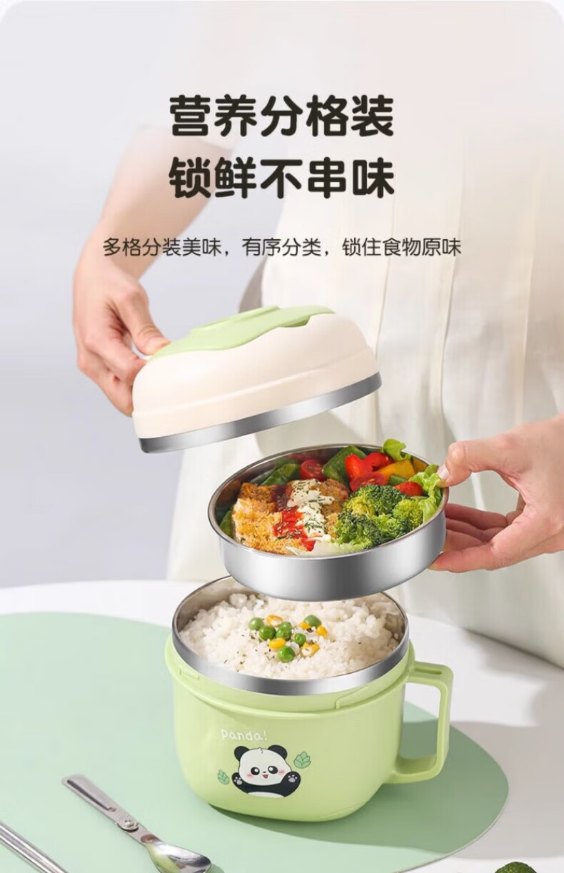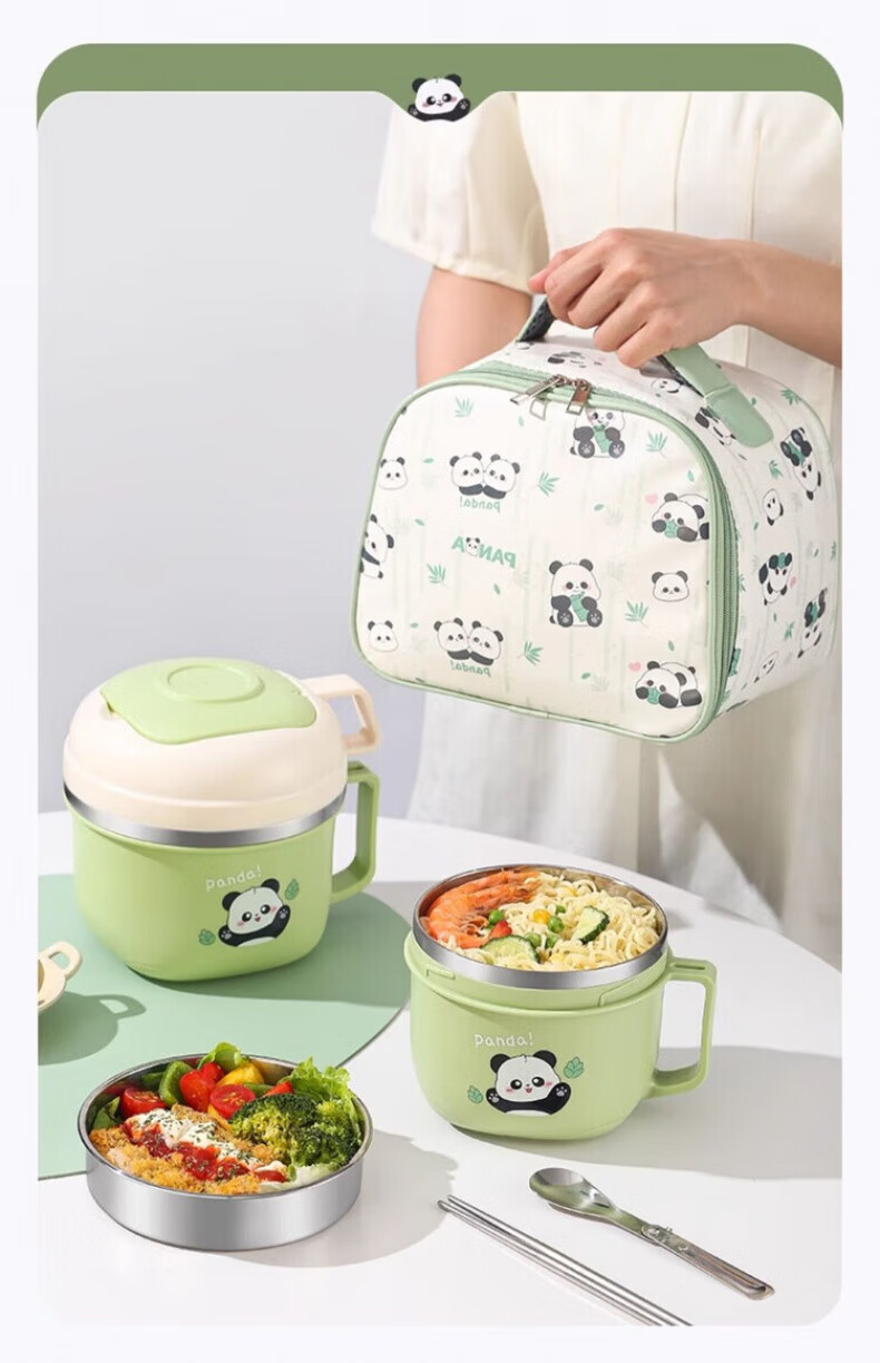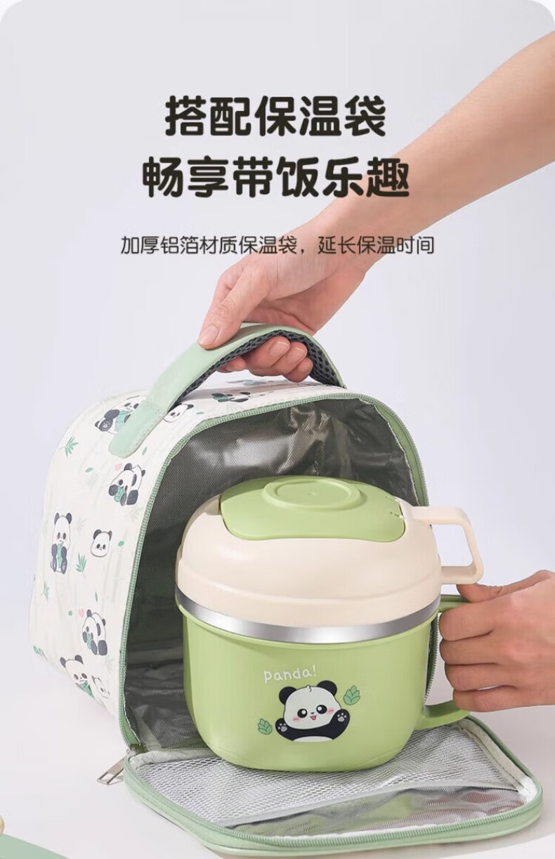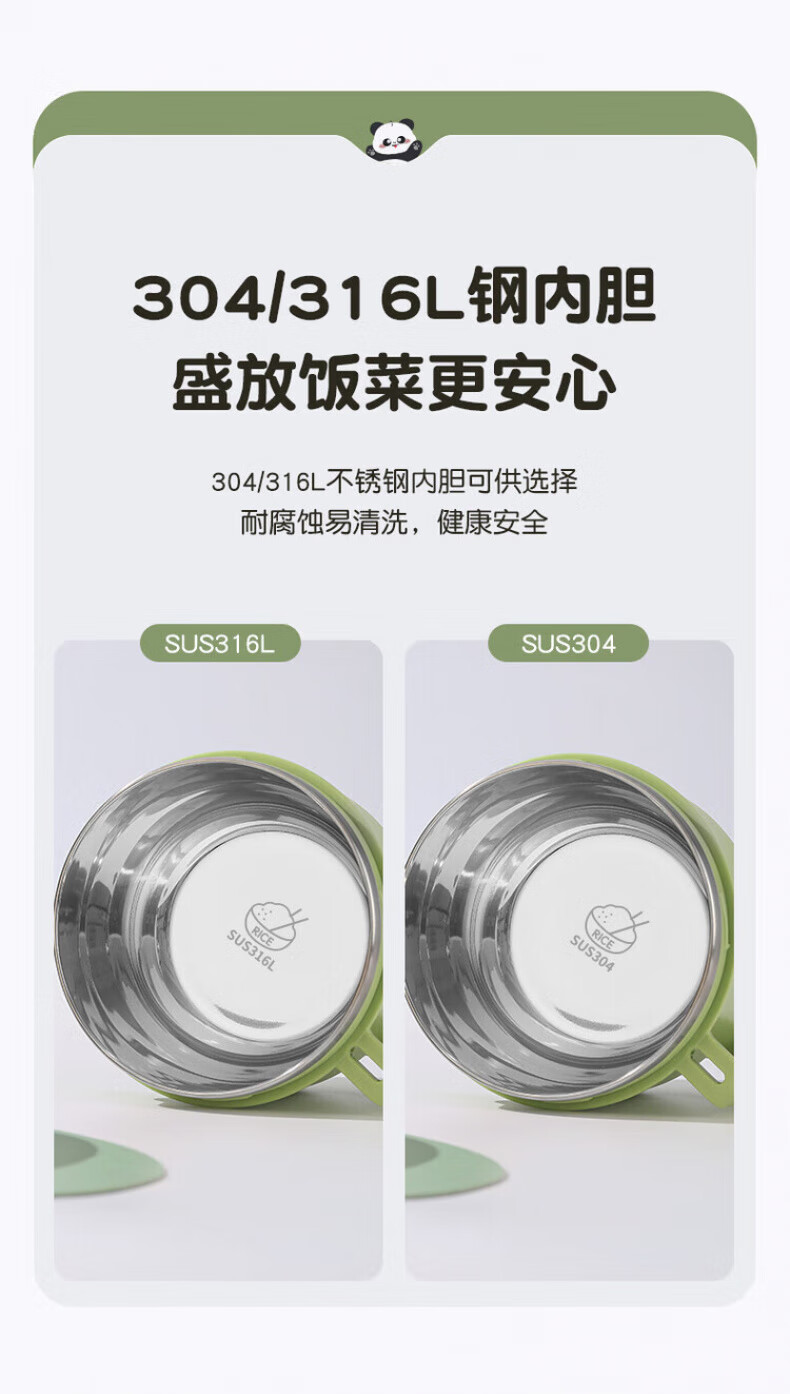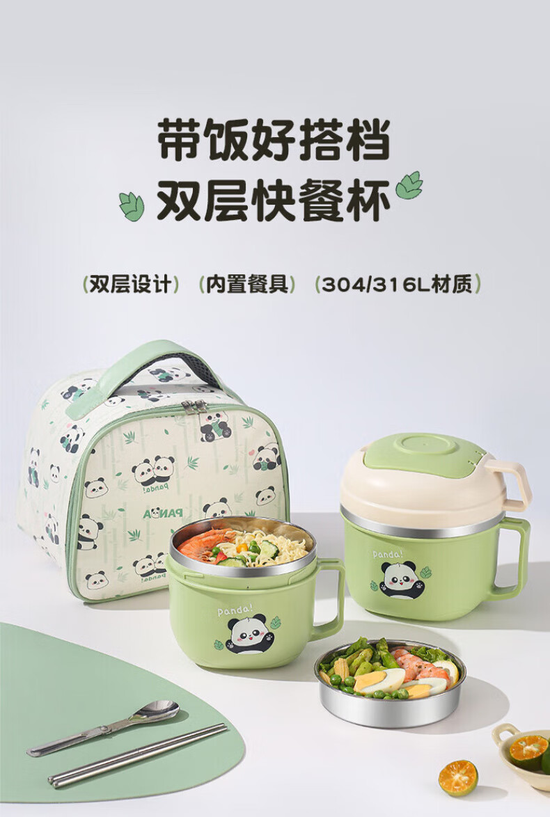 DEATKN德国316L不锈钢保温饭盒上班族2025新款初中小学生上学儿童食堂打 【适用1-6年级】小号熊猫+餐具【316钢】.