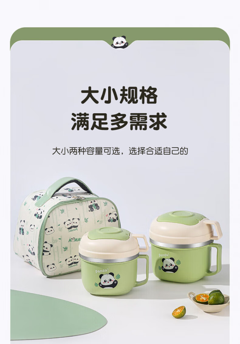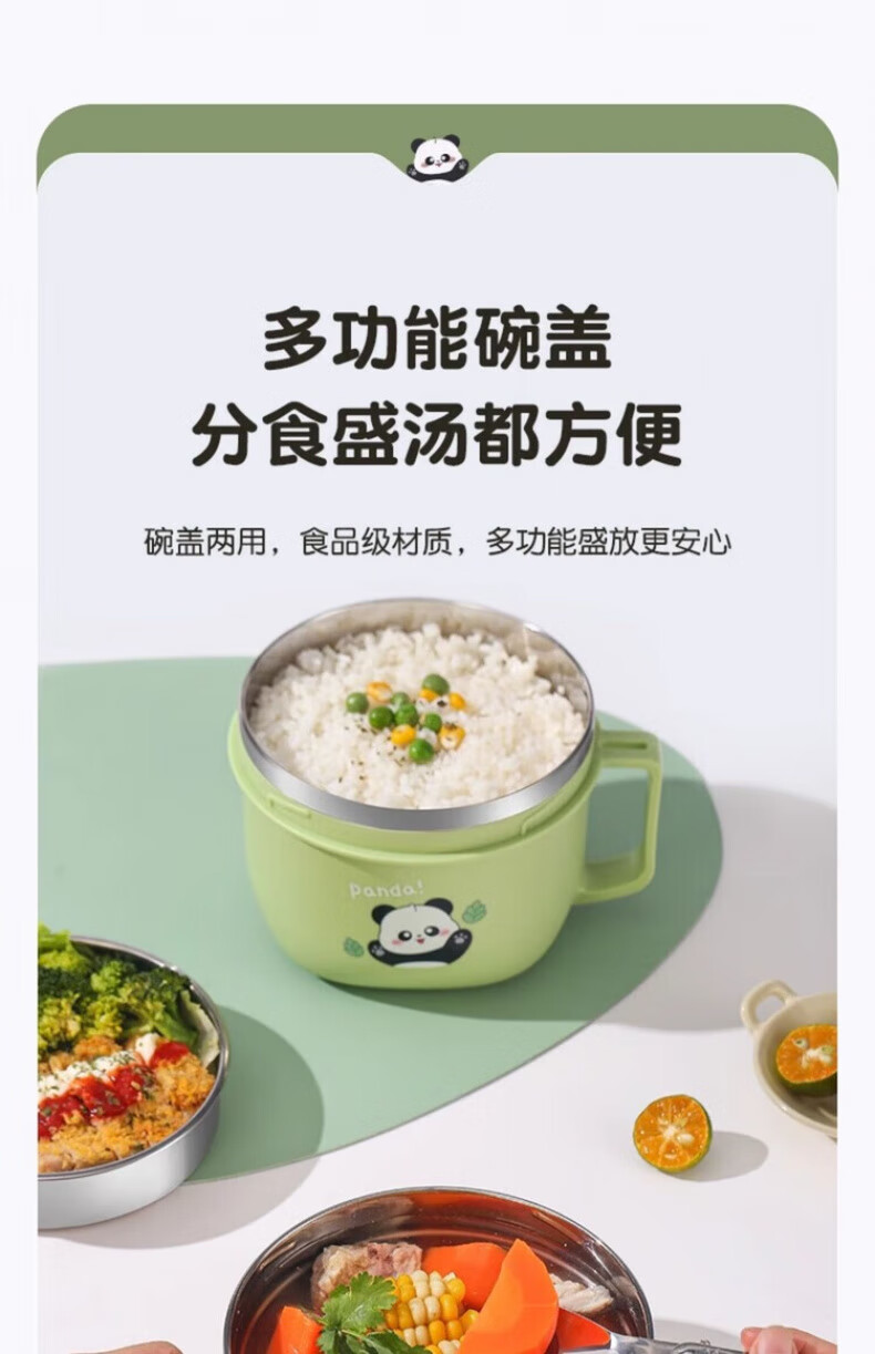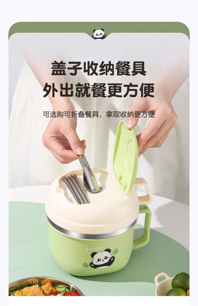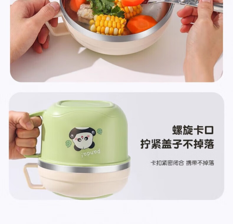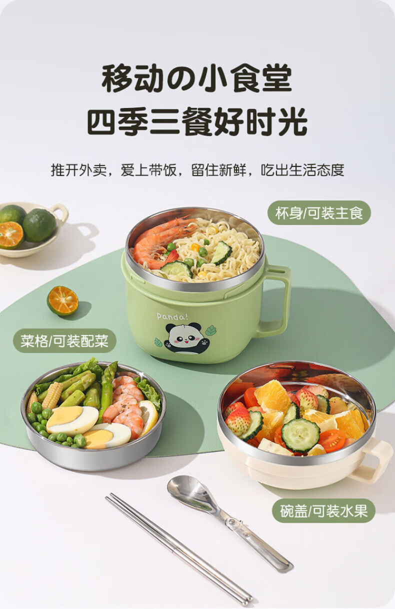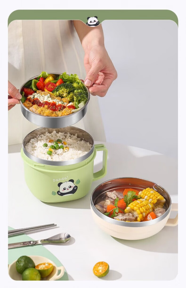 DEATKN德国316L不锈钢保温饭盒上班族2025新款初中小学生上学儿童食堂打 【适用1-6年级】小号熊猫+餐具【316钢】.