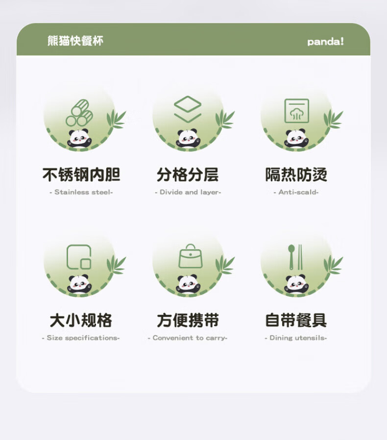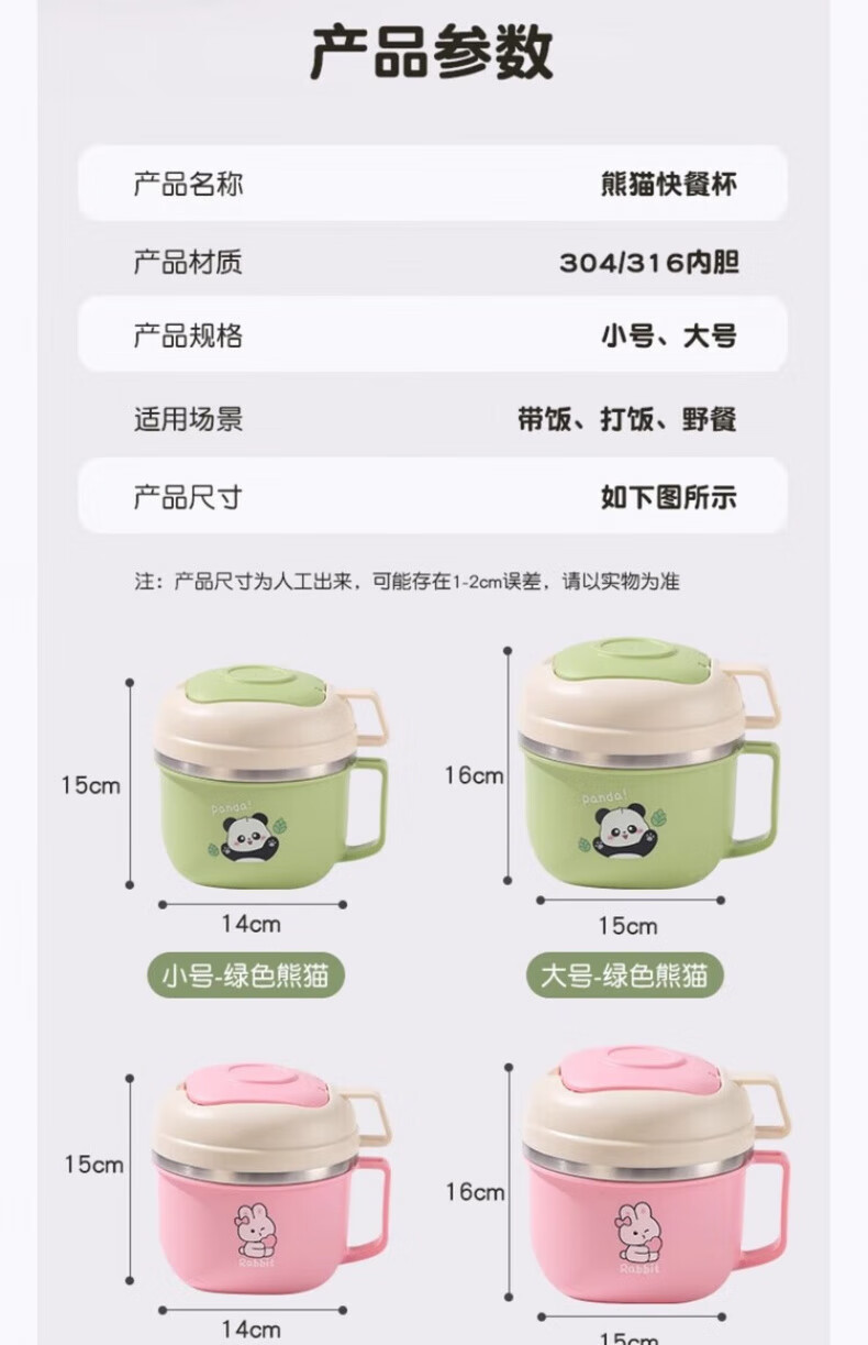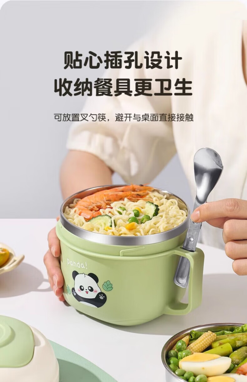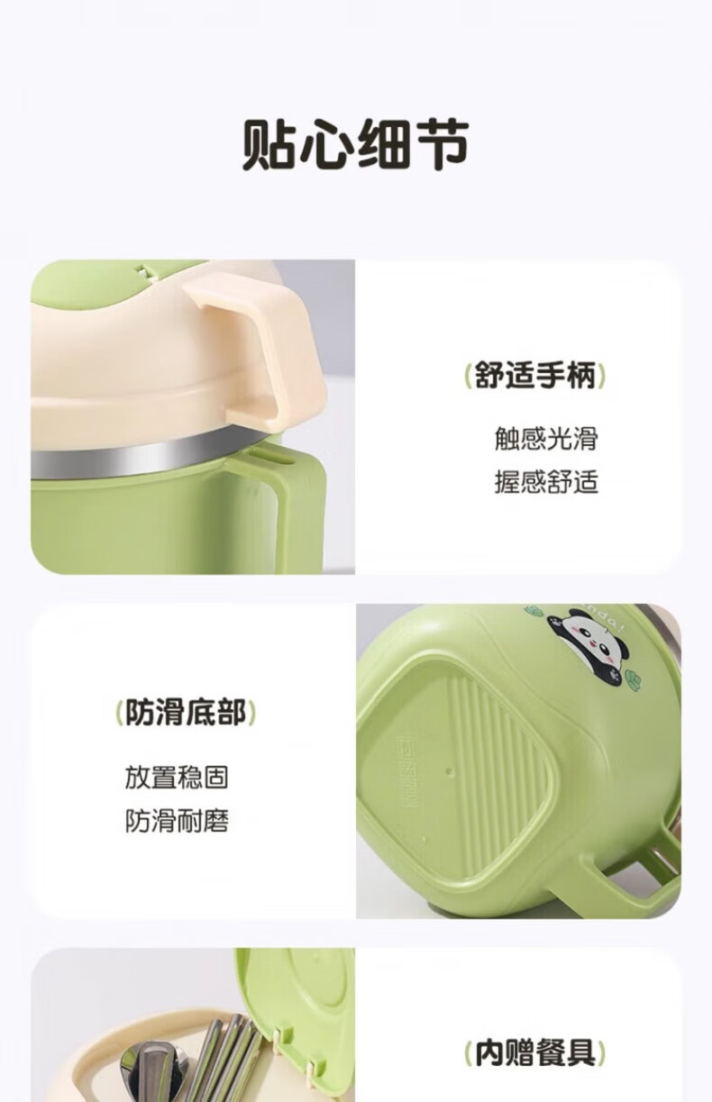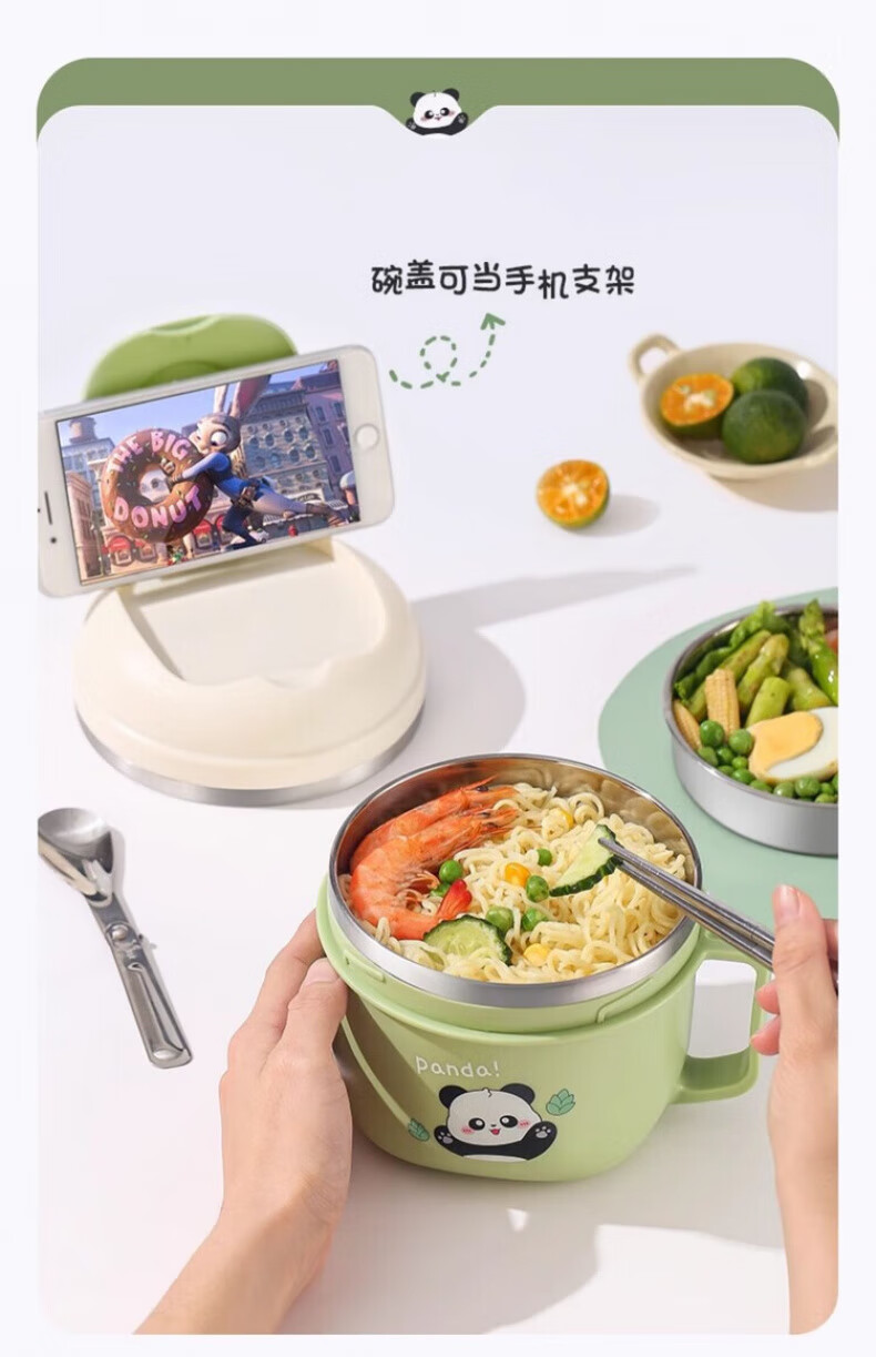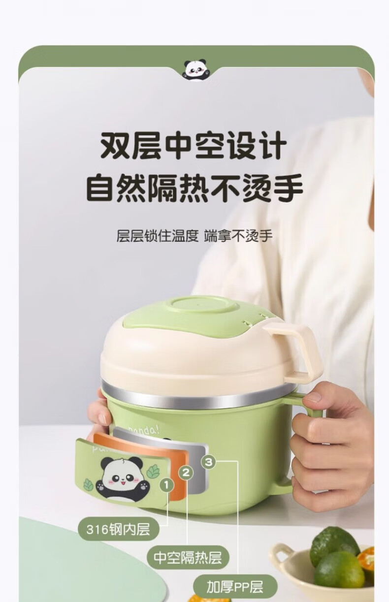 DEATKN德国316L不锈钢保温饭盒上班族2025新款初中小学生上学儿童食堂打 【适用1-6年级】小号熊猫+餐具【316钢】.