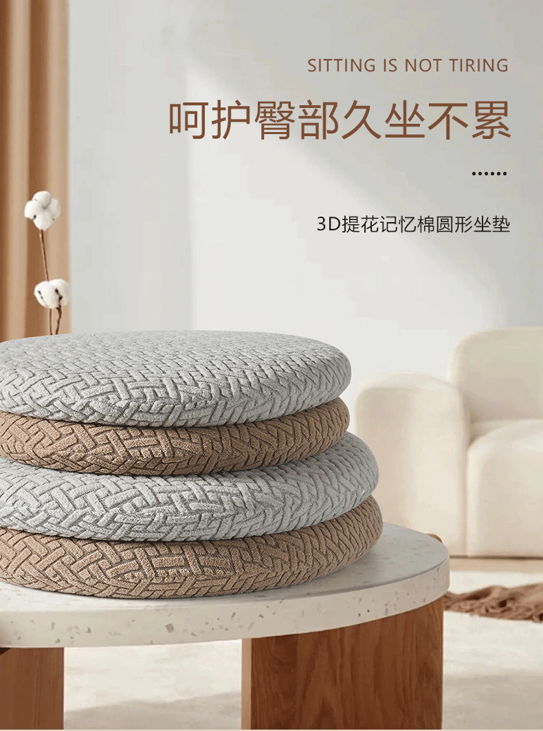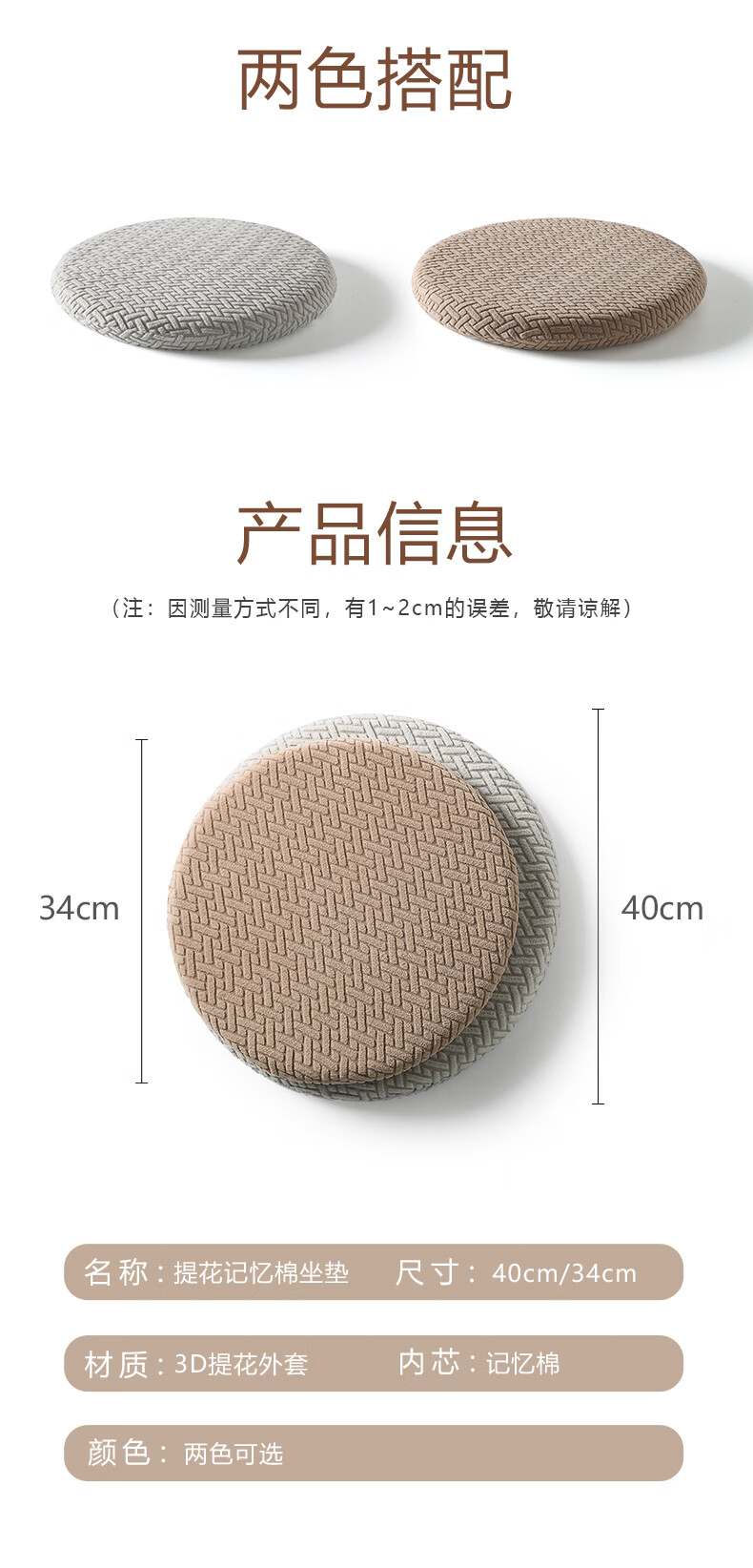 DEATKN德国冬季圆形蒲团记忆棉冰丝坐垫椅子日式屁垫地上圆凳子卡座垫圆 3D提花咖啡(圆形坐垫) 34*34厚4cm(小号)