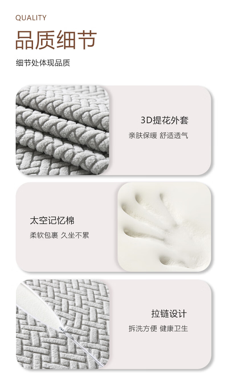 DEATKN德国高端坐垫办公室久坐记忆棉垫子椅子座垫椅垫屁股减压屁垫靠垫 护脊垫-太空灰【单个坐垫】 护脊垫
