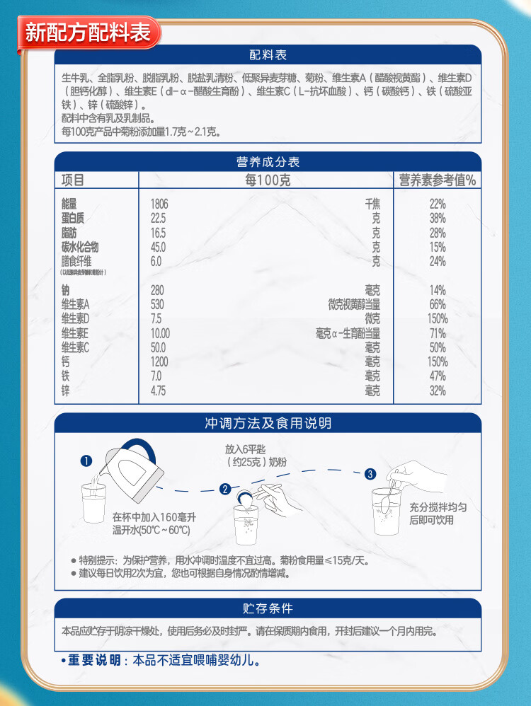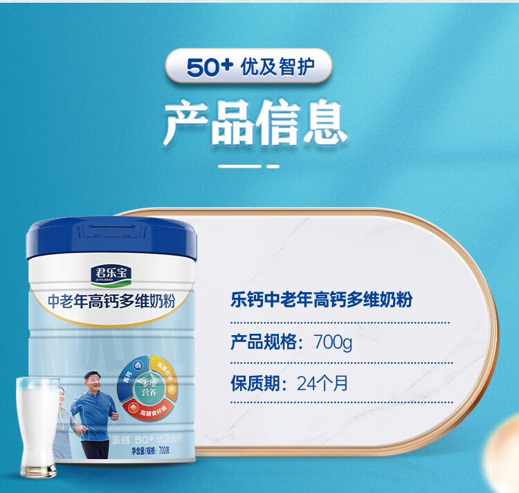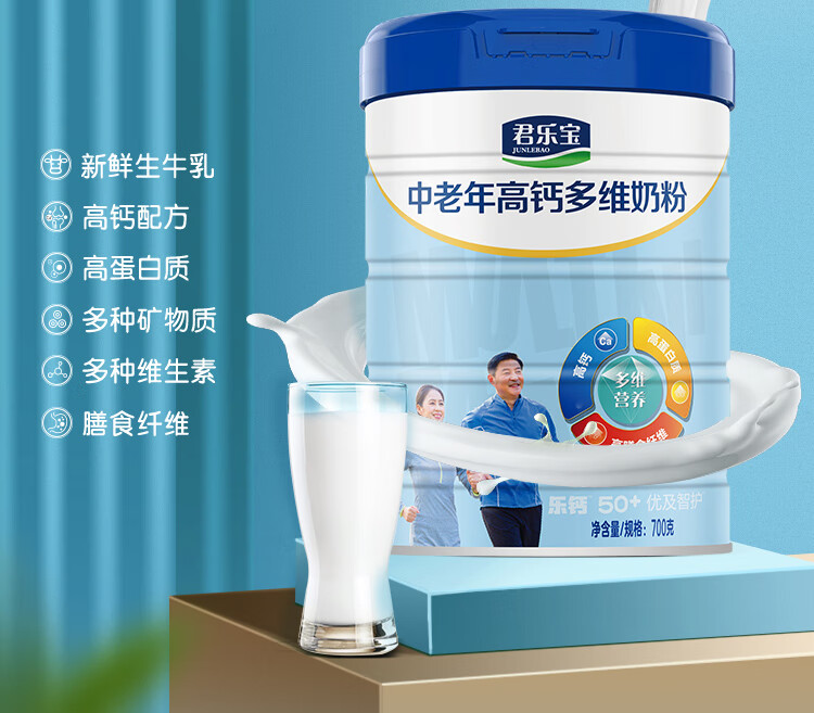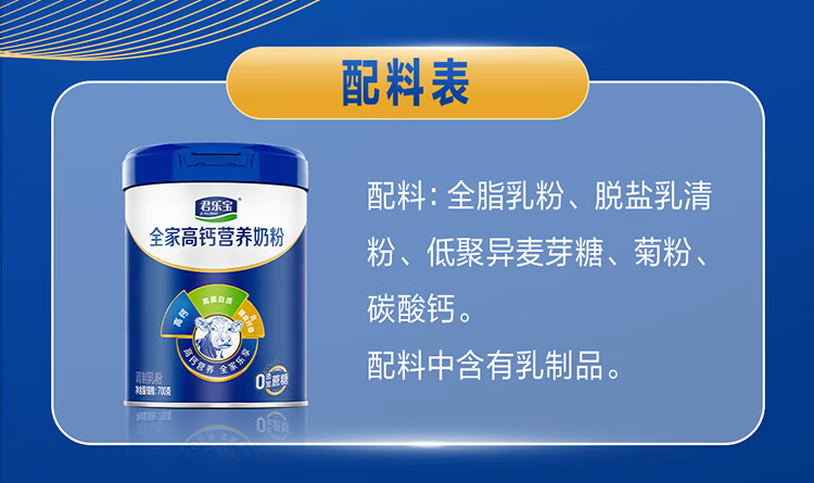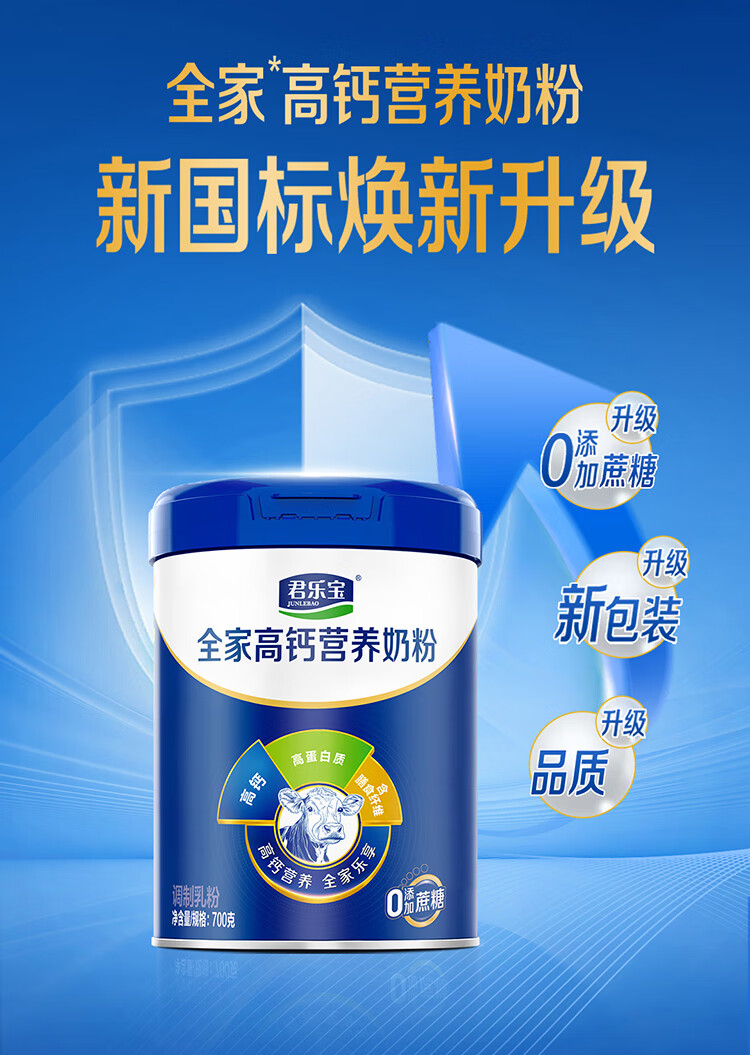 君乐宝成人奶粉高钙高蛋白全家营养中老年中秋送礼礼盒牛奶粉 全家高钙营养700克*2听(赠礼盒)