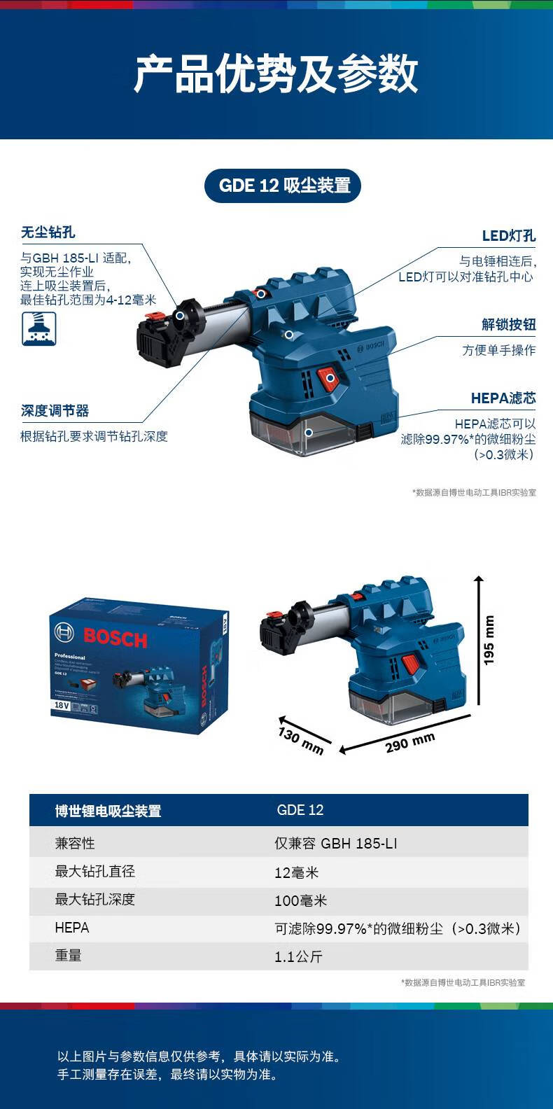 博世(BOSCH)GDE 12 集尘装置 搭配GBH 185无刷吸尘锂电电锤电钻冲击钻使用
