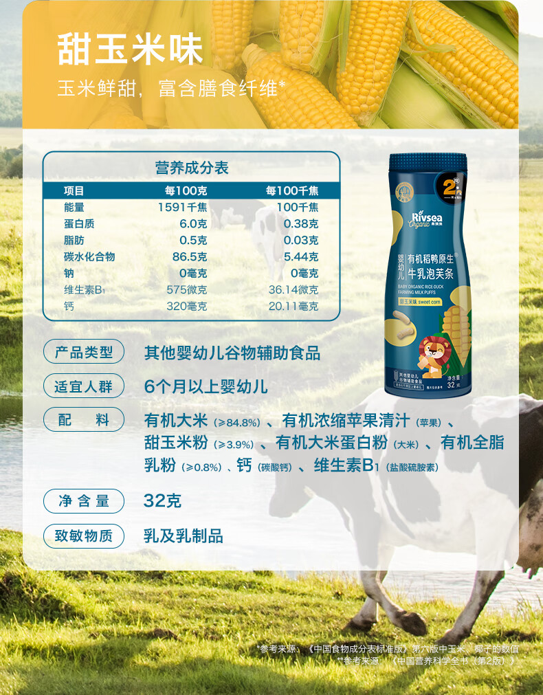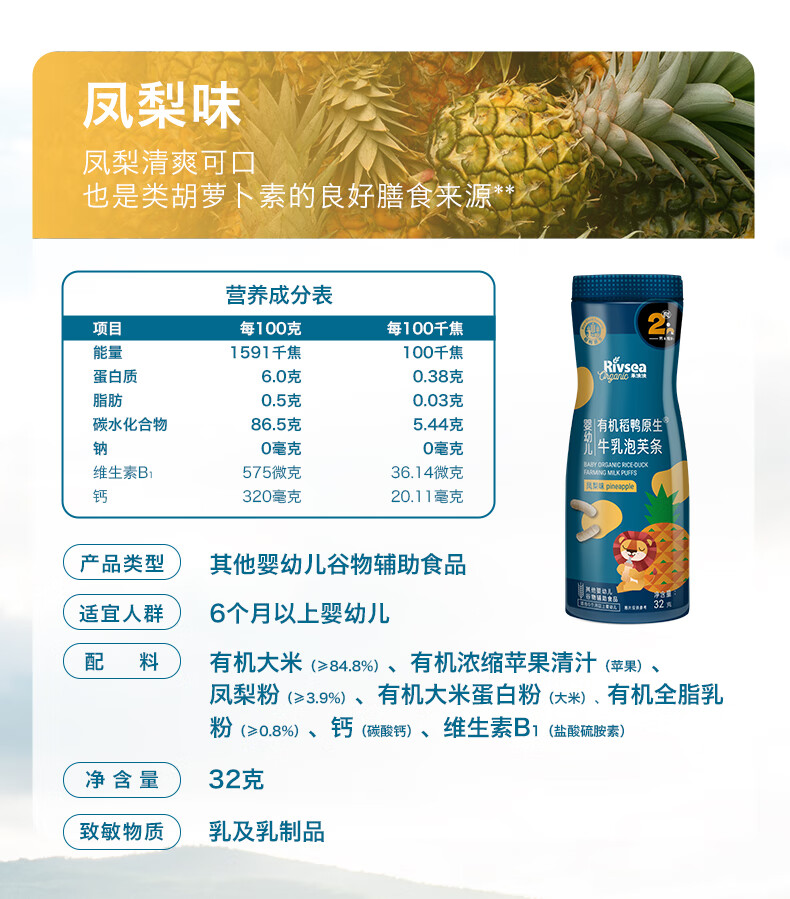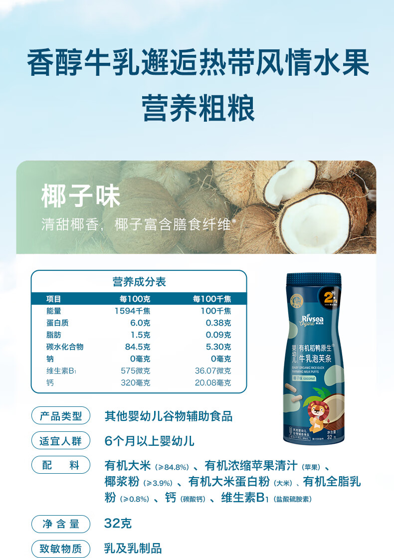 禾泱泱有机婴幼儿牛乳泡芙条椰子味32g 稻鸭原生宝宝零食6月+