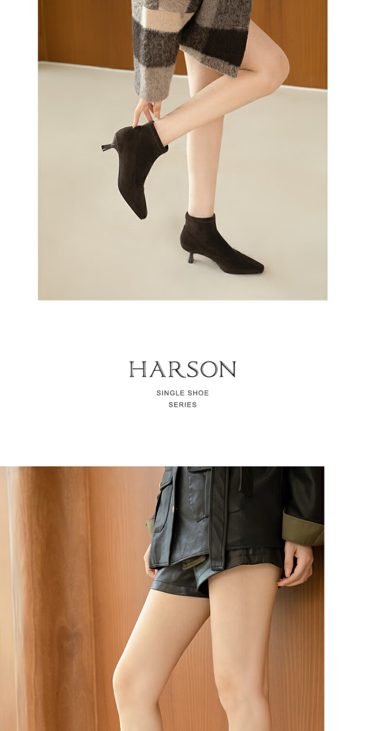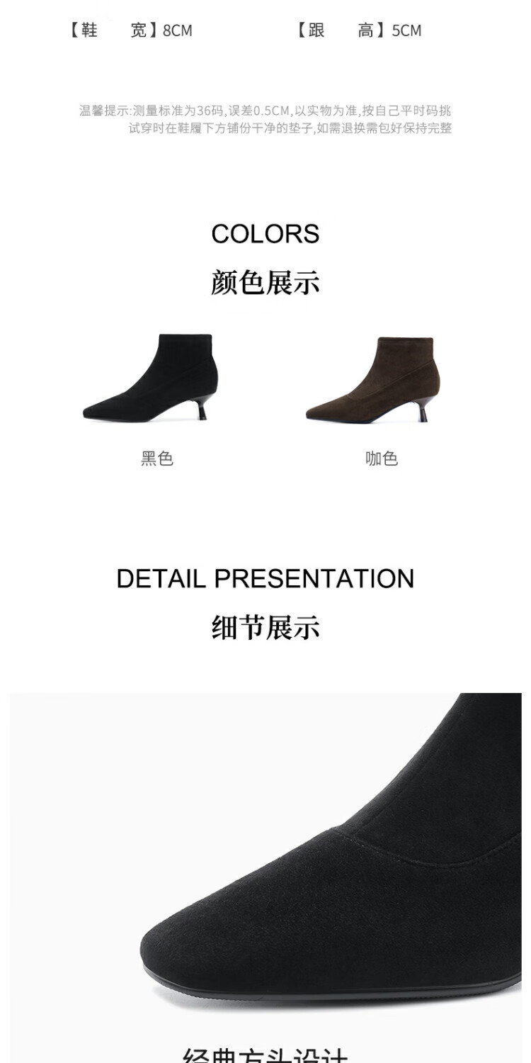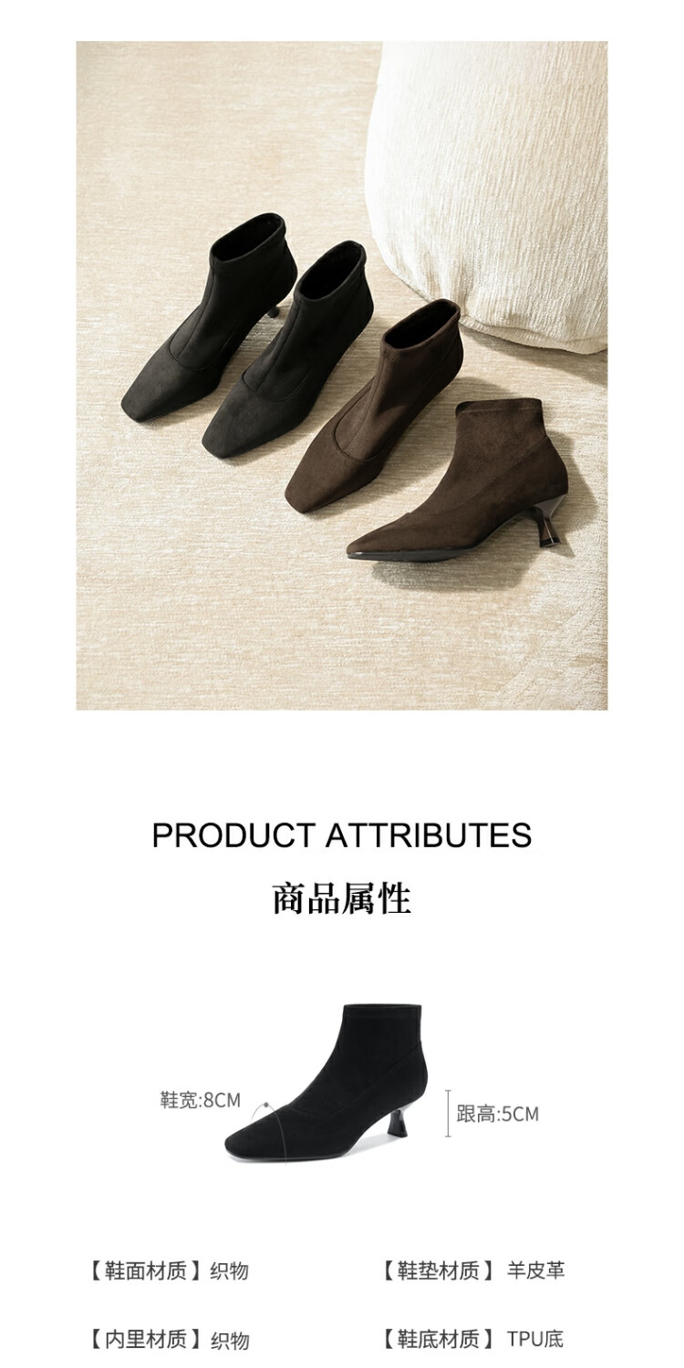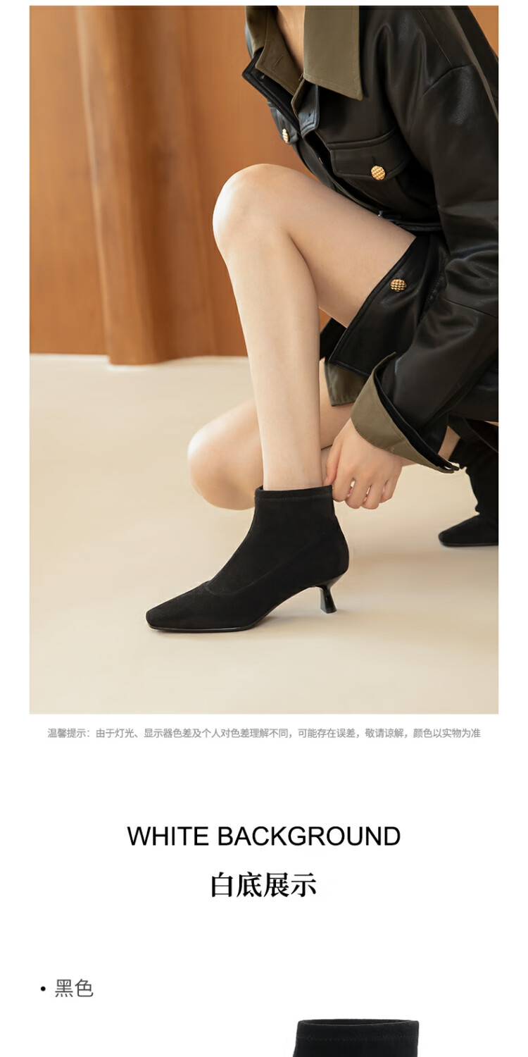 哈森时尚瘦瘦靴女2025冬季新款复古百搭细高跟方头短靴HWA250101 黑色 织物 34