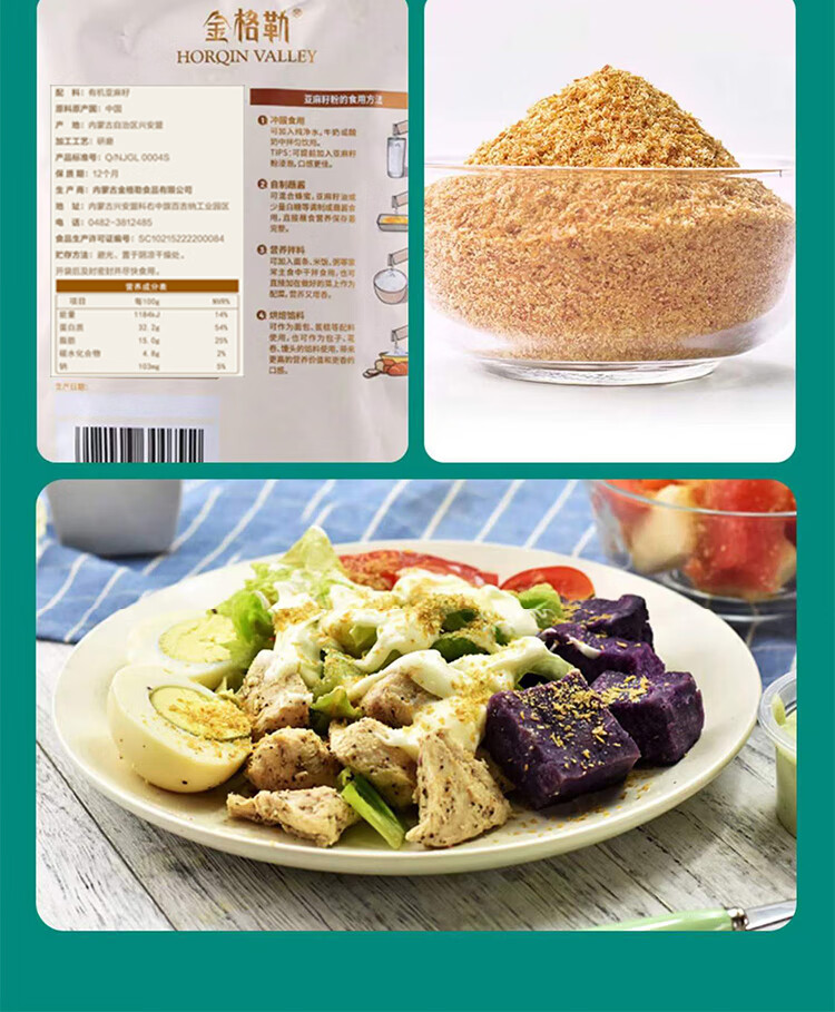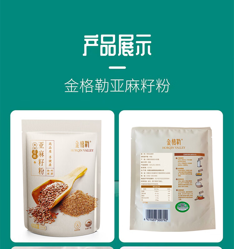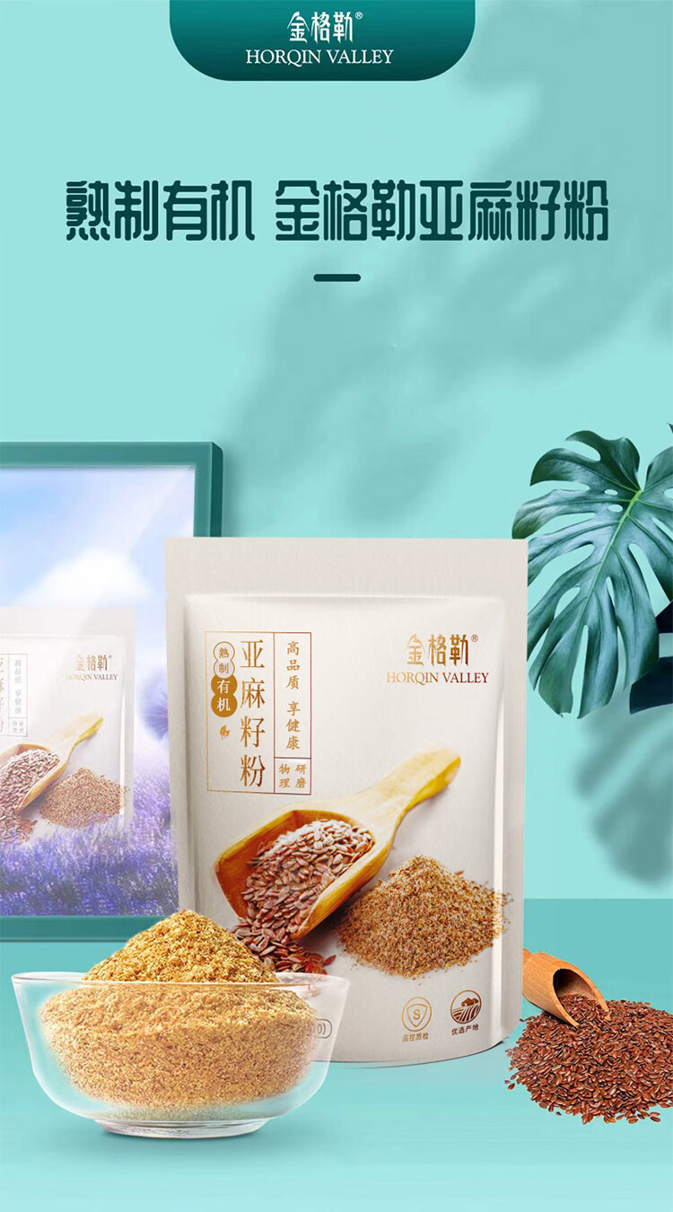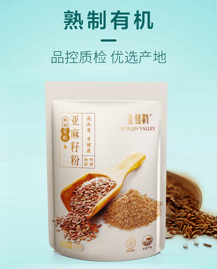 金格勒 有机亚麻籽粉熟粉 即食五谷杂粮胡麻籽粉 代餐冲饮 熟亚麻籽粉250g*5袋